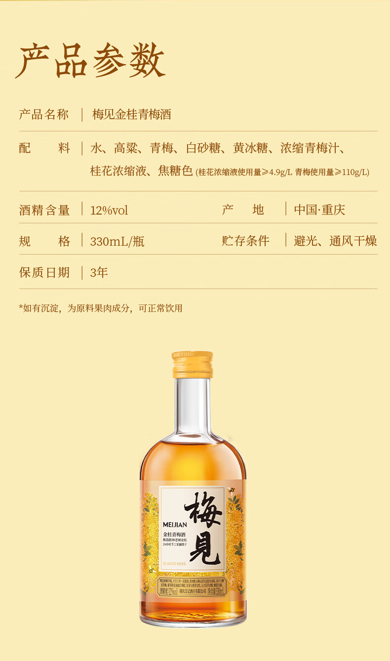 梅见金桂梅见 桂花风味青梅酒 330ml 单瓶装 12度微醺果酒 聚会自饮
