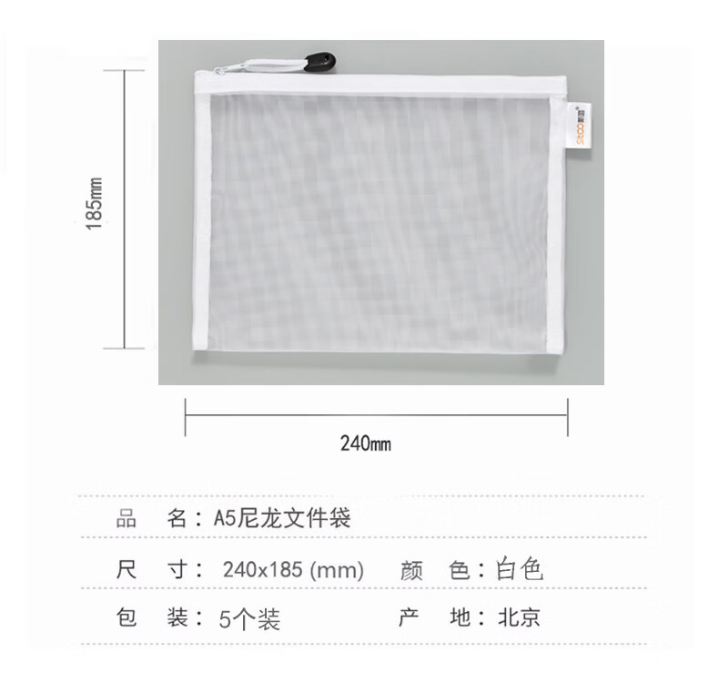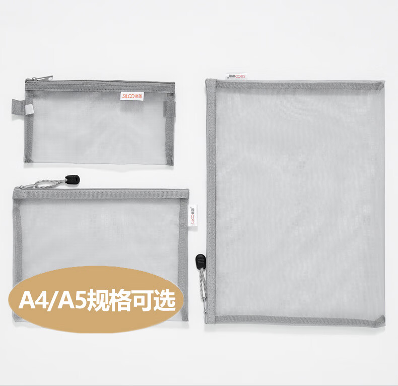 斯图(sitoo)中高考专用a5文件袋透明网格考试袋收纳文具拉链袋学生笔袋科目袋学习用品 A5白色5个装