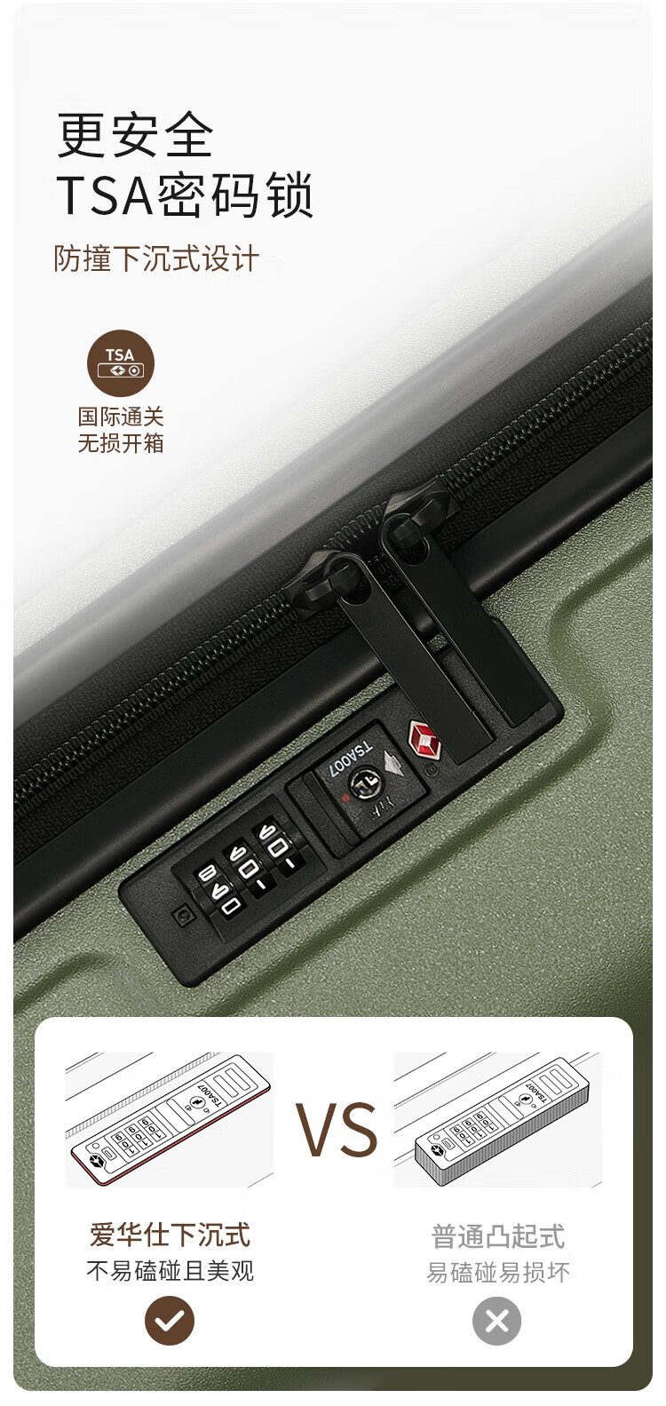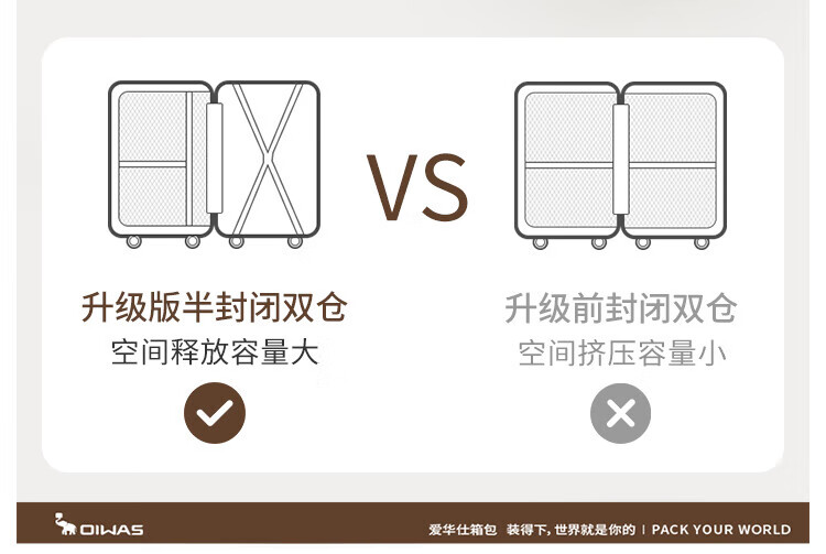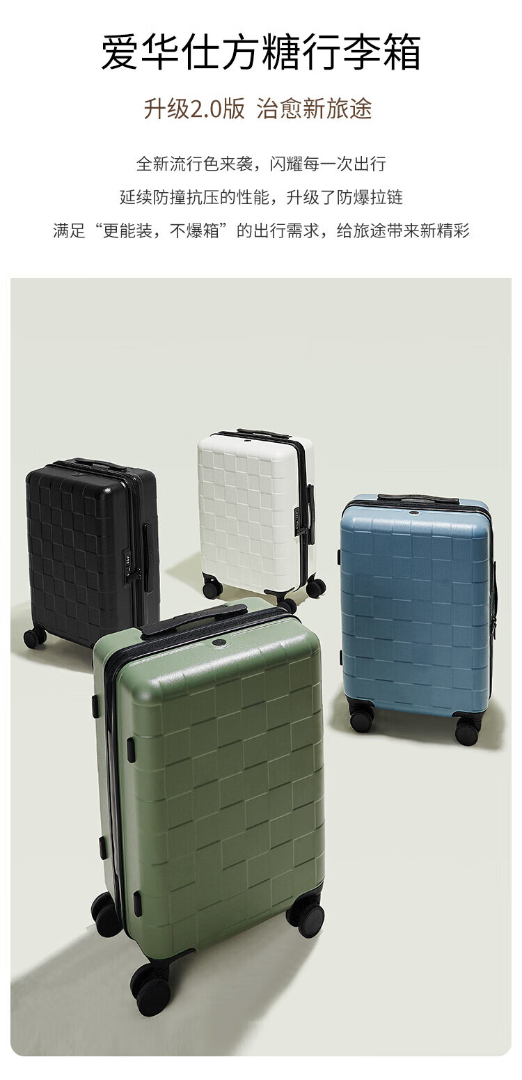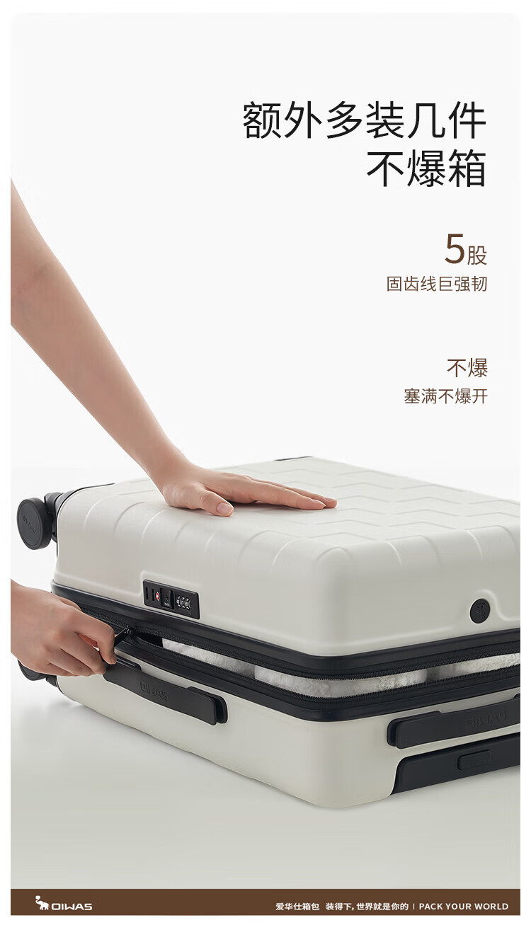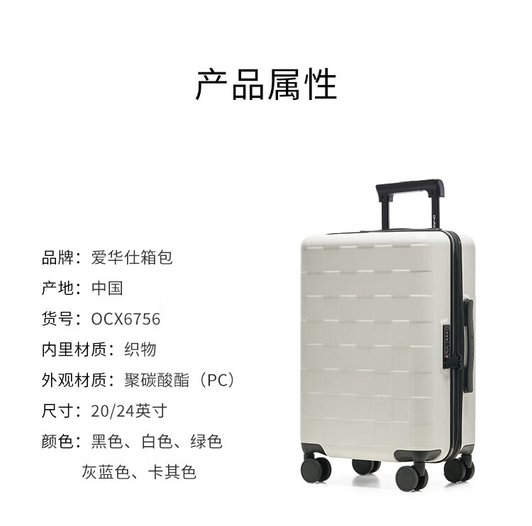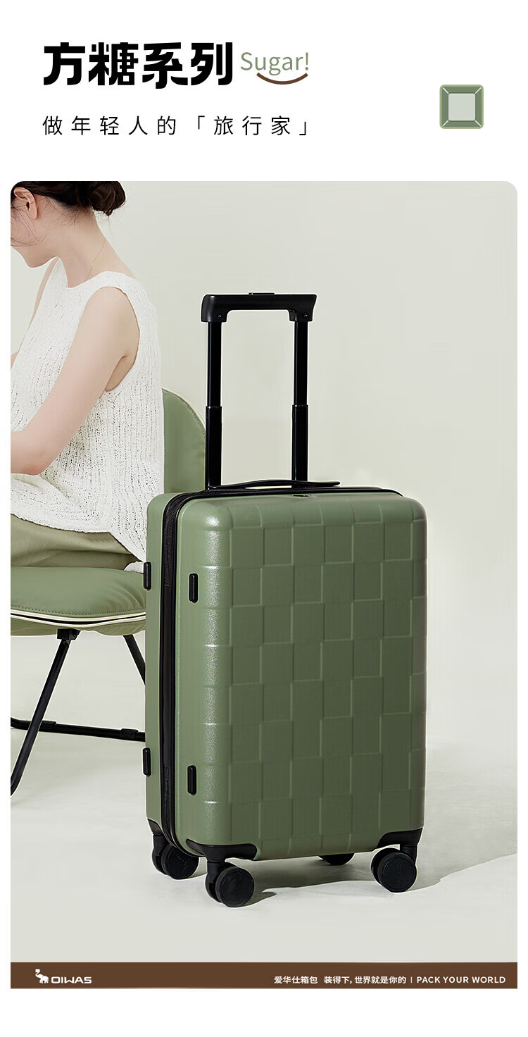 爱华仕(OIWAS)方糖箱大容量轻便拉杆箱密码登机行李箱旅行高颜值皮箱 黑色 【加厚PC】 【耐磨抗摔】 24英寸 【3-5天中途行】