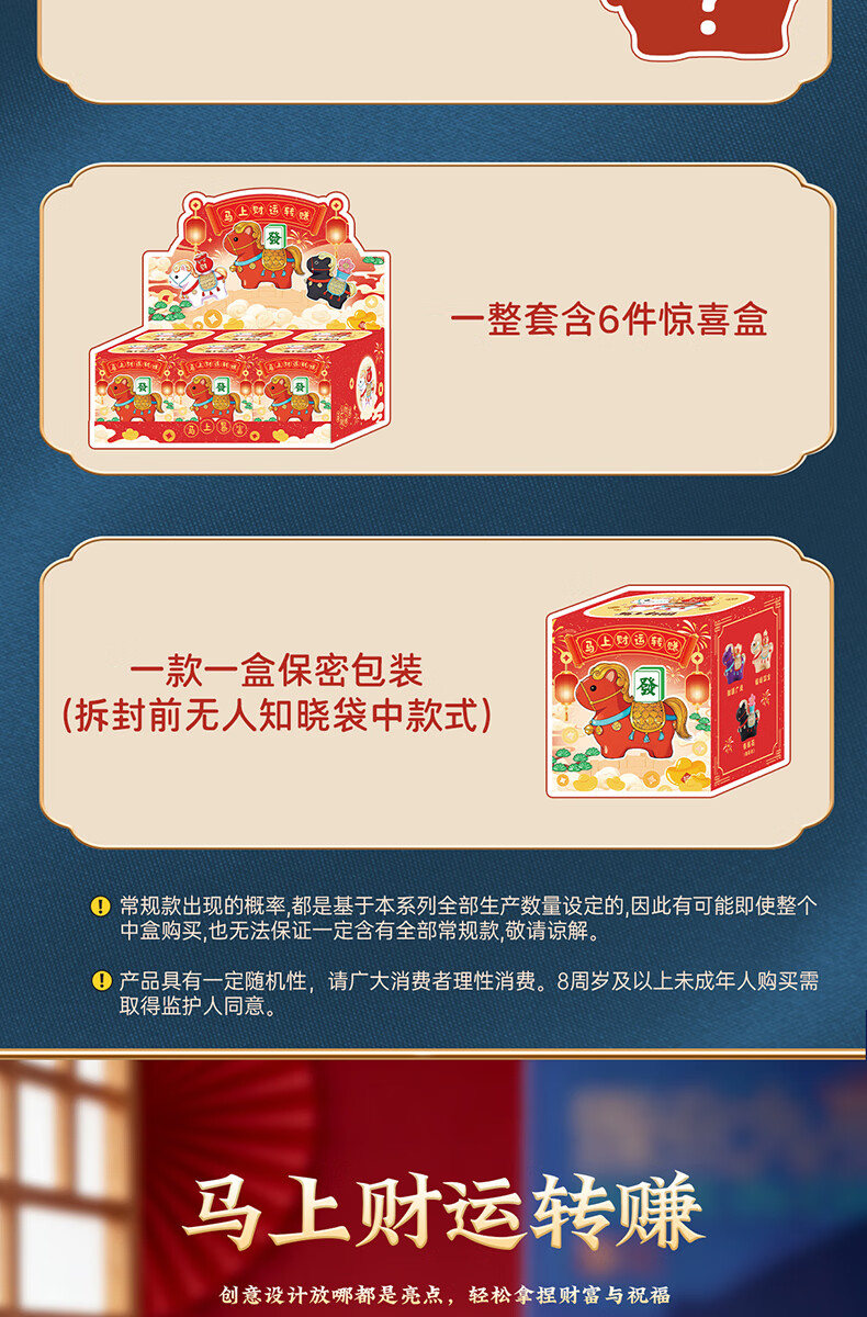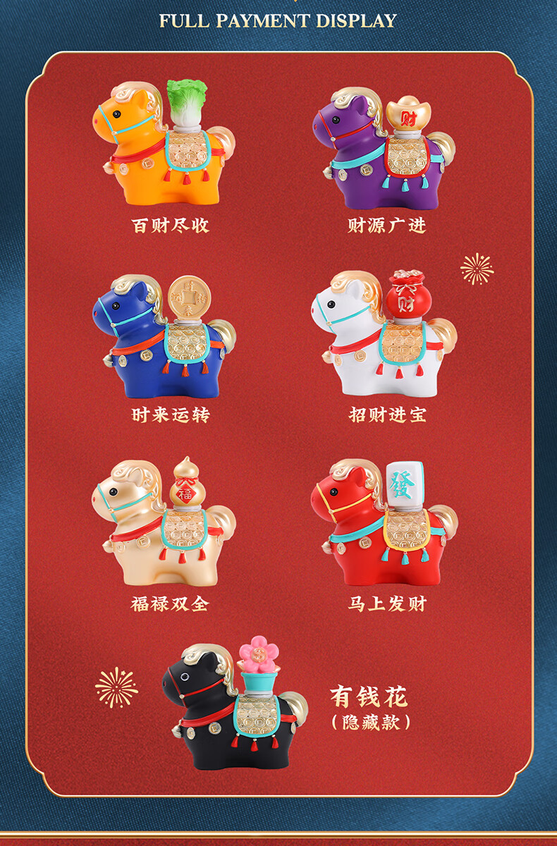 兰比嘟2026马年吉祥物盲盒摆件赐福小马公仔喜庆新年礼物桌面装饰伴手礼 马上财运转赚盲盒【随机1个】