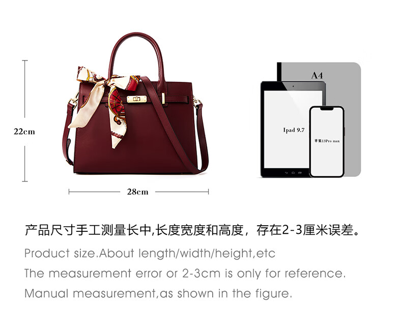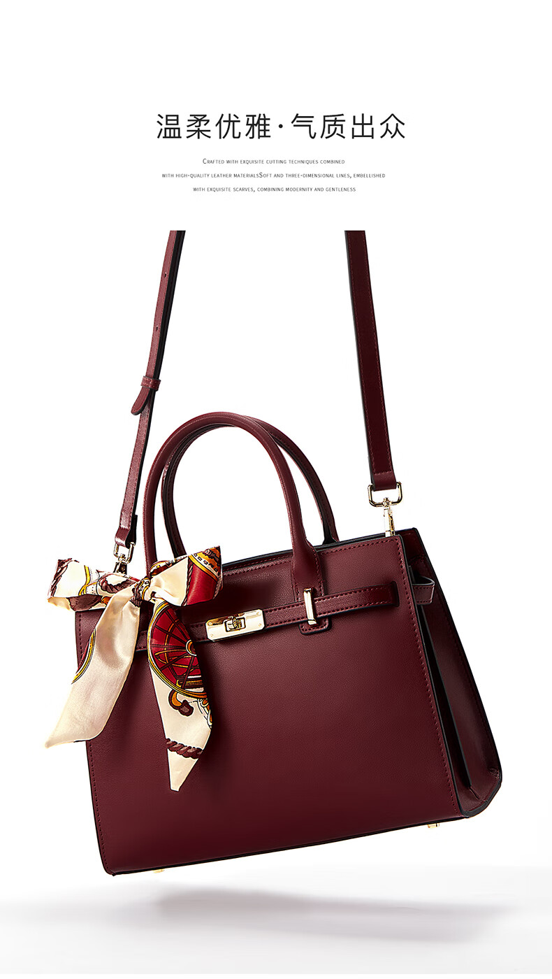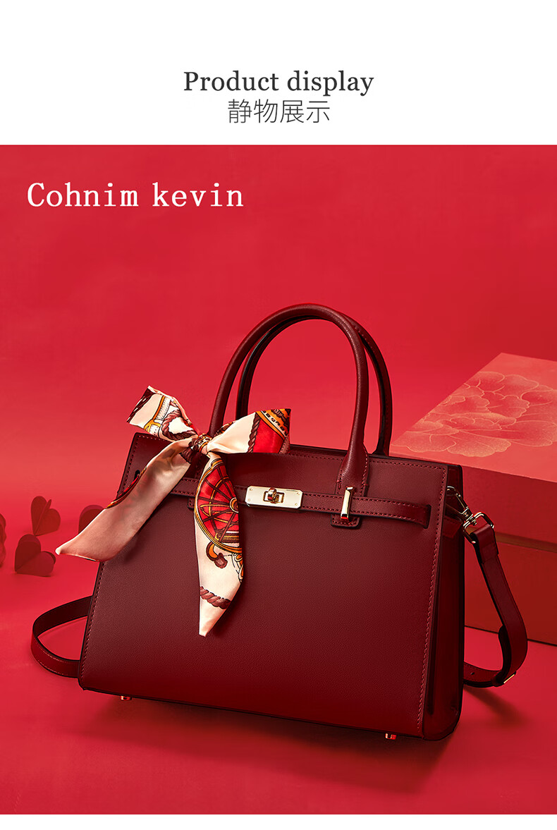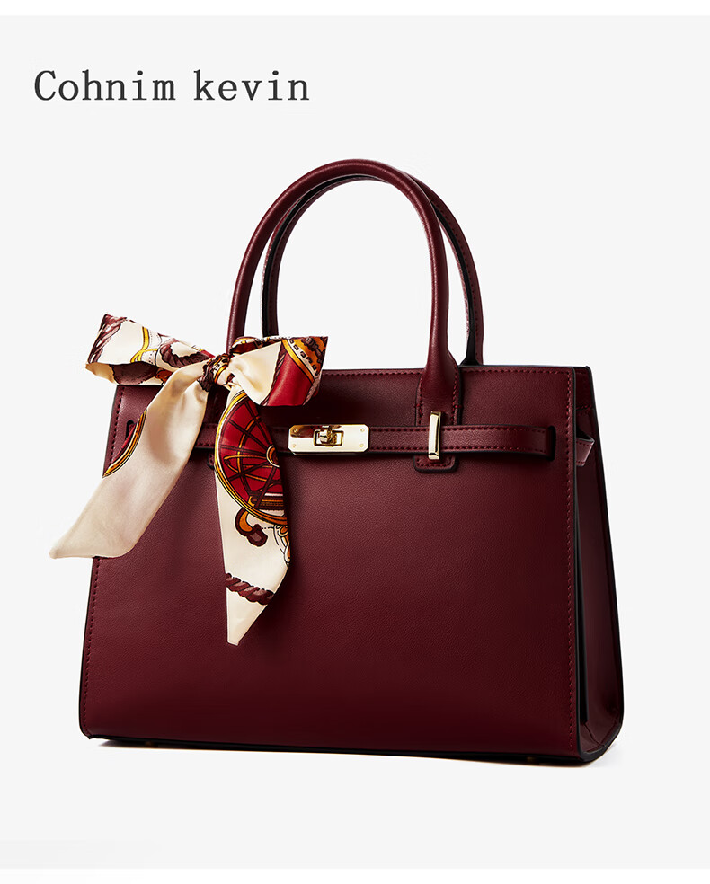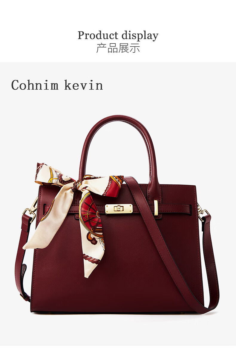 Cohnim kevin轻奢时尚高档牛皮大容量手提包2079 酒红