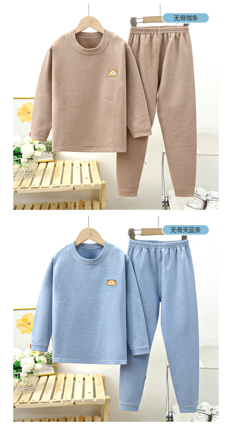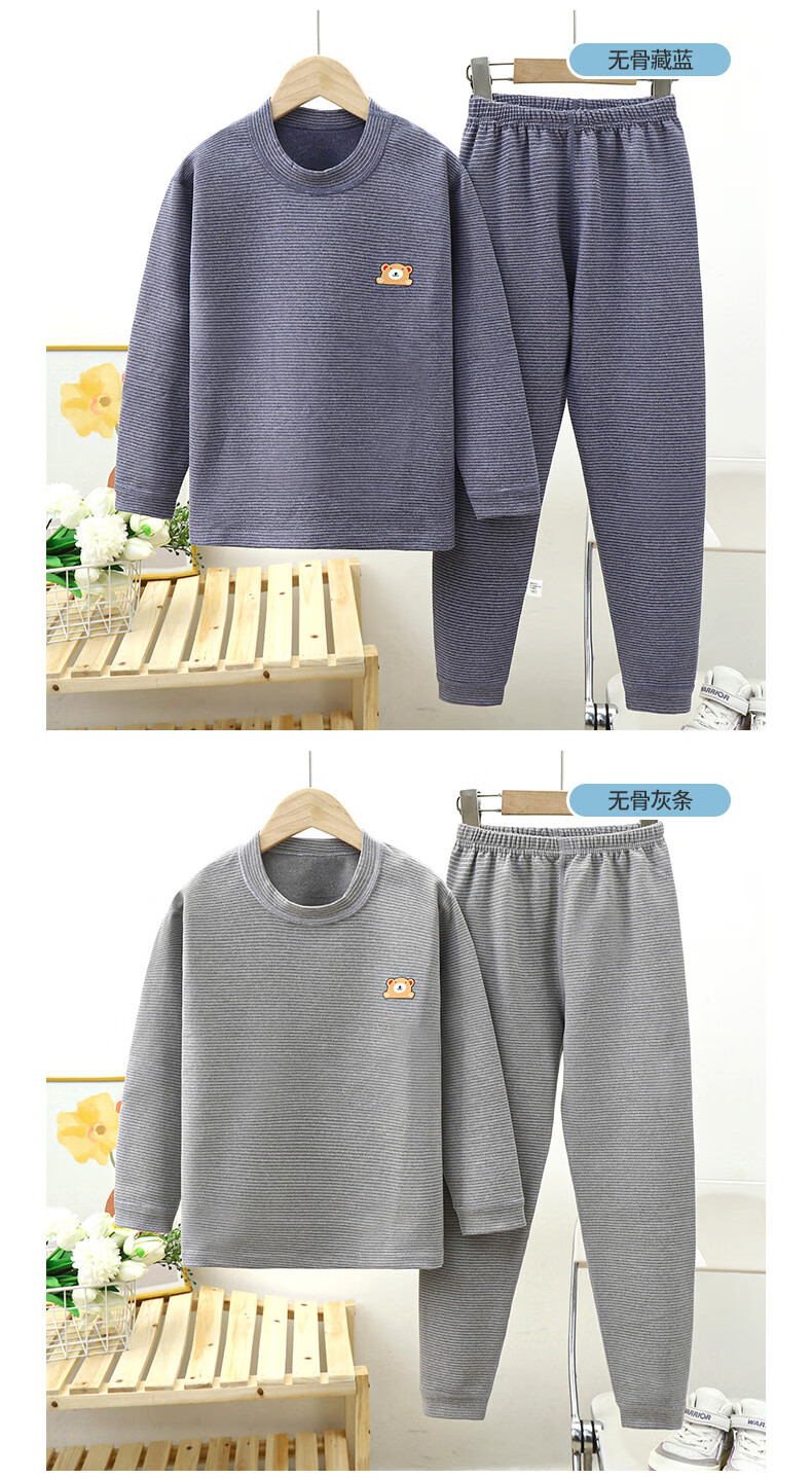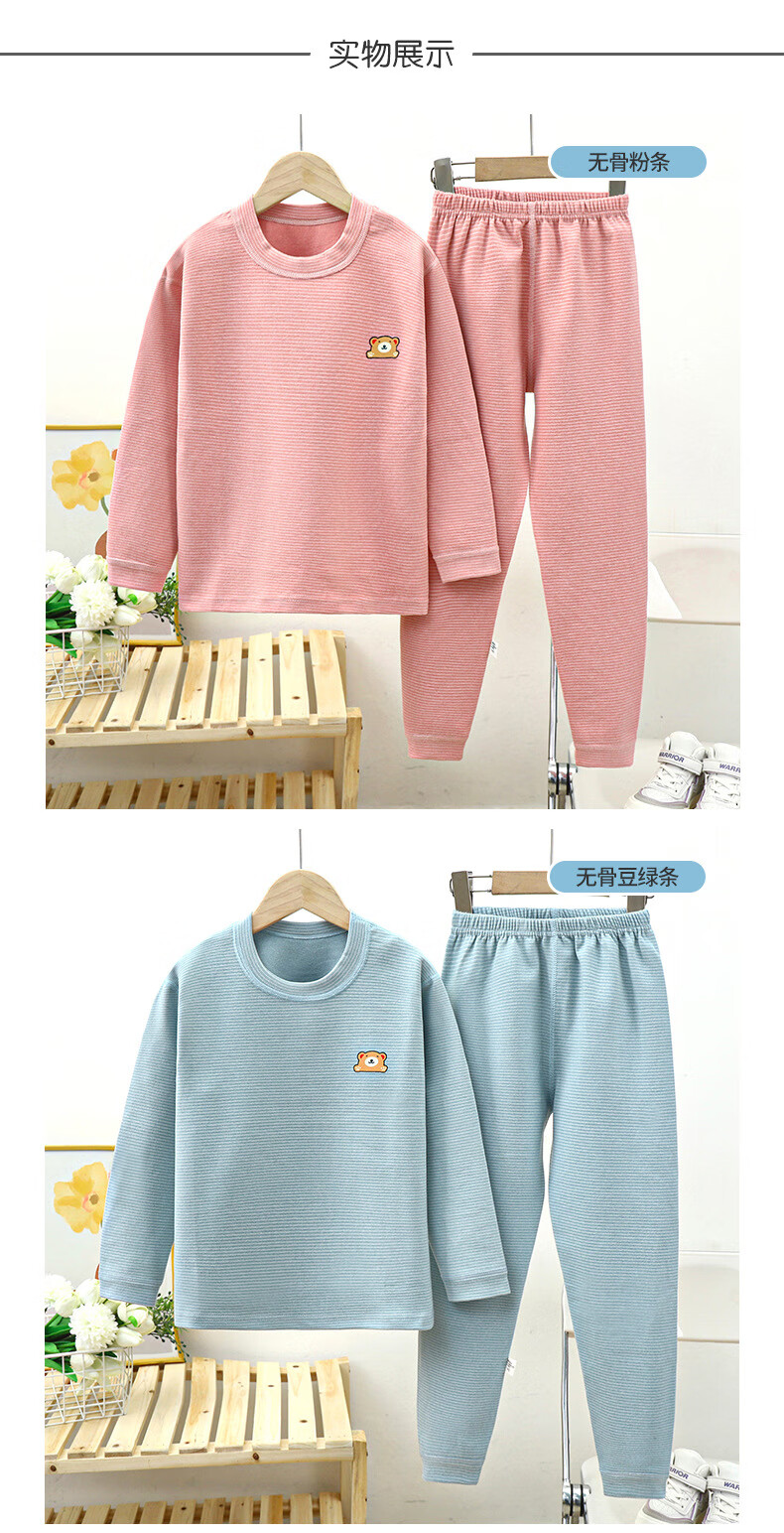 思织沁男女童德绒保暖内衣套装纯色条纹小熊儿童秋衣秋裤套装秋冬两件套 B09 100 cm