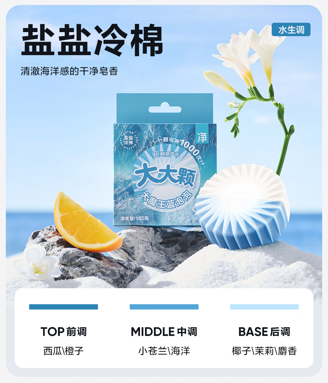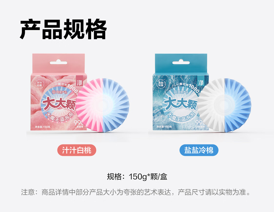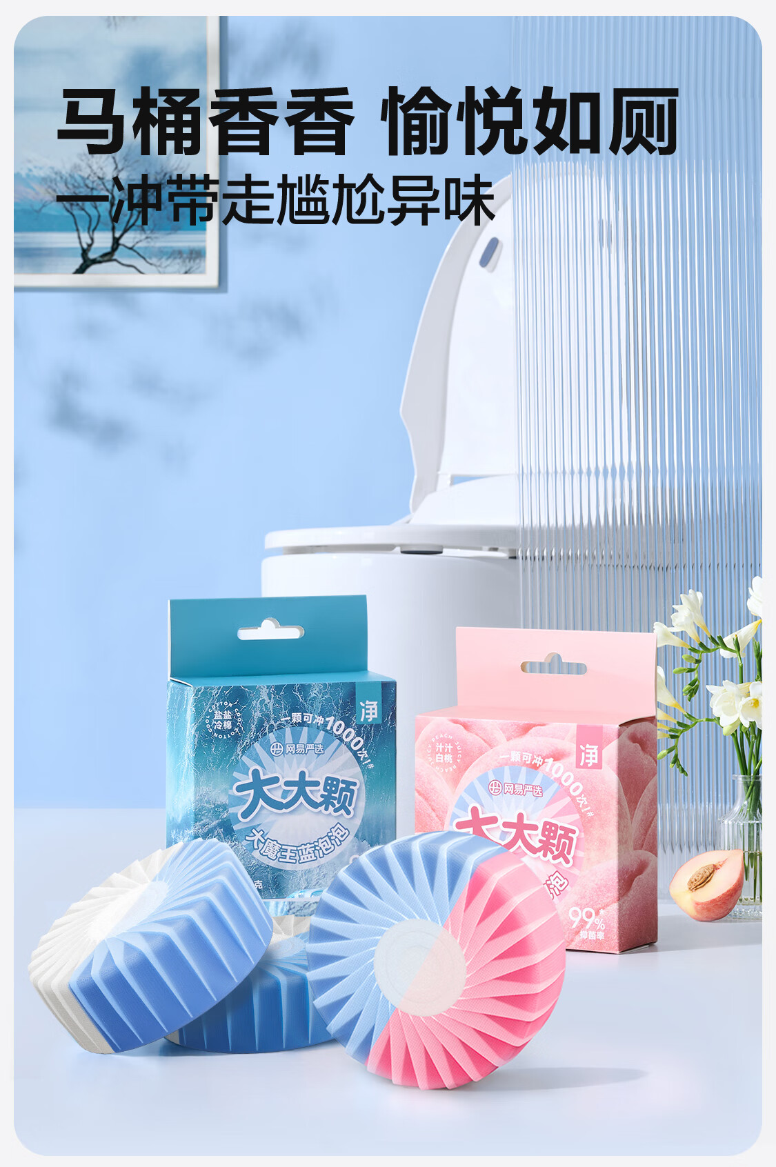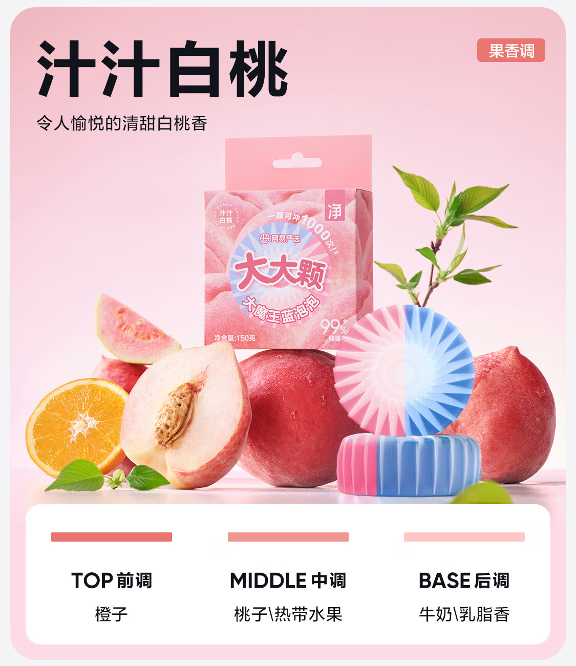 网易严选大大颗蓝泡泡洁厕剂洁厕灵洁厕球马桶水箱自动清洁剂 除臭神器 【可冲1000次】汁汁白桃 150g 1盒