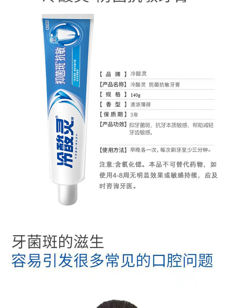 冷酸灵防菌抗敏牙膏减菌配方清新口气洁白牙齿海洋薄荷减轻牙龈出血 【双重抗敏】泵式3支 美白亮齿