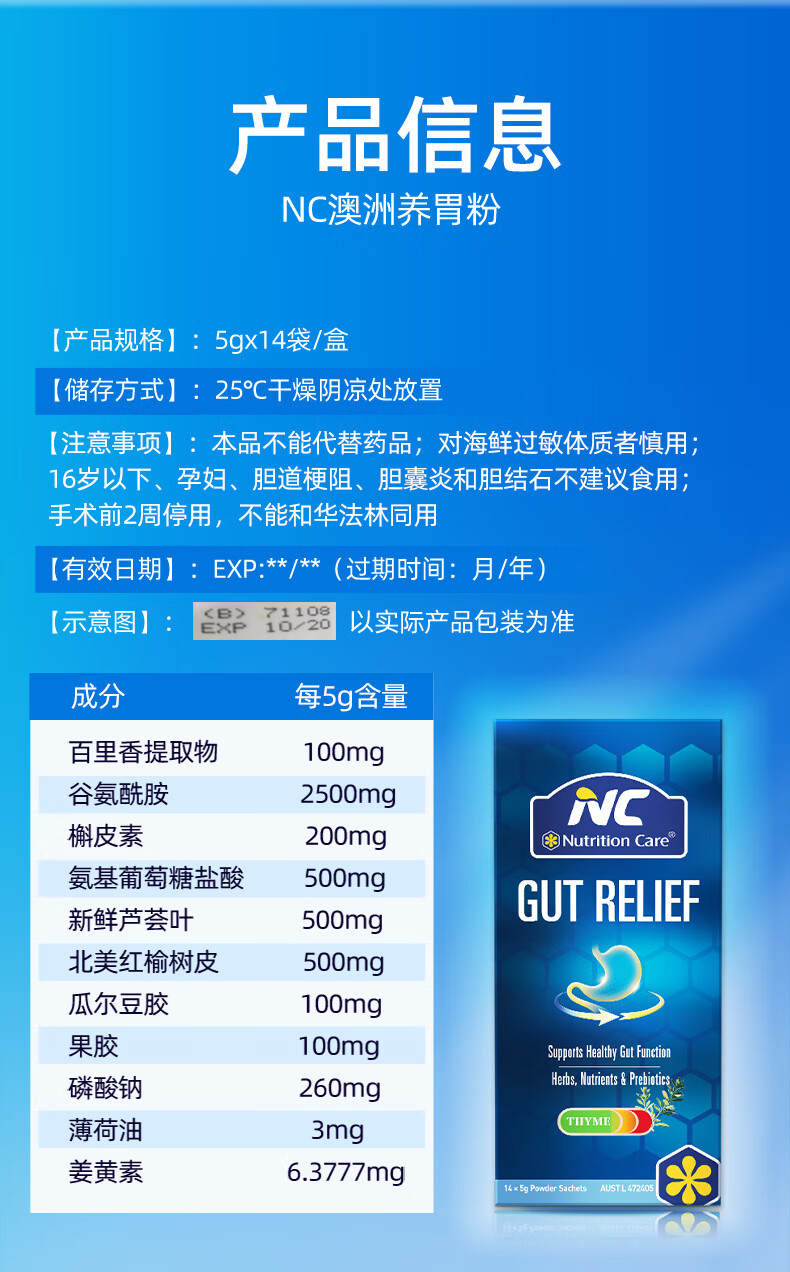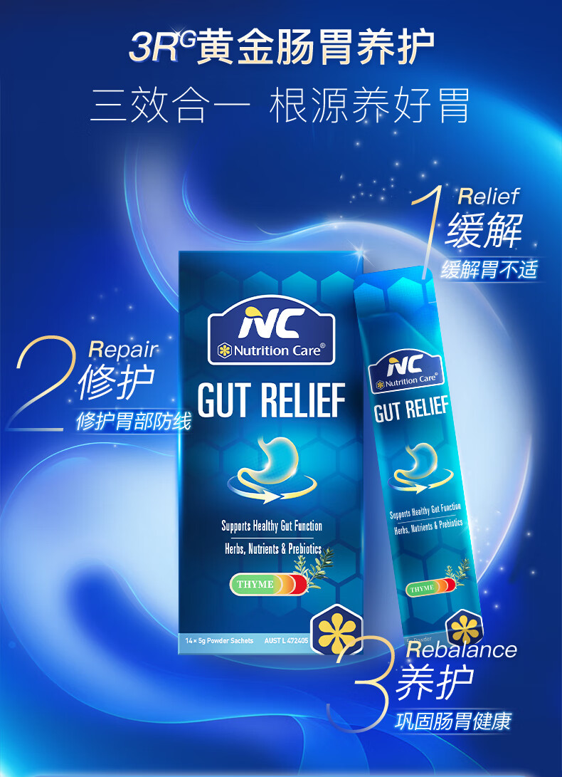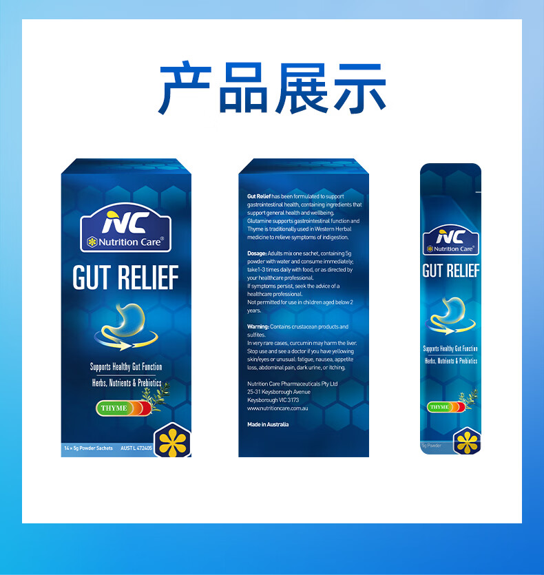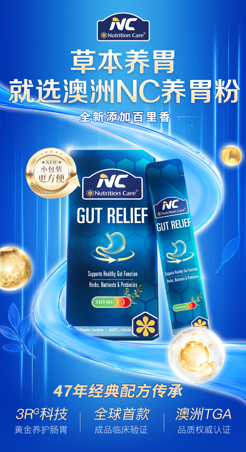 Nutrition Care澳洲NC胃粉便携装 NC舒胃粉 调养肠胃食品 胃散益生菌伴侣 14袋*5克/盒