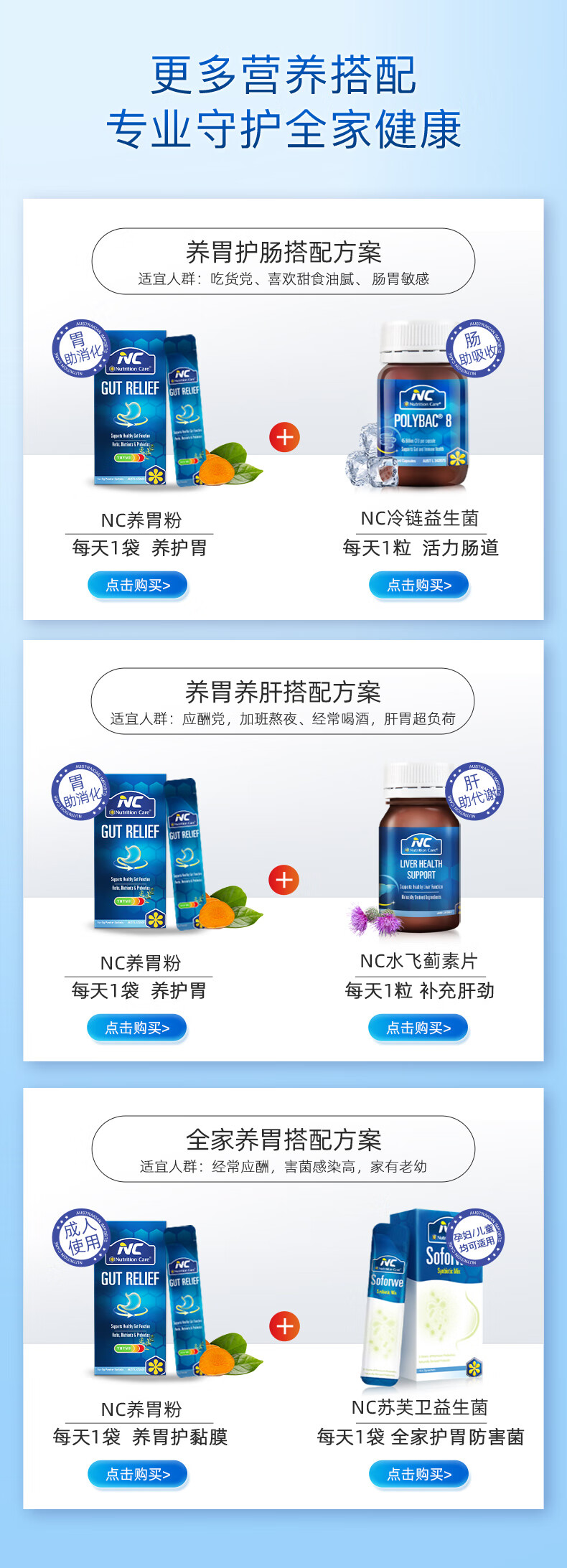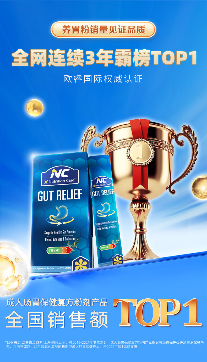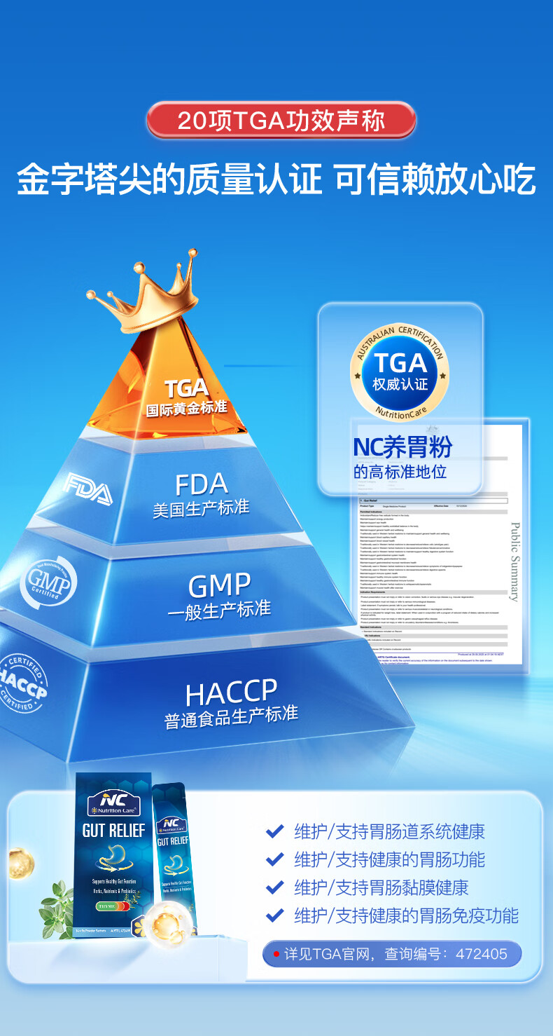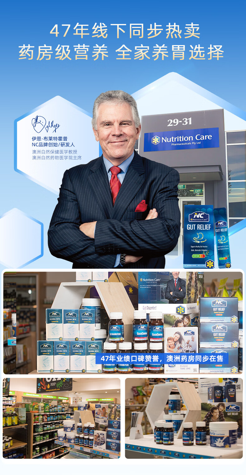 Nutrition Care澳洲NC胃粉便携装 NC舒胃粉 调养肠胃食品 胃散益生菌伴侣 14袋*5克/盒