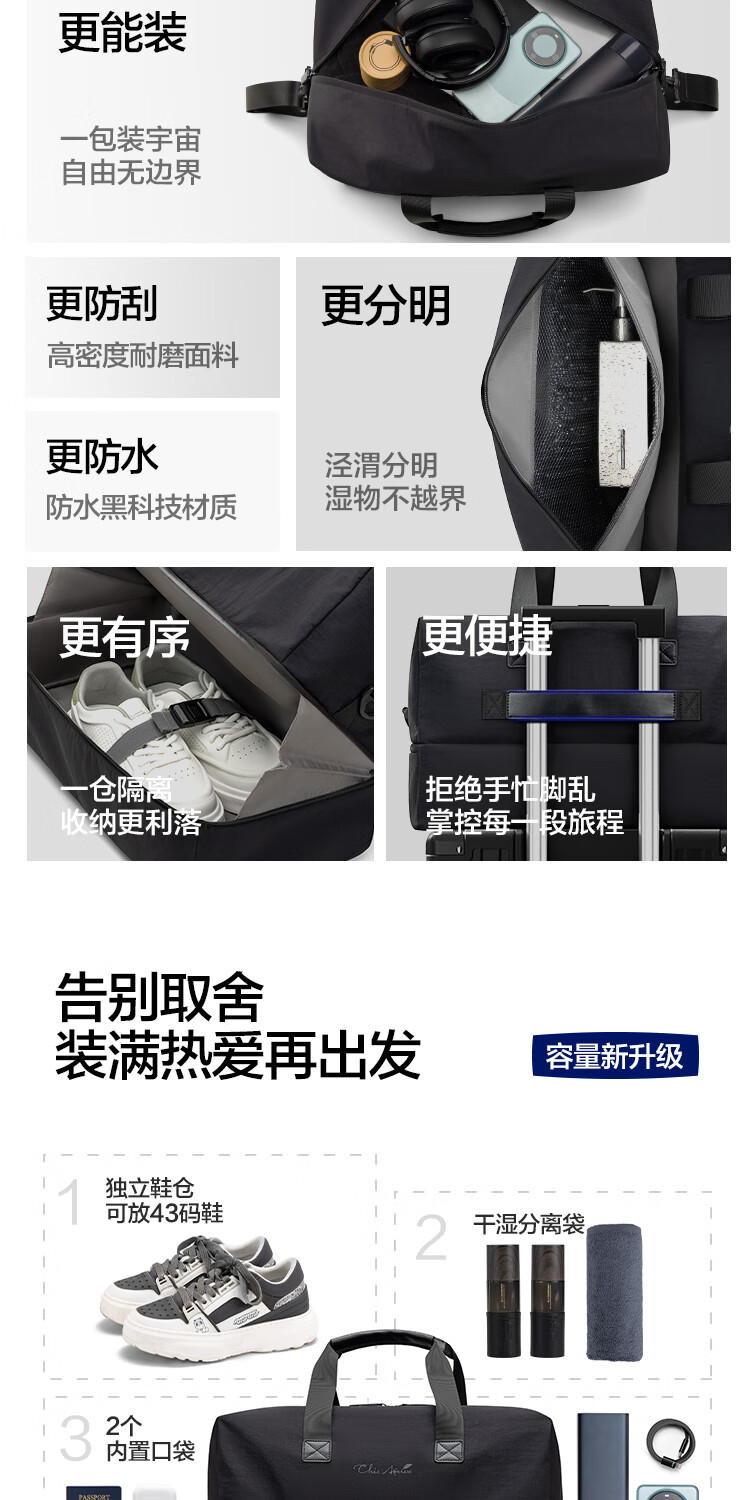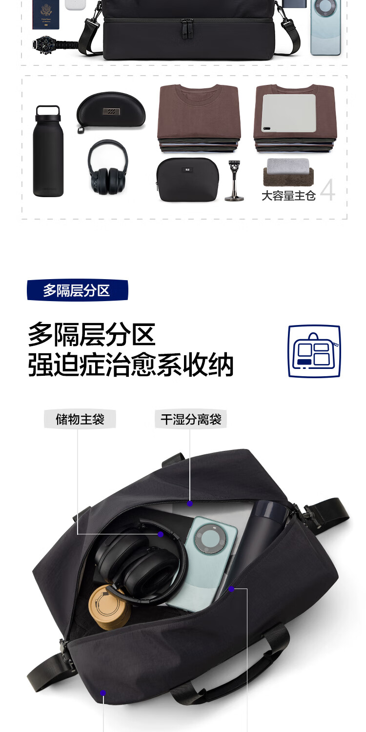 海澜之家运动健身包女短途手提旅行旅游包干湿分离轻便大容量行李袋挎包男 24L运动健身包干湿分离