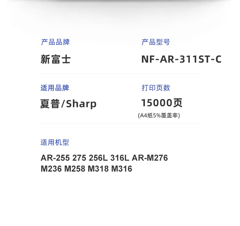 新富士墨粉盒AR311ST-C黑色适用夏普 AR-255 275 256L 316L AR-M276 黑色