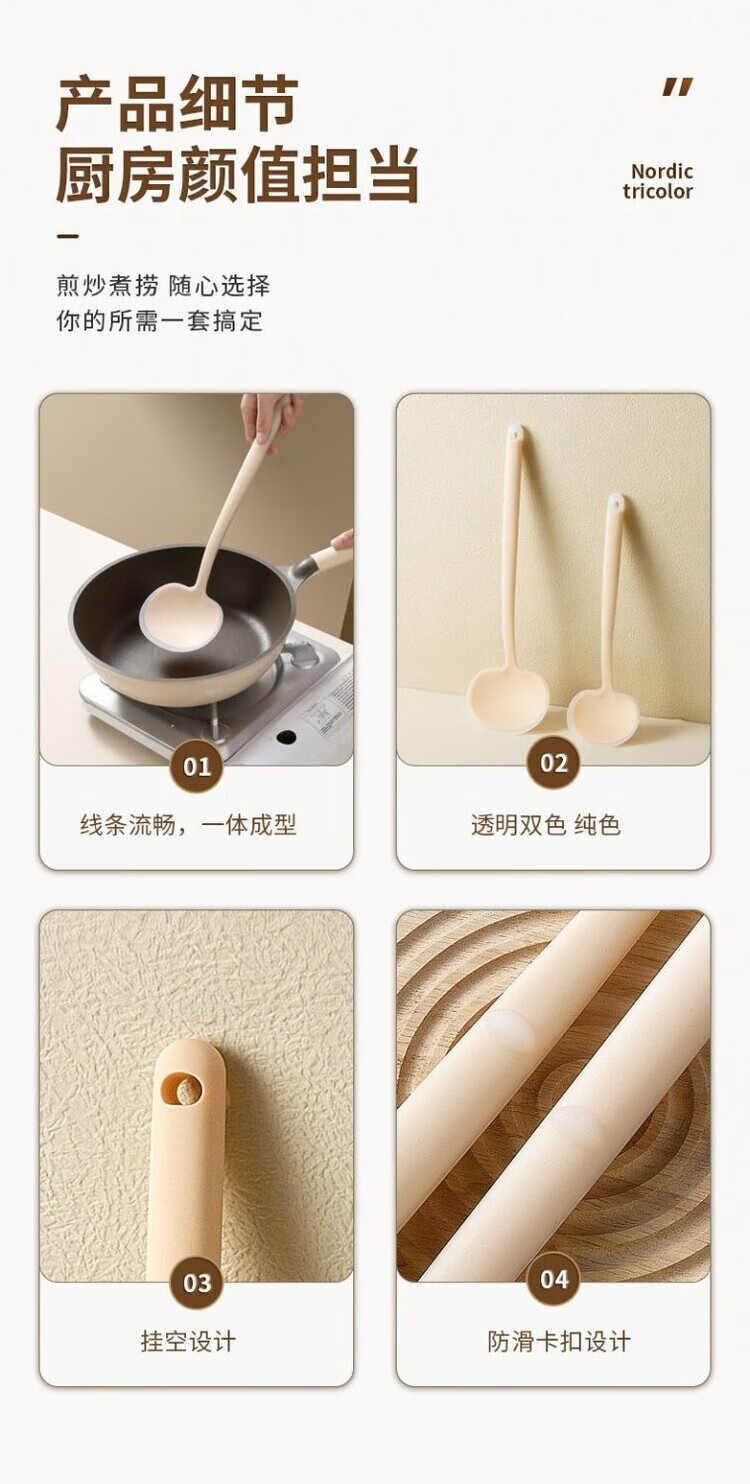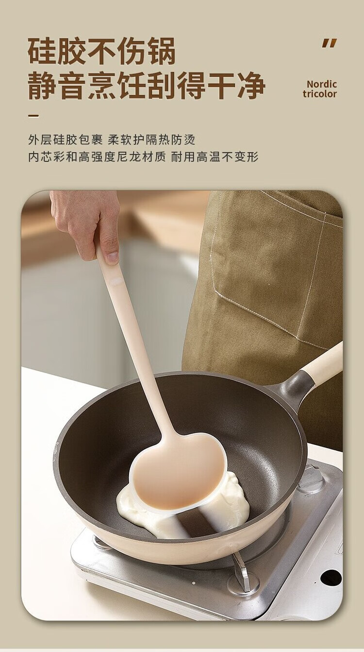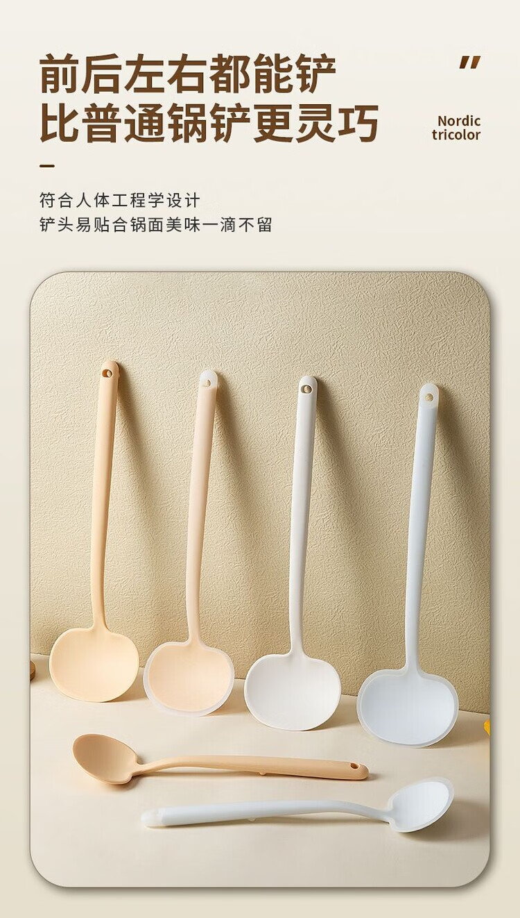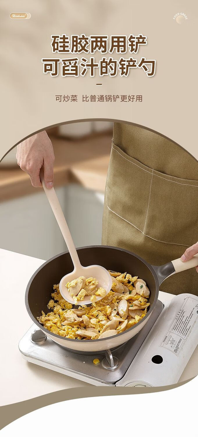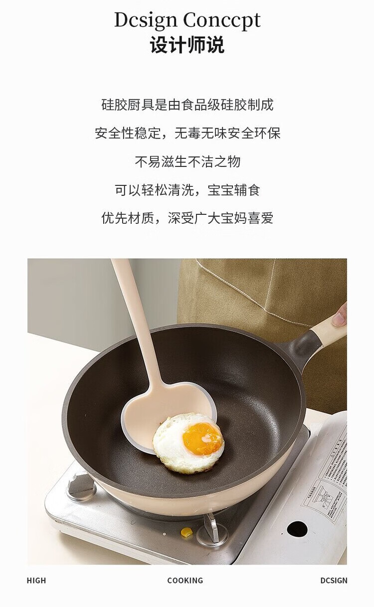 LZJV新款时尚锅铲炒菜铲子蘑菇铲硅胶家用锅铲不粘锅专用厨具套装超厚 实色黄小
