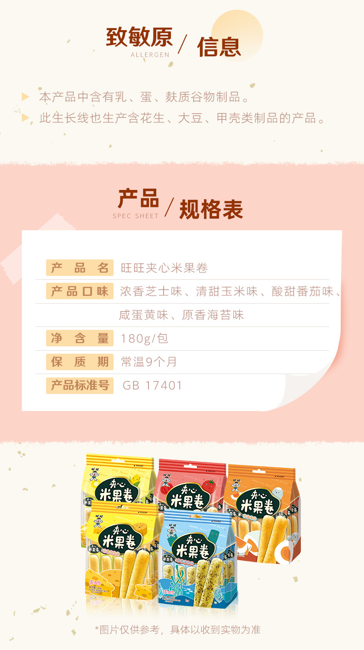 旺旺 夹心米果卷 海苔味 180g 零食 膨化食品 饼干糕点
