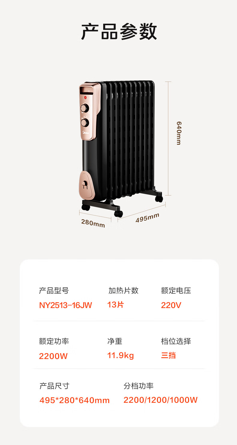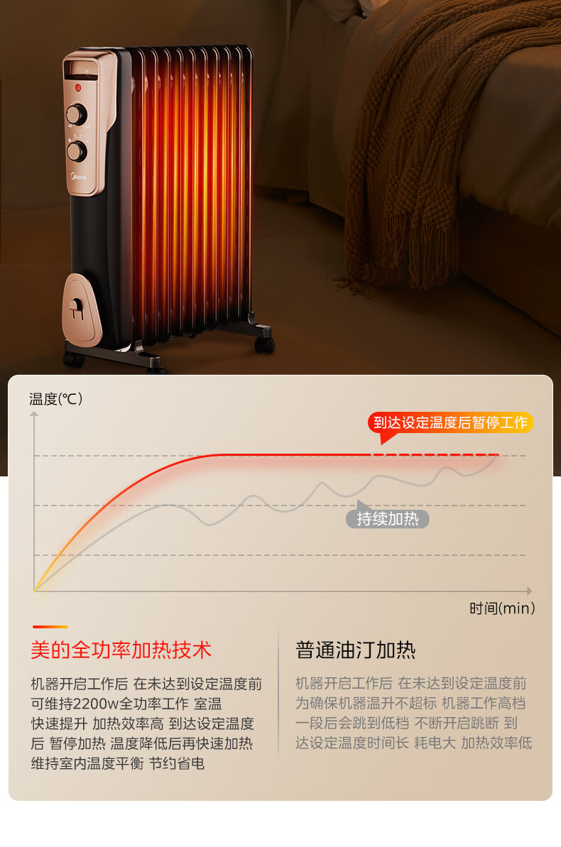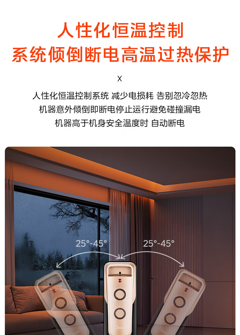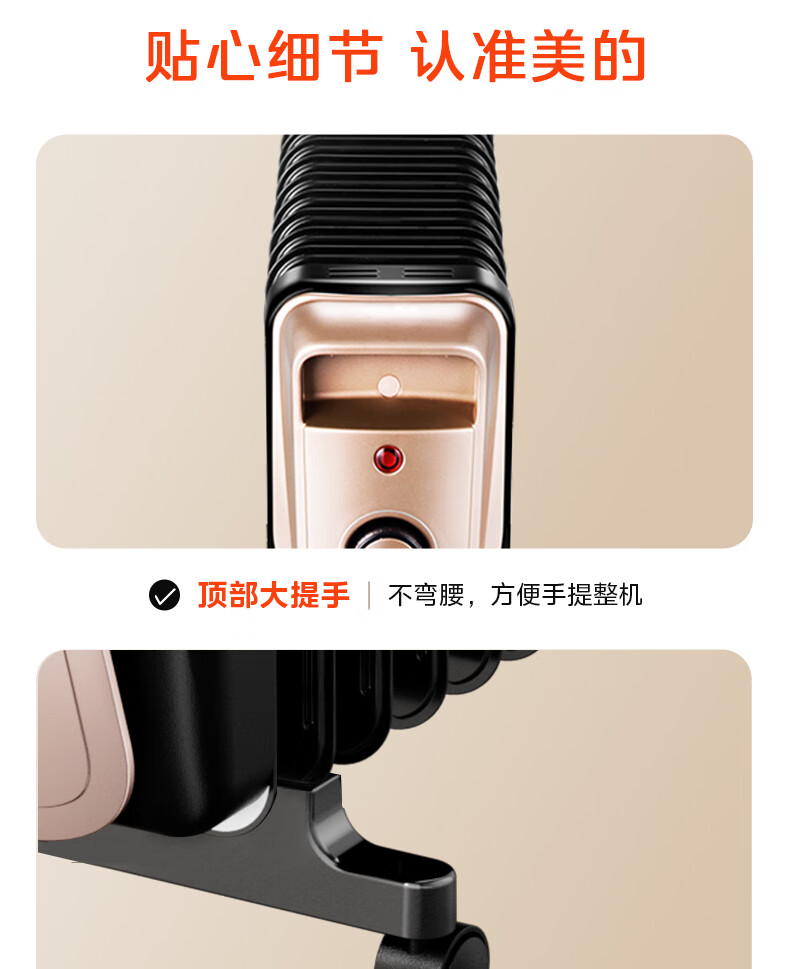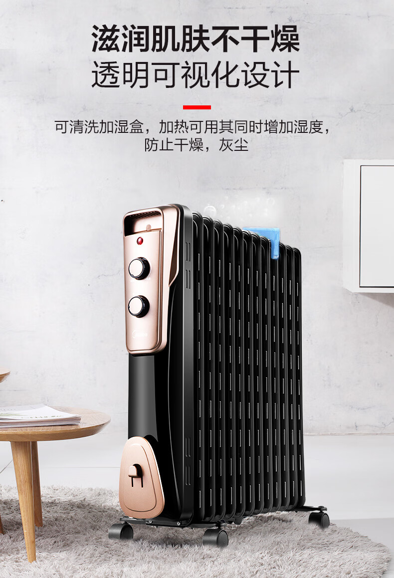 美的(Midea)【超级单品】电热油汀取暖器 家用电暖器 加湿暖气片加热器 全屋大面积升温速热烤火炉NY2513-16JW