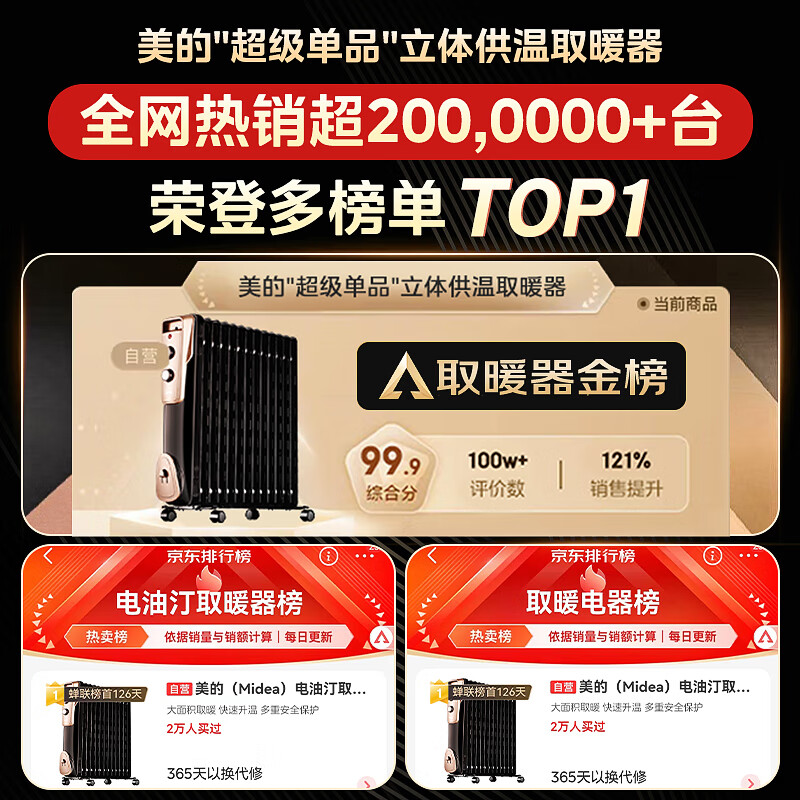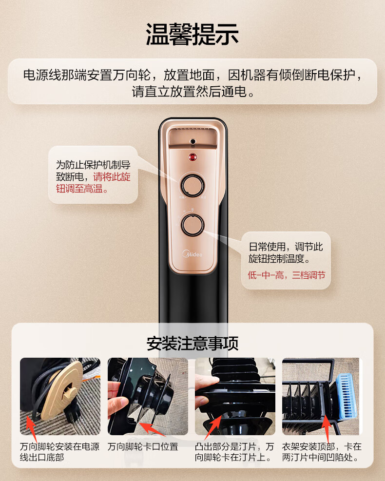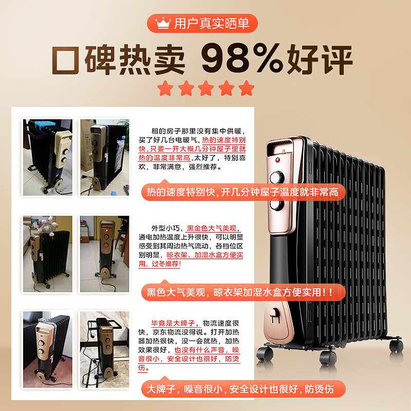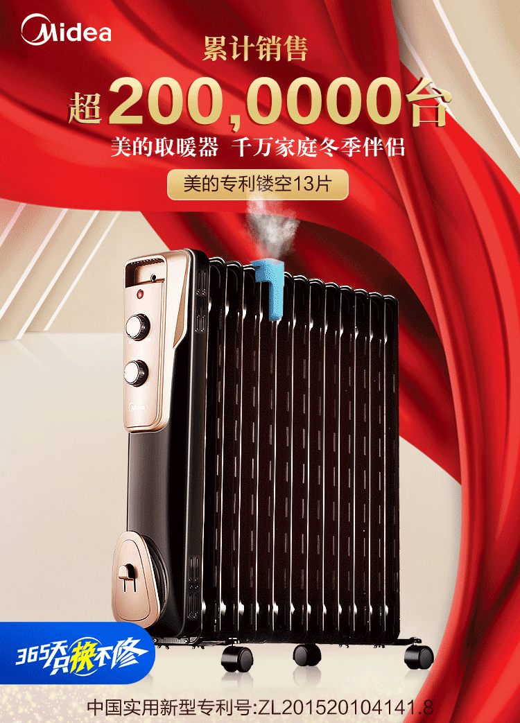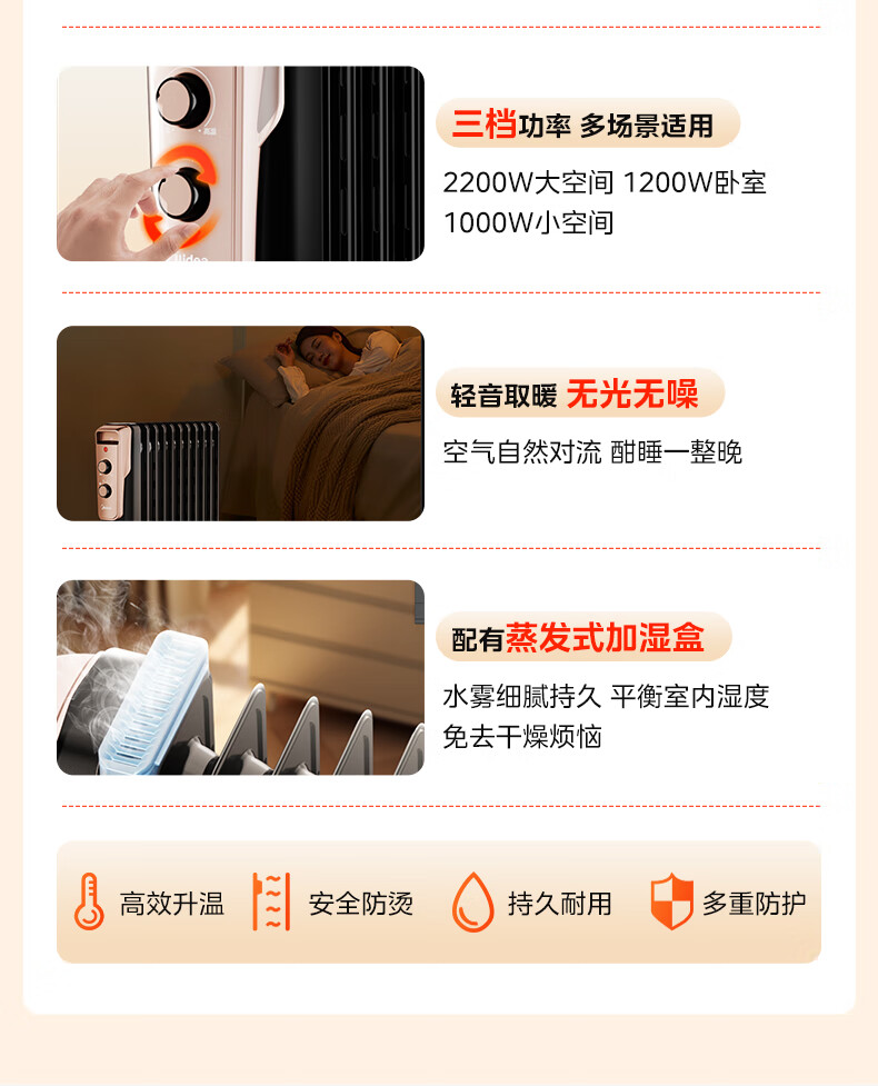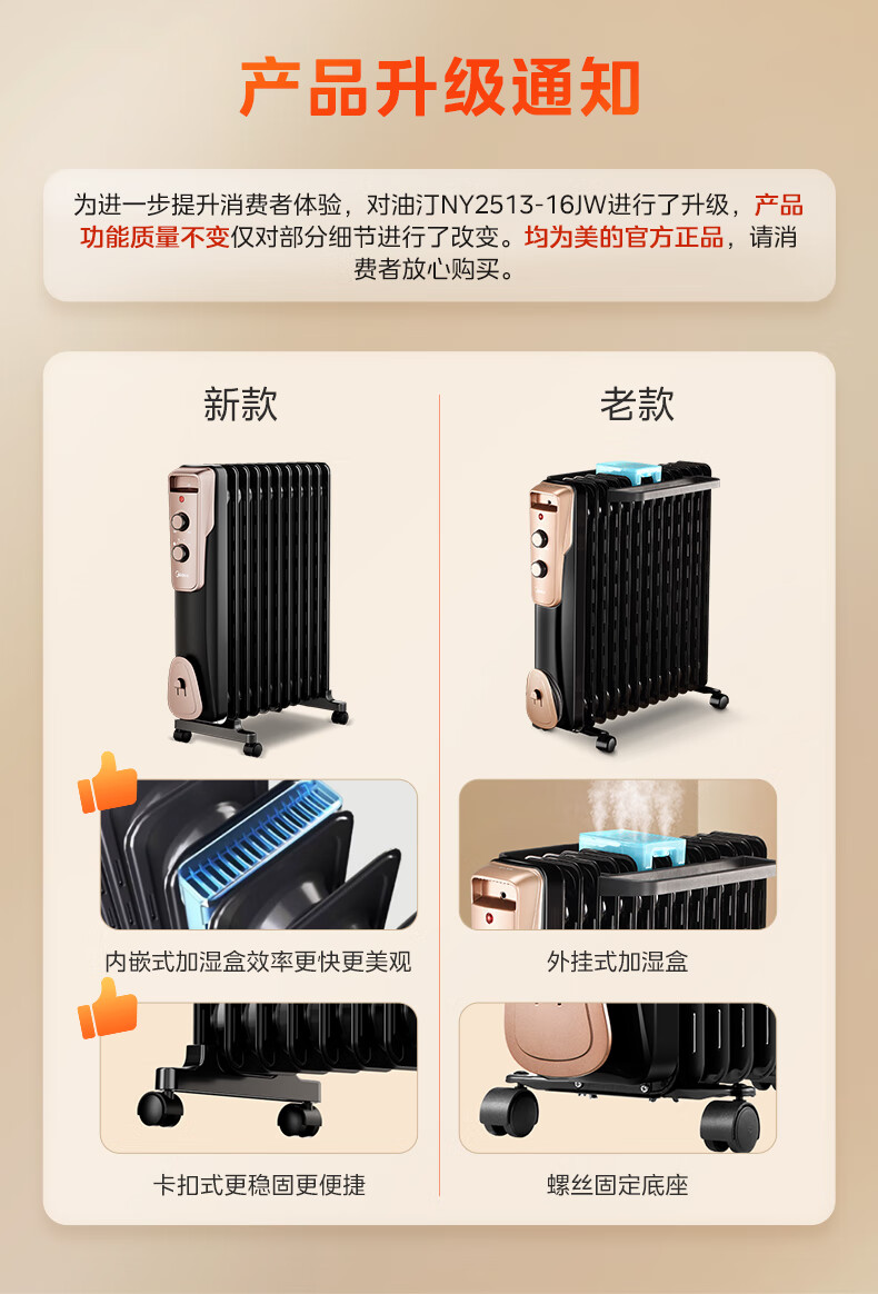 美的(Midea)【超级单品】电热油汀取暖器 家用电暖器 加湿暖气片加热器 全屋大面积升温速热烤火炉NY2513-16JW