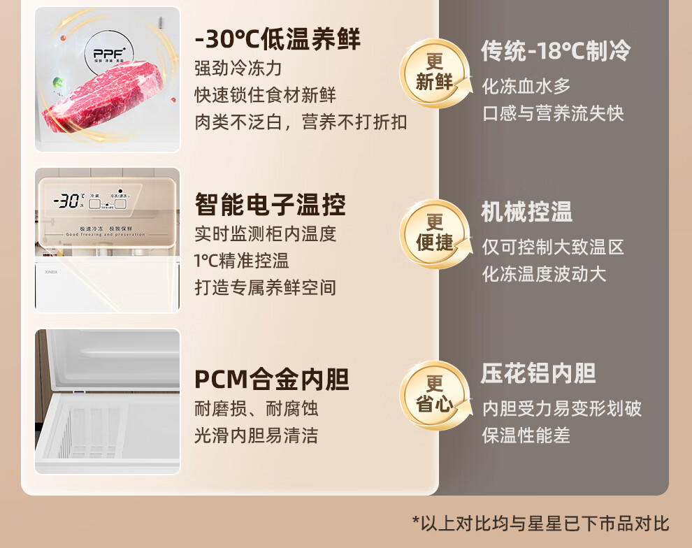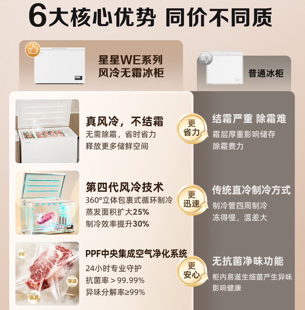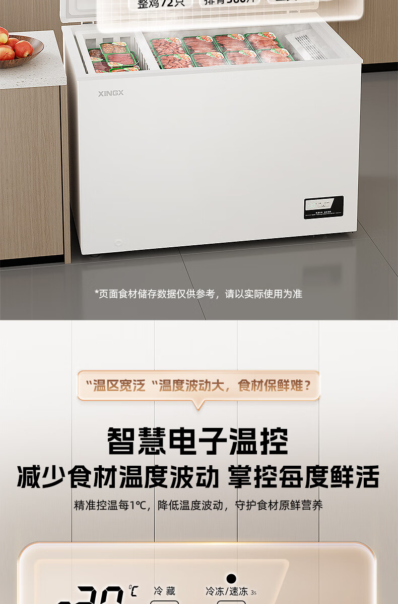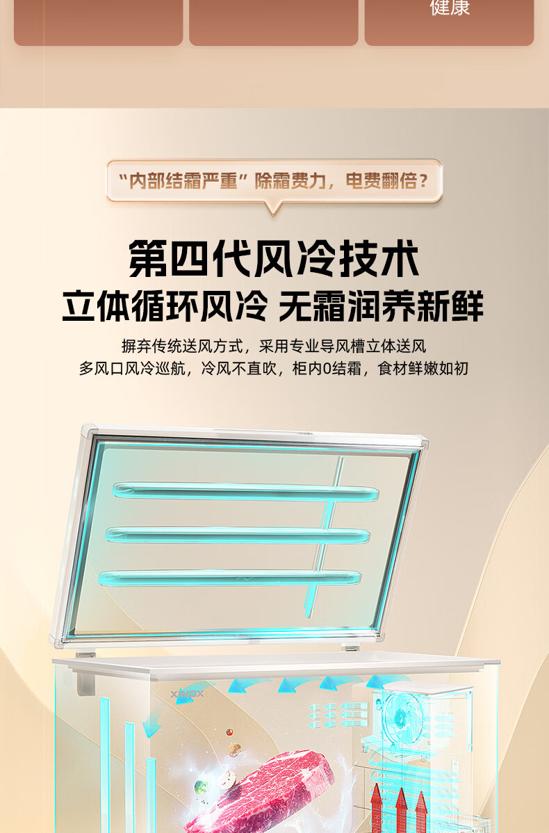 星星(XINGX)260L单温家用小型冰柜 大容量风冷无霜保鲜节能一级能效冰箱冷藏冷冻两用冷柜BD/BC-260WE国家补贴