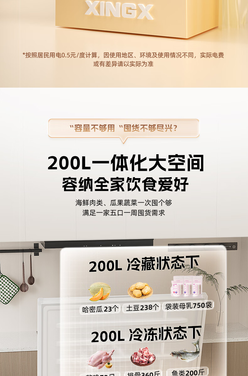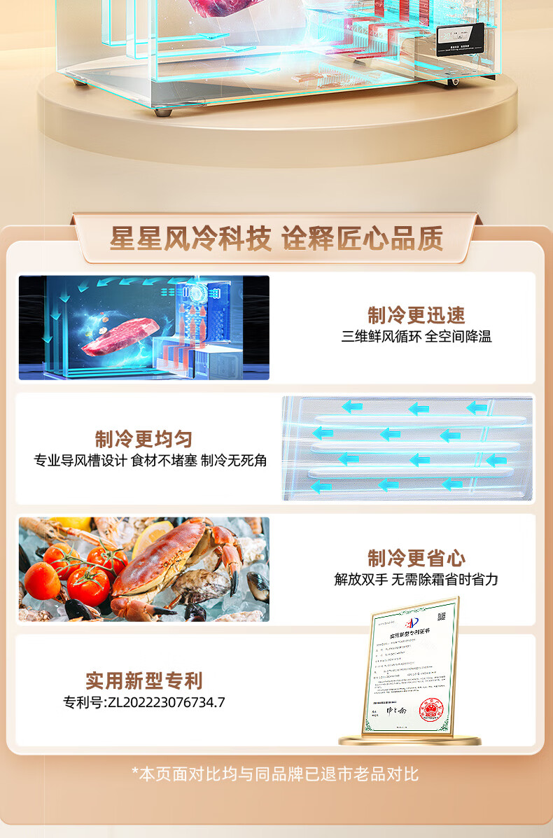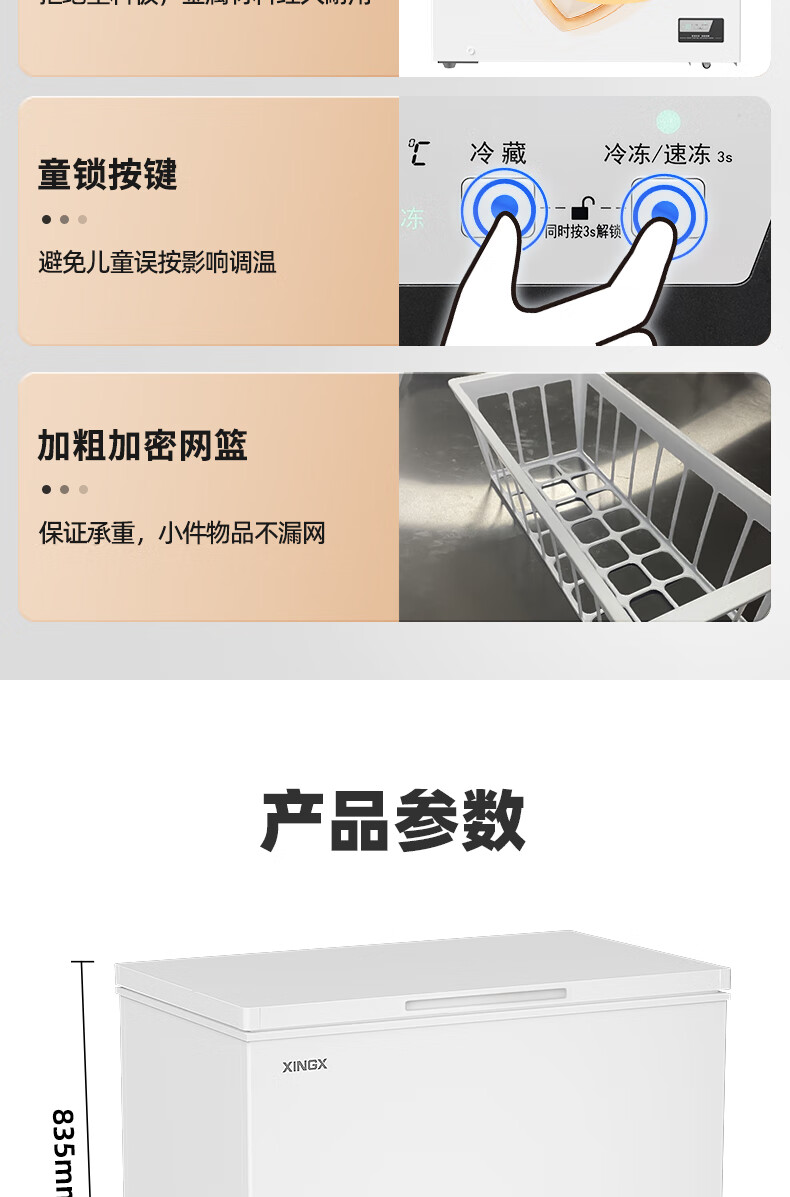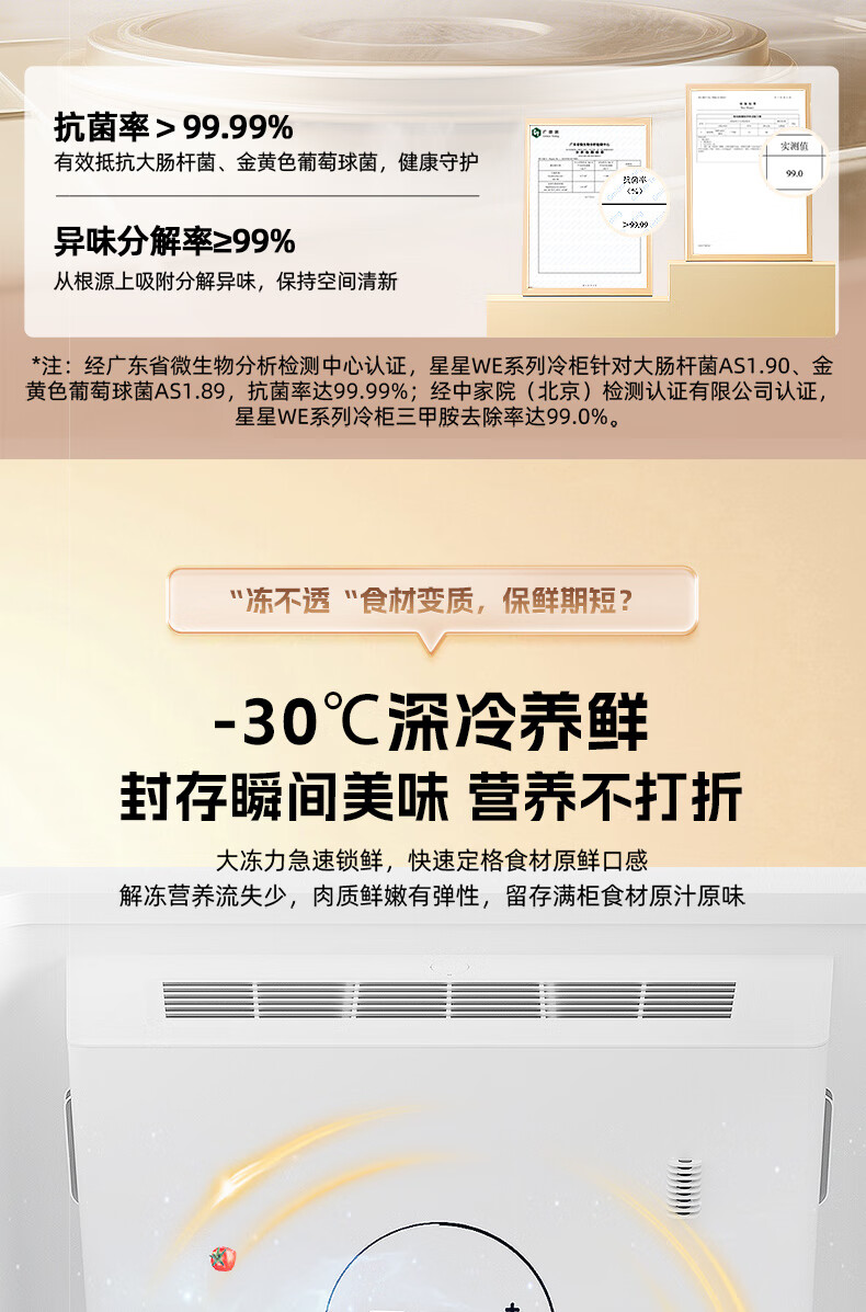 星星(XINGX)260L单温家用小型冰柜 大容量风冷无霜保鲜节能一级能效冰箱冷藏冷冻两用冷柜BD/BC-260WE国家补贴