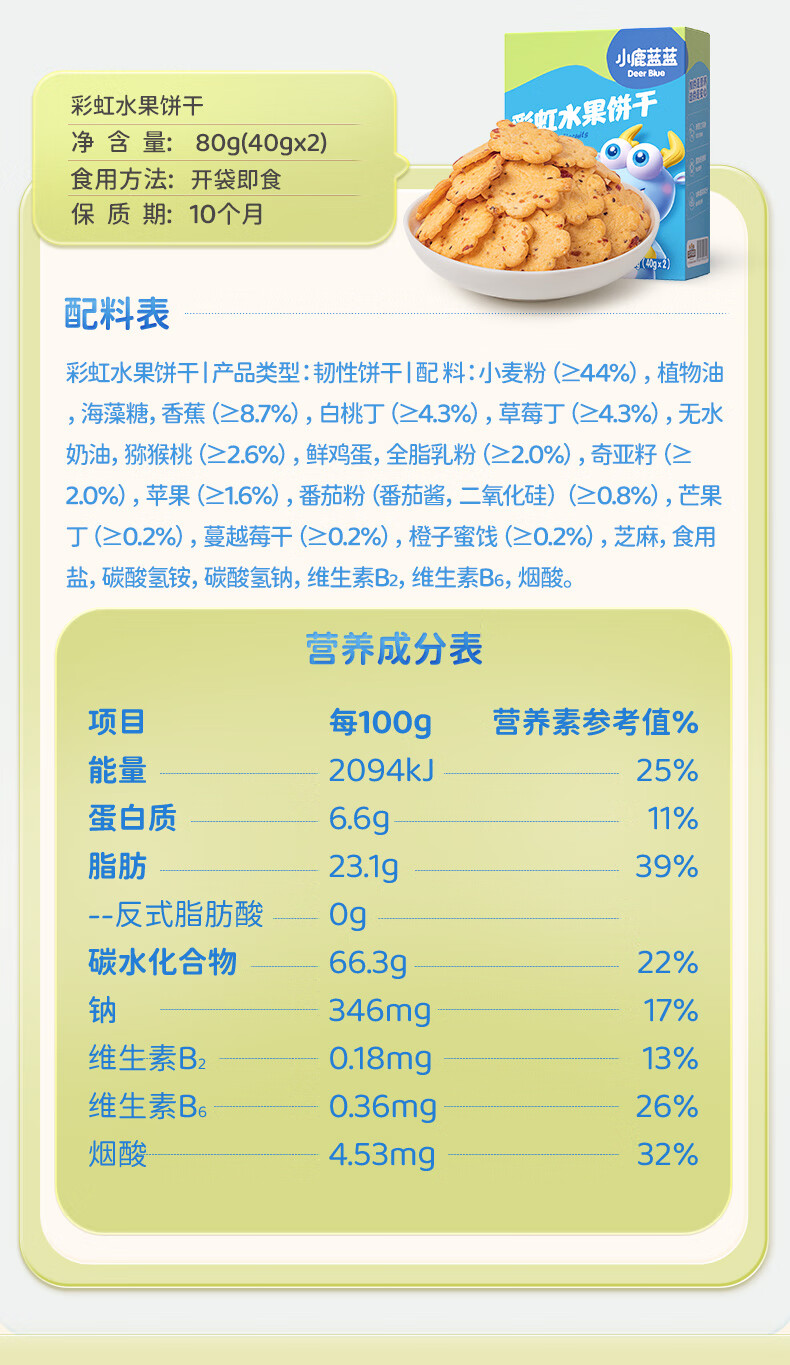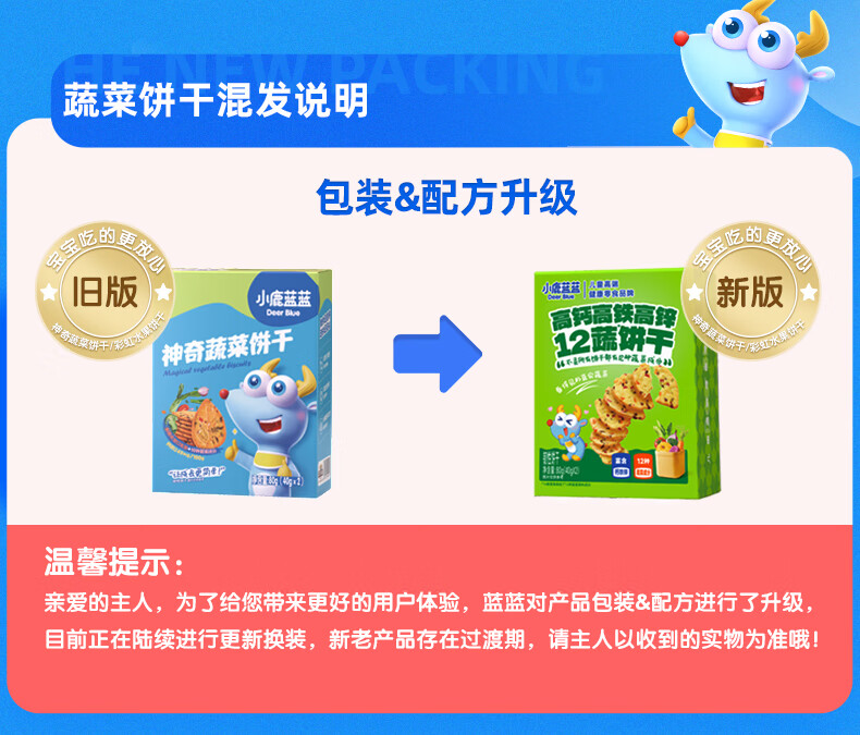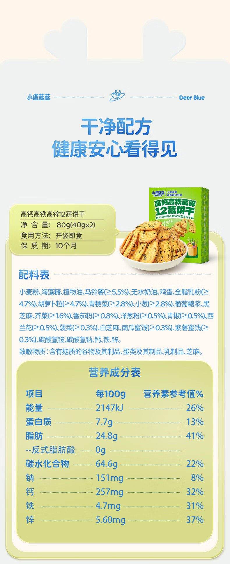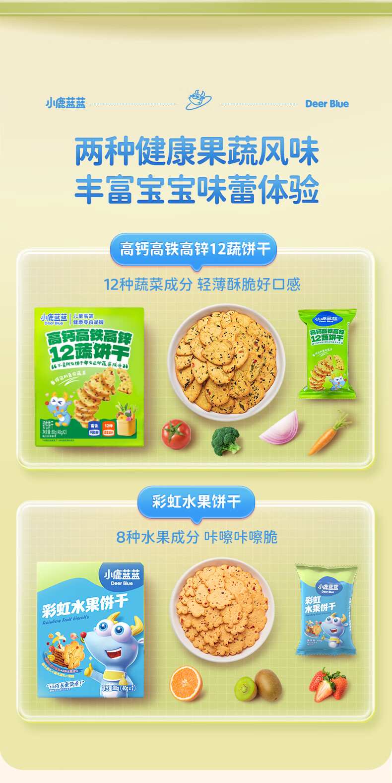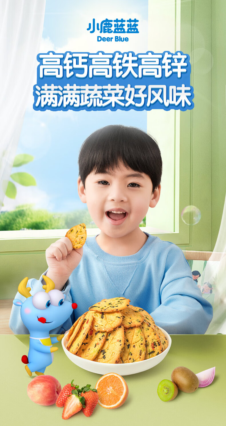 小鹿蓝蓝12蔬饼干12种蔬菜成分 宝宝零食高钙高铁高锌儿童饼干80g