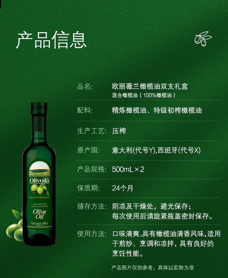 欧丽薇兰 Olivoila【保真橄榄油】 食用油 橄榄油500MLx2 精选年货礼盒