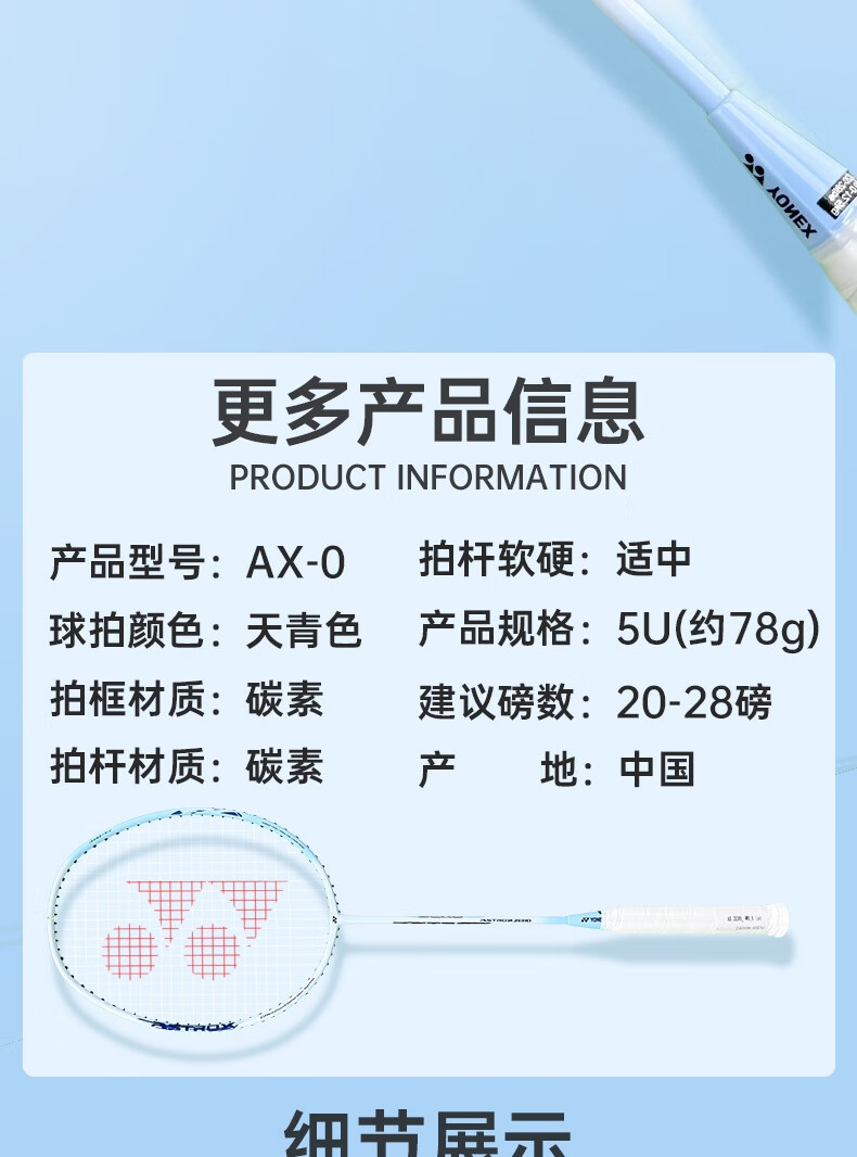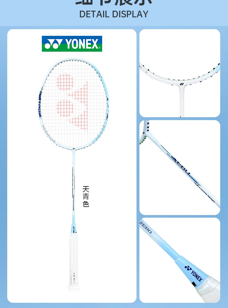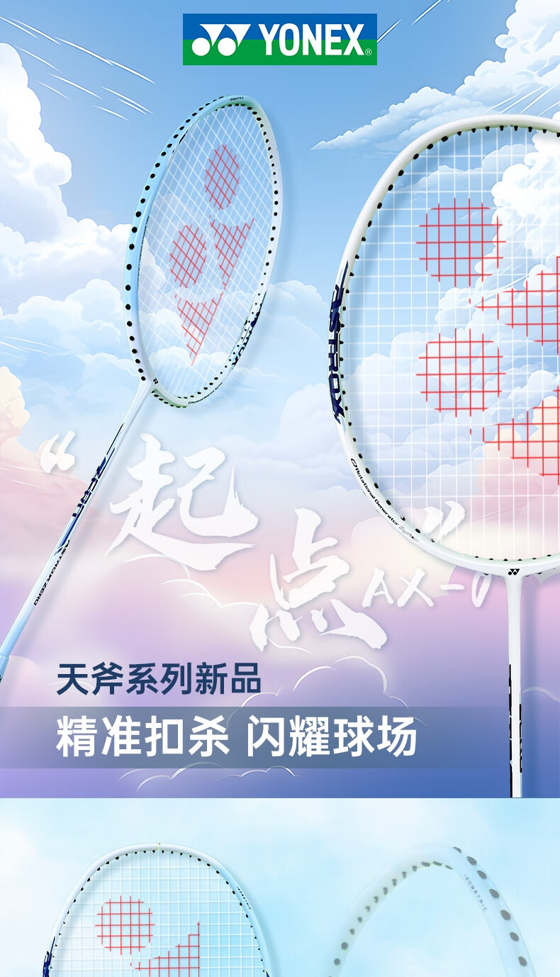 尤尼克斯(YONEX)羽毛球拍全碳素超轻5U天斧进攻拍AX-ZERO白珍珠蓝5U 已穿线附手胶