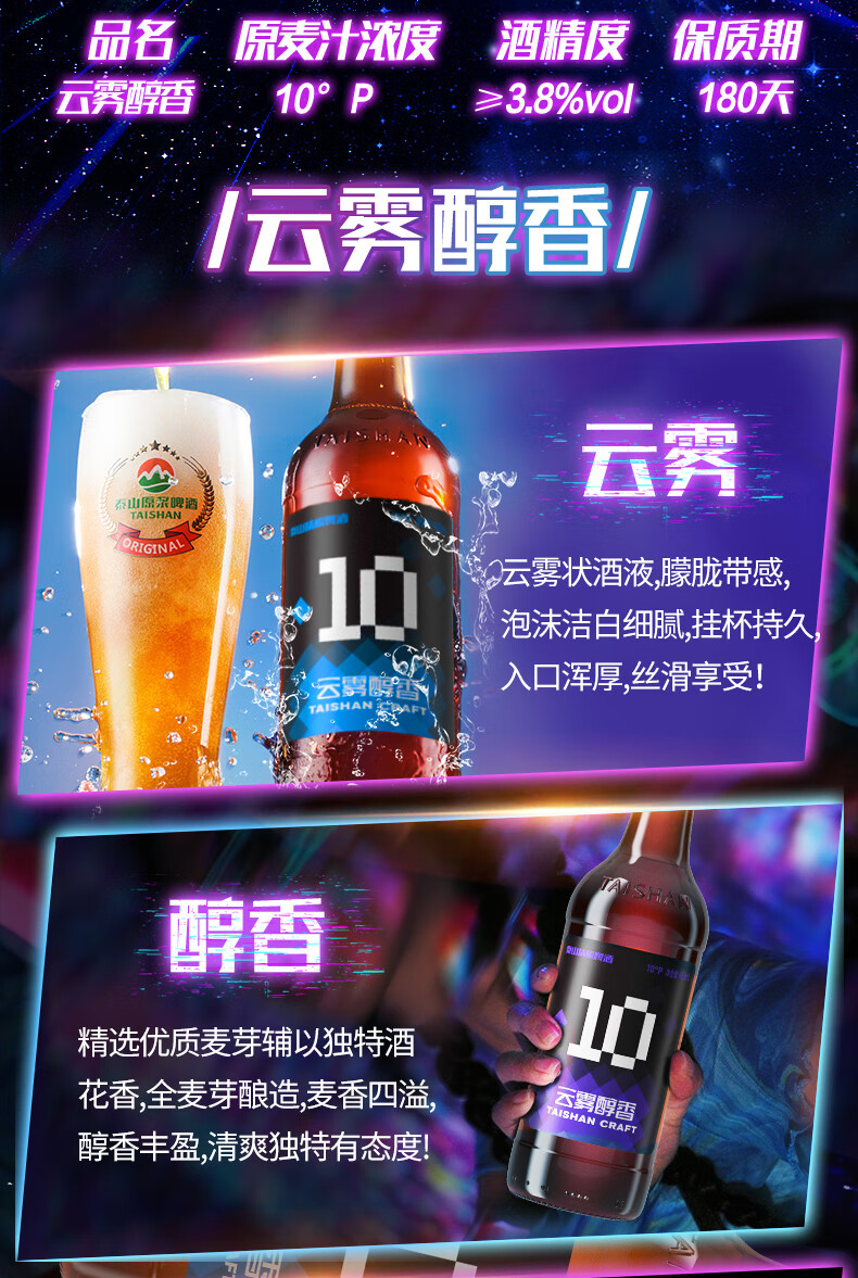 泰山啤酒(TAISHAN)原浆啤酒 10度云雾醇香450mL*12瓶 啤酒整箱 京东自营新年送礼