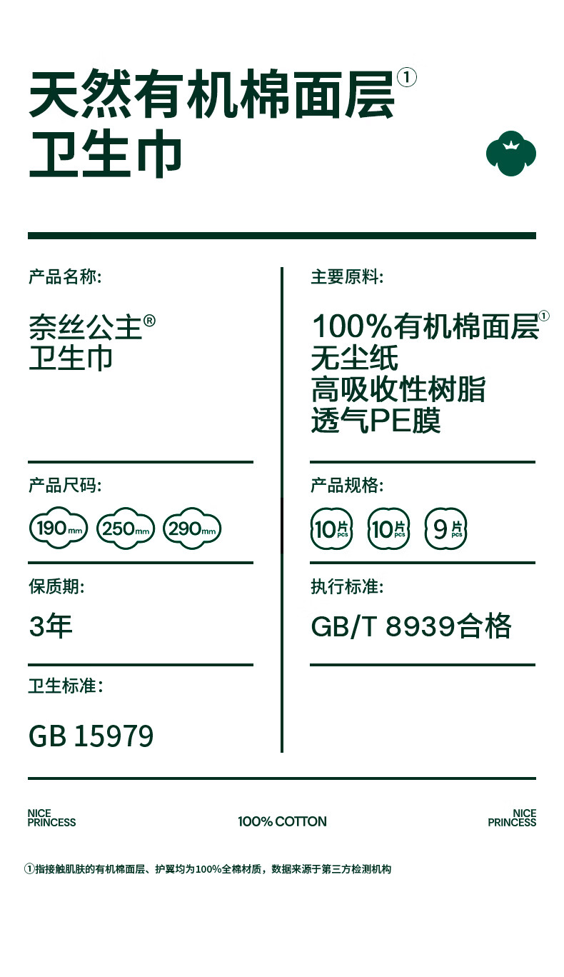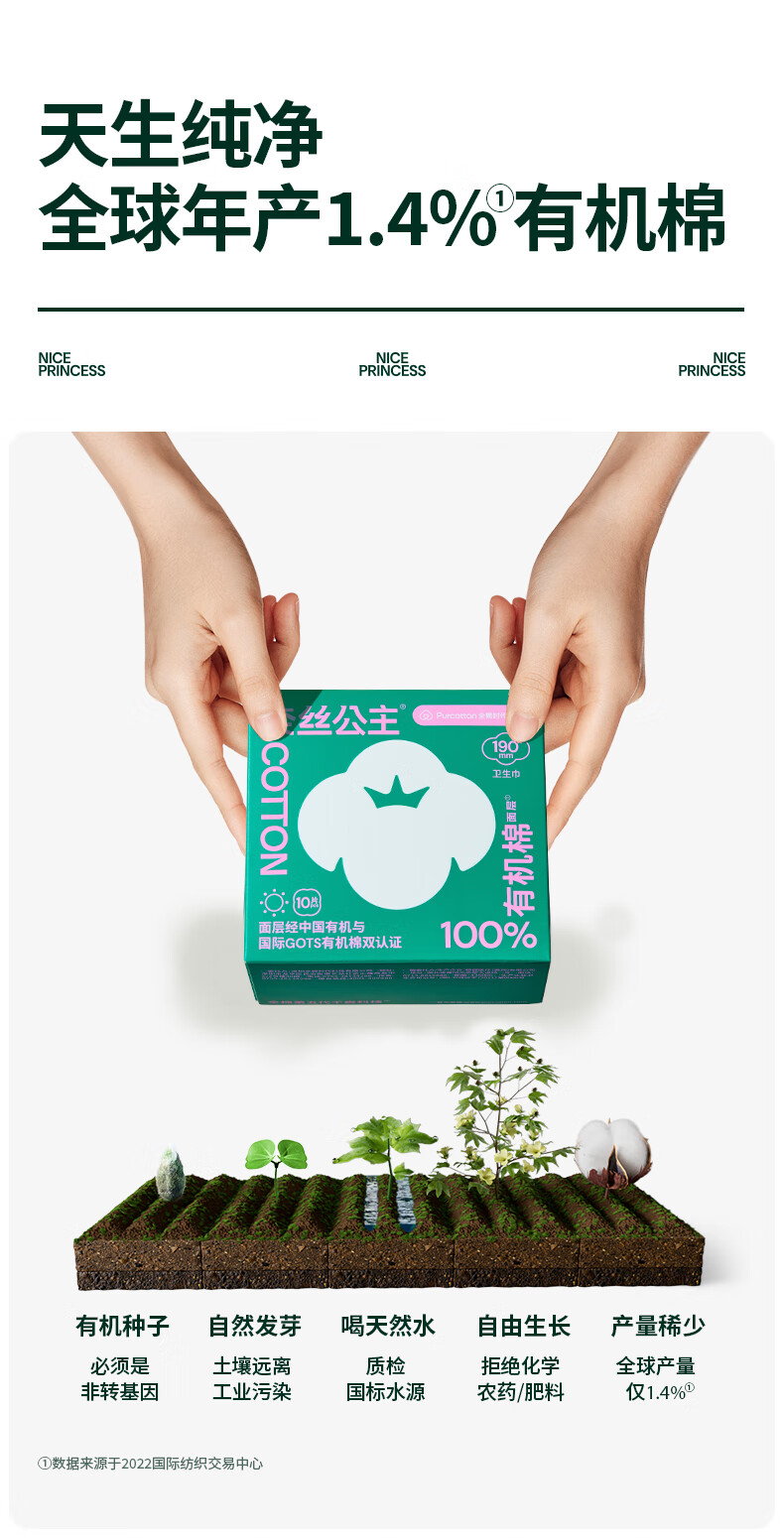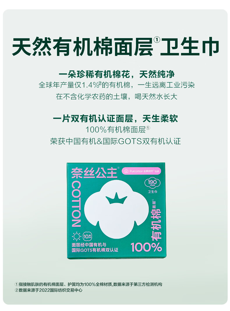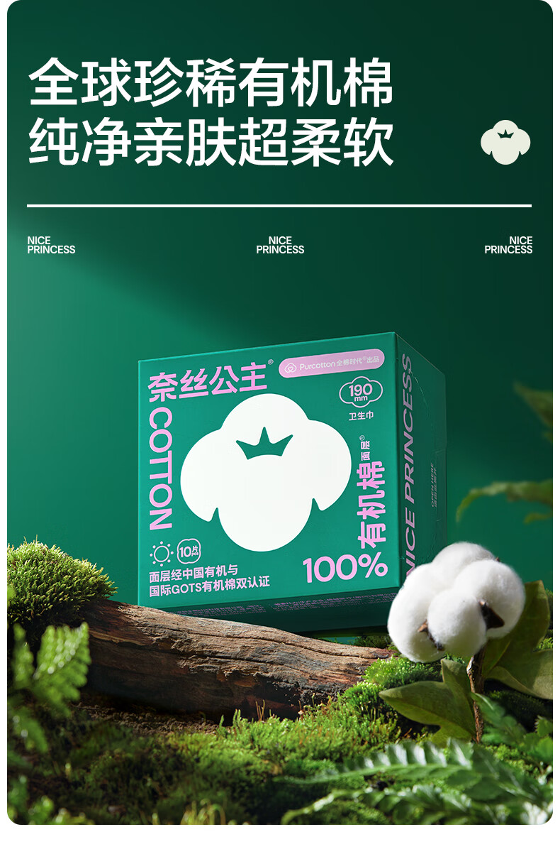全棉时代奈丝公主医护级有机棉超薄迷你巾卫生巾190mm 10片/盒京东自营