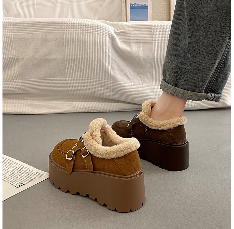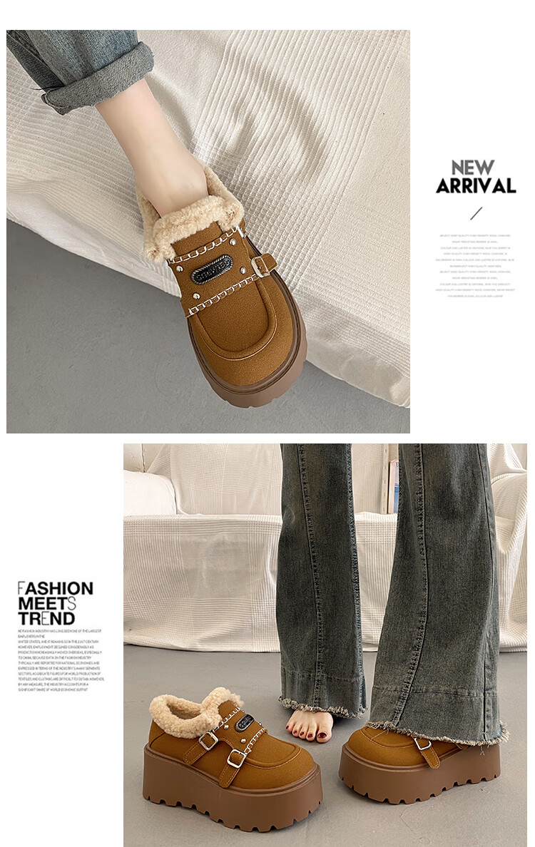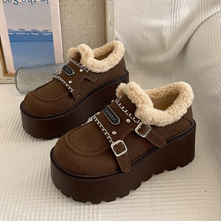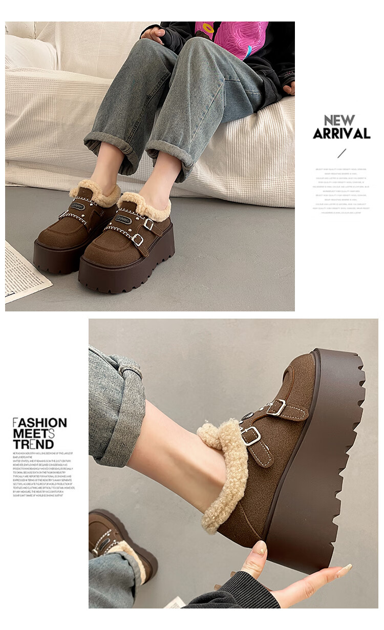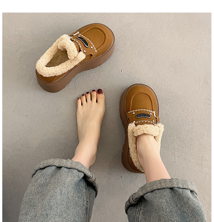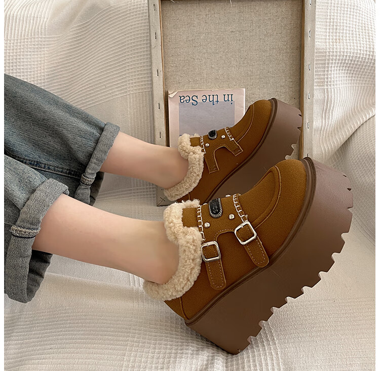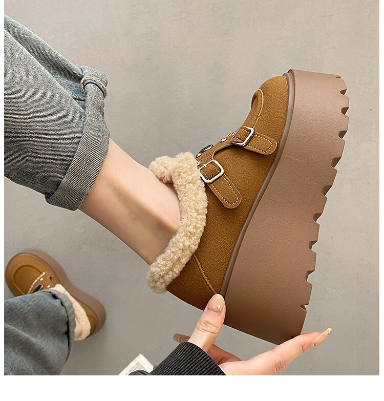 妙丽勃肯鞋女厚底复古加绒时尚保暖潮流2025冬季新款包头半拖鞋 咖色 37 (235mm) 标准码