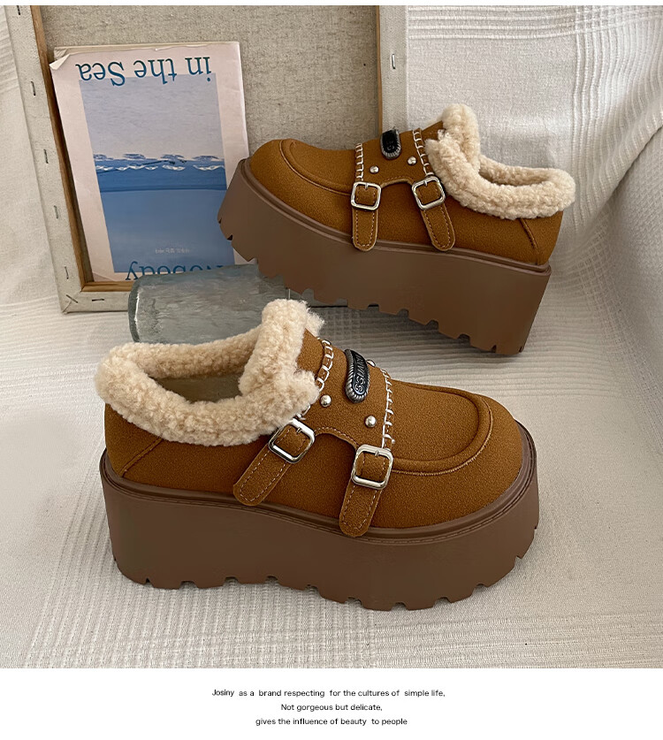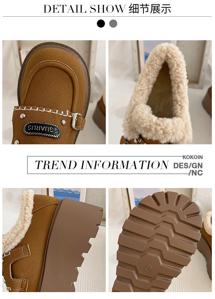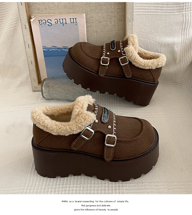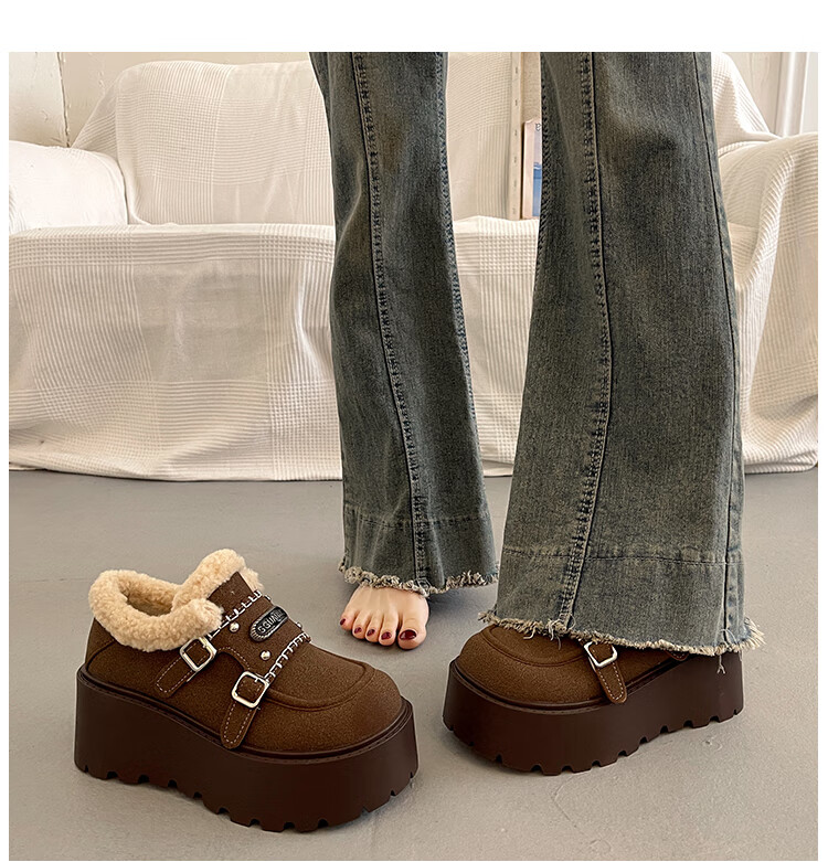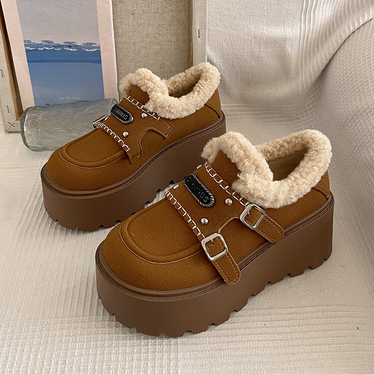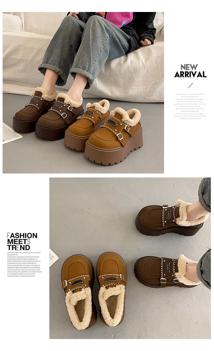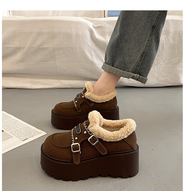 妙丽勃肯鞋女厚底复古加绒时尚保暖潮流2025冬季新款包头半拖鞋 咖色 37 (235mm) 标准码