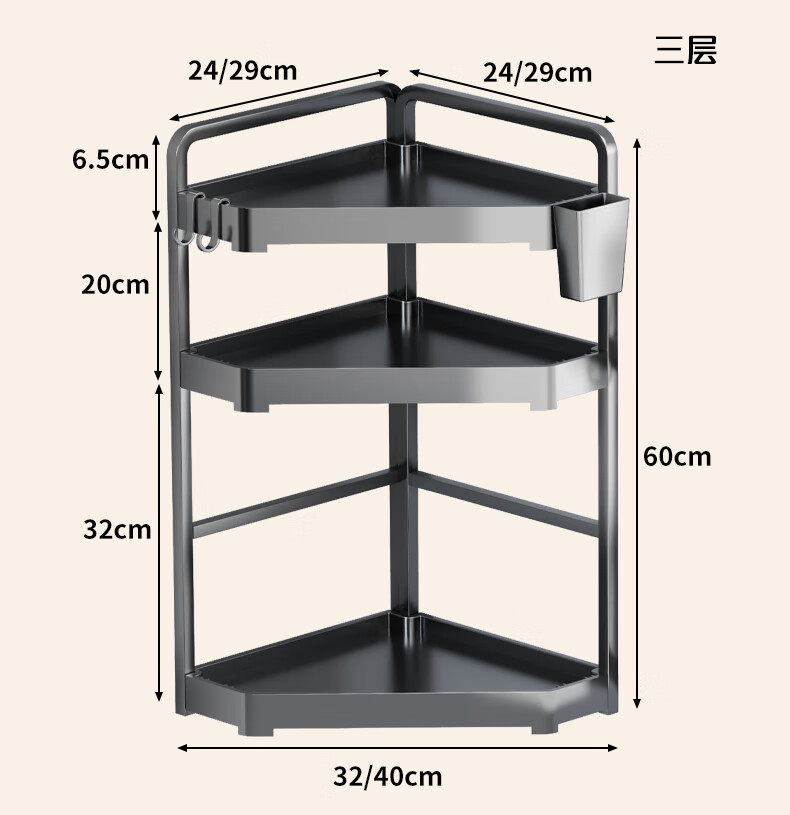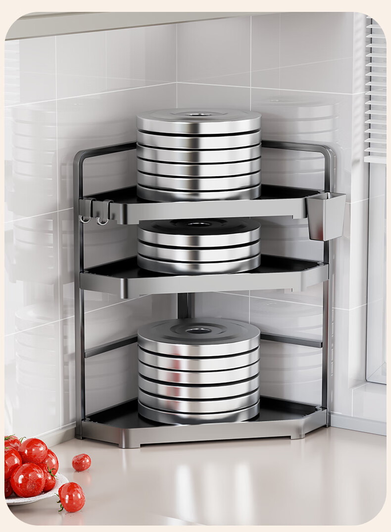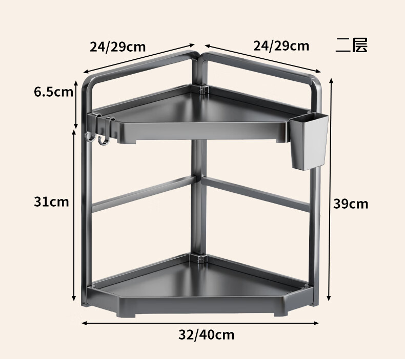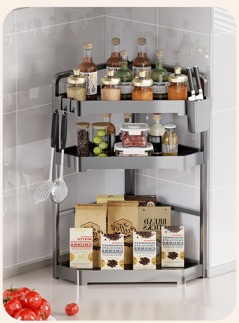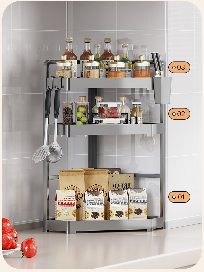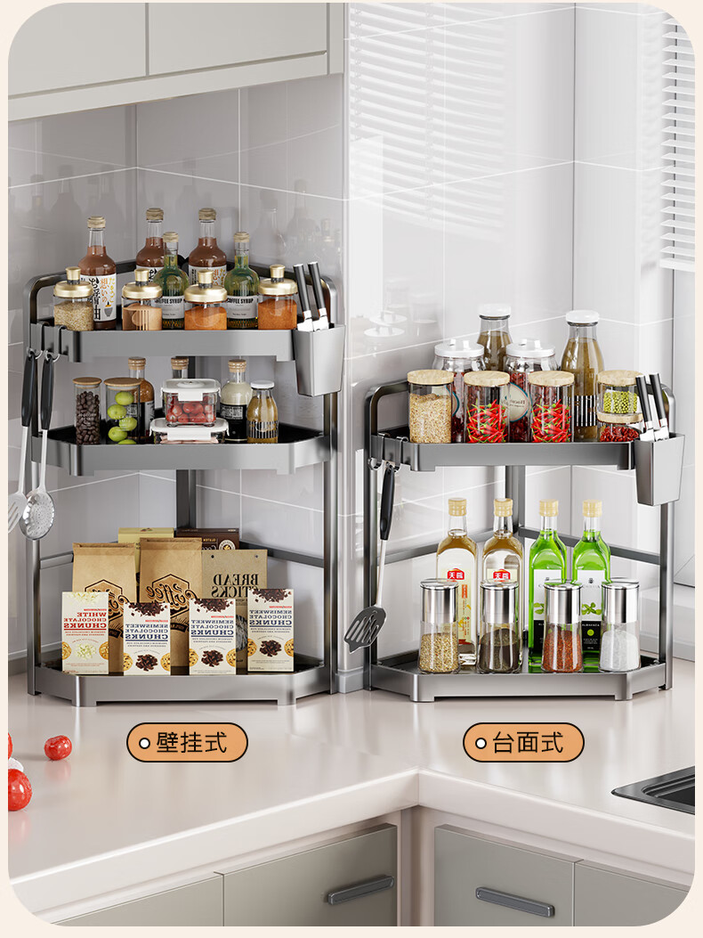 木格格厨房收纳置物架厨房挂钩免打孔挂厨具锅铲勺子调料架零食架收纳架 枪灰色大号二层【全配】