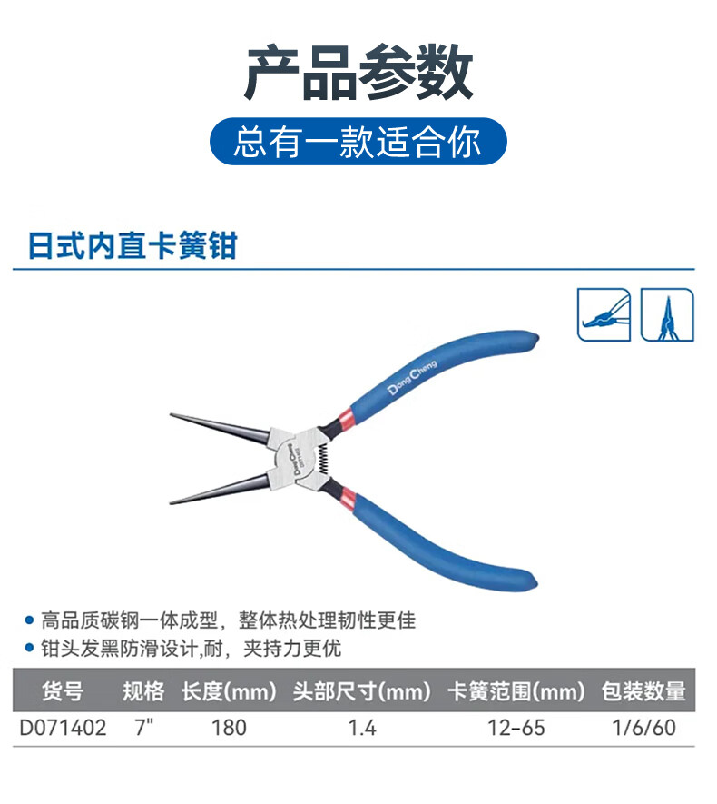 东成 日式内直/外直/内弯/外弯/五合一/四件套卡簧钳日式卡簧钳 5寸日式内直卡簧钳D071401