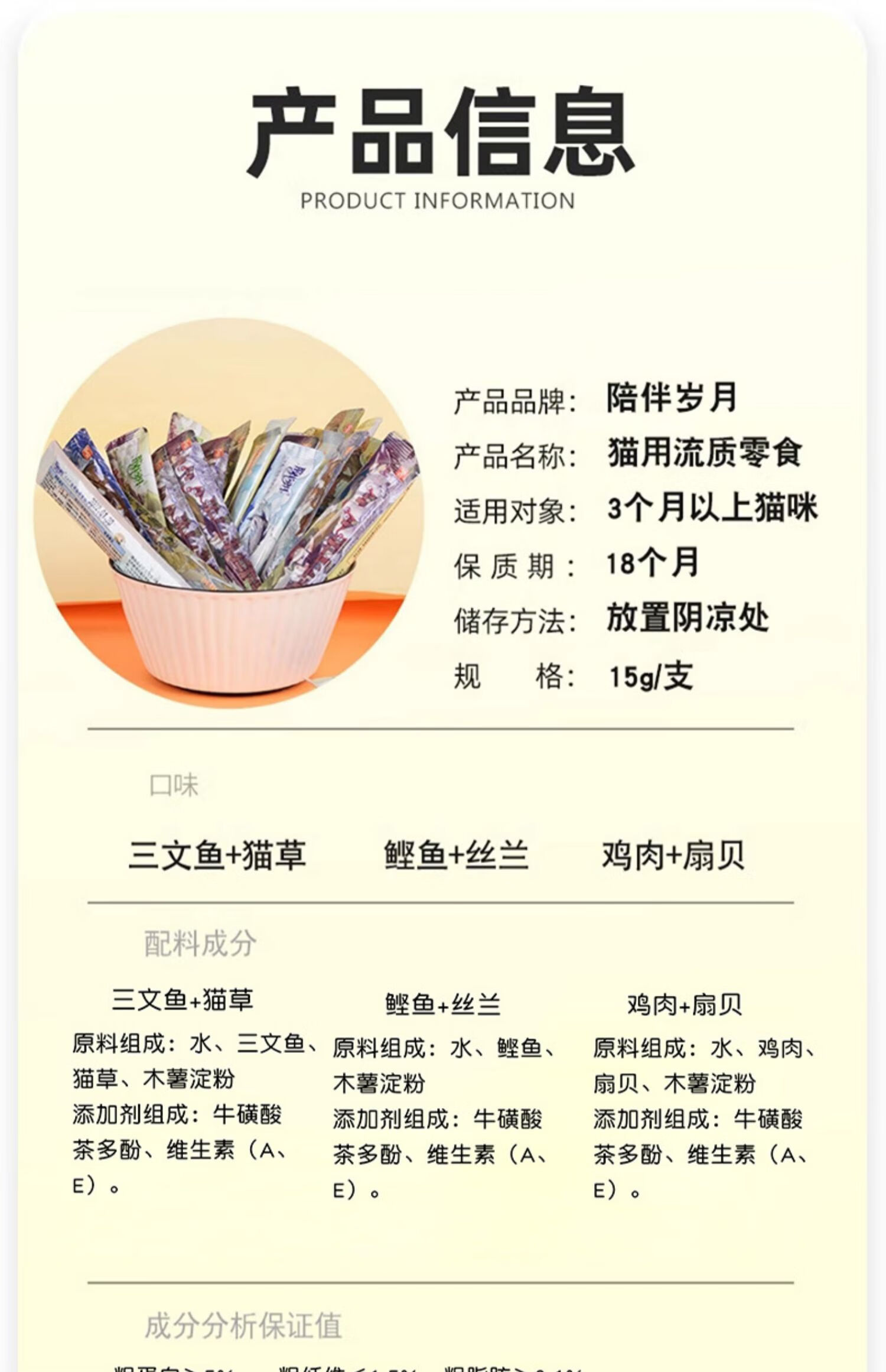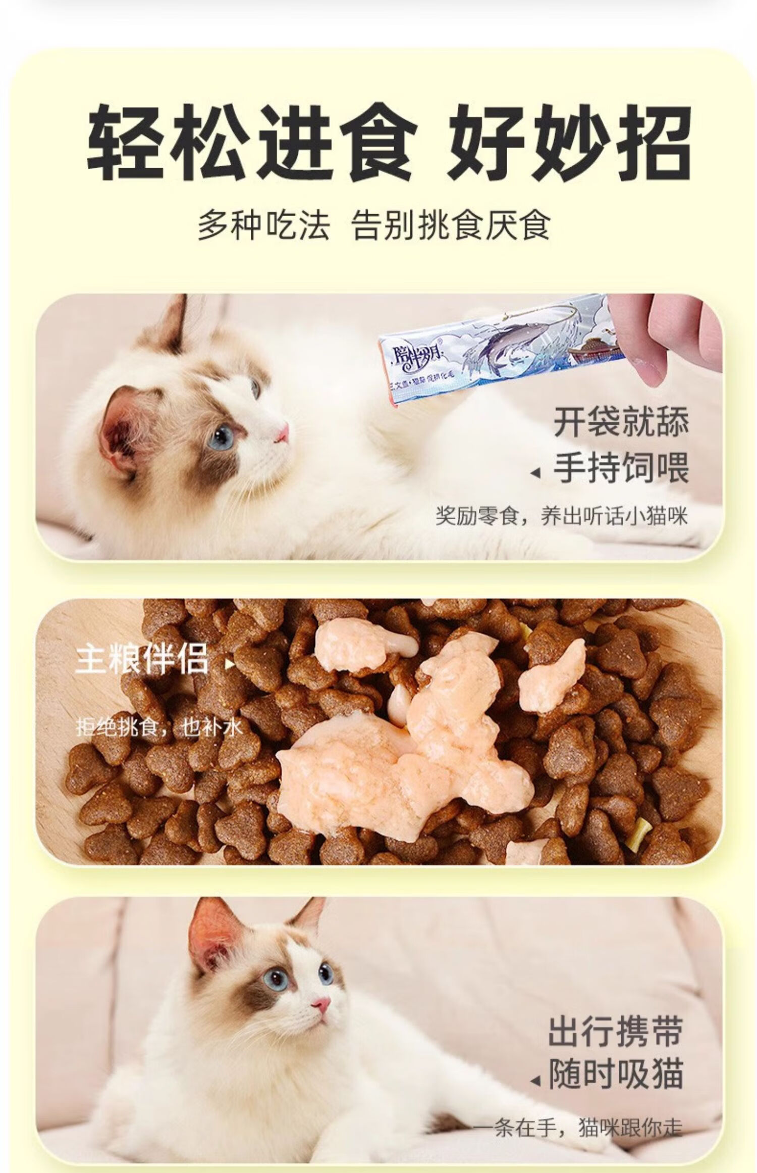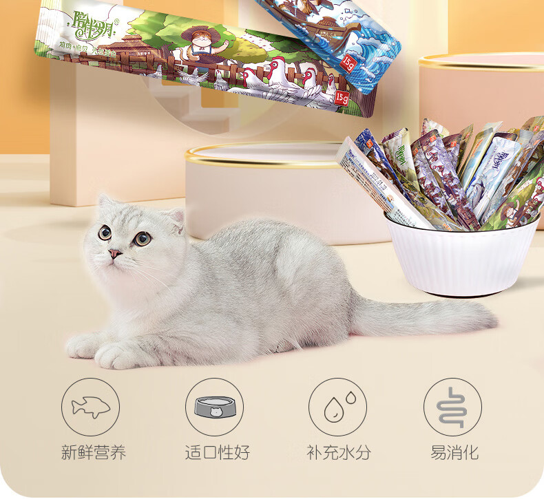 陪伴岁月猫条 猫咪零食 营养小猫幼猫成猫宠物猫罐头鲜湿粮包 混合散装50支 口味可选