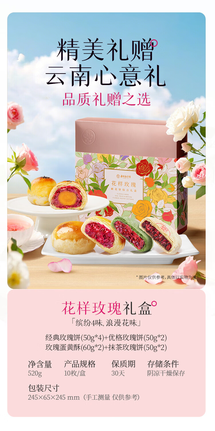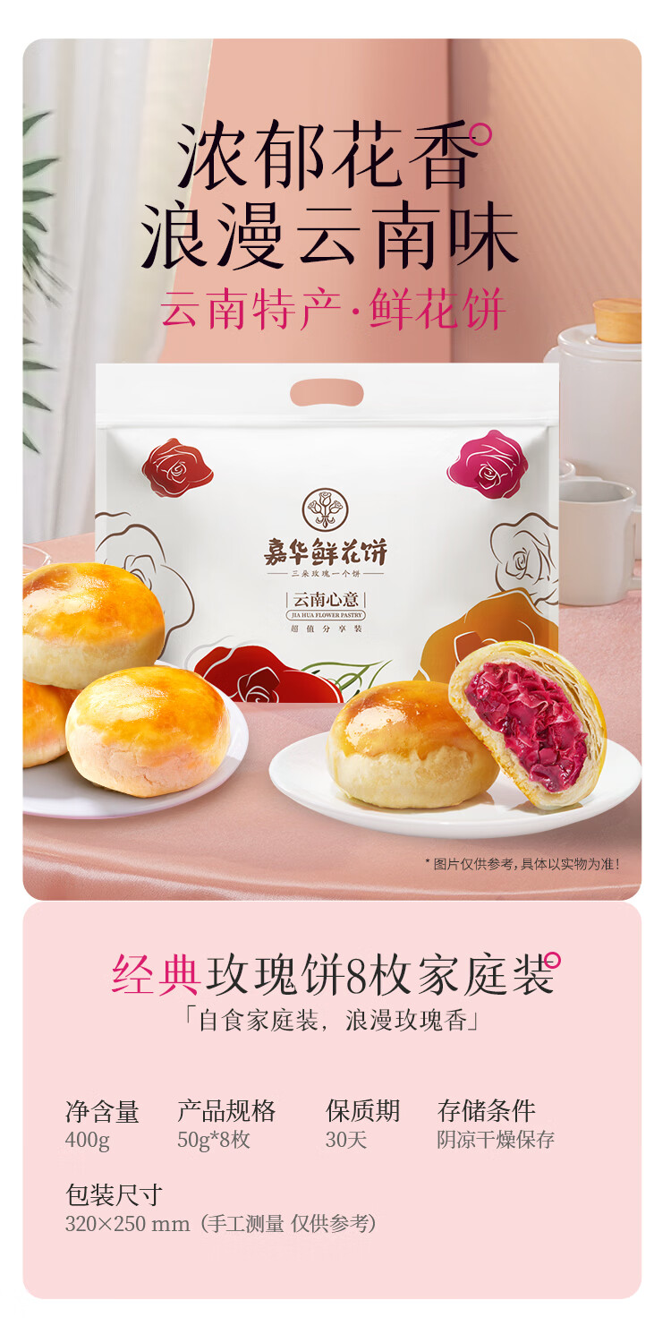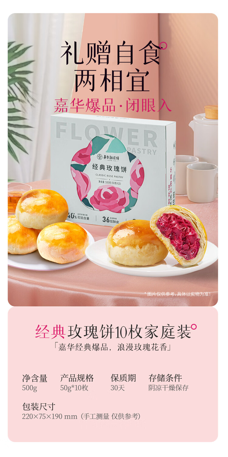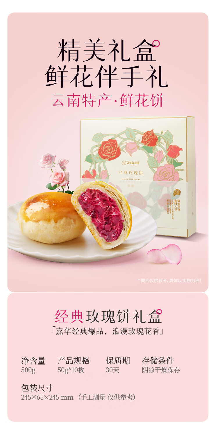 嘉华鲜花饼经典玫瑰饼云南特产伴手礼糕点心小吃面包休闲零食早餐 经典玫瑰饼35g*10枚