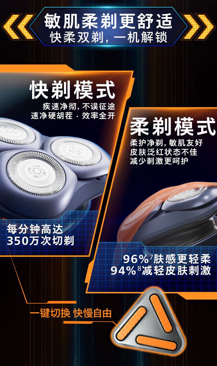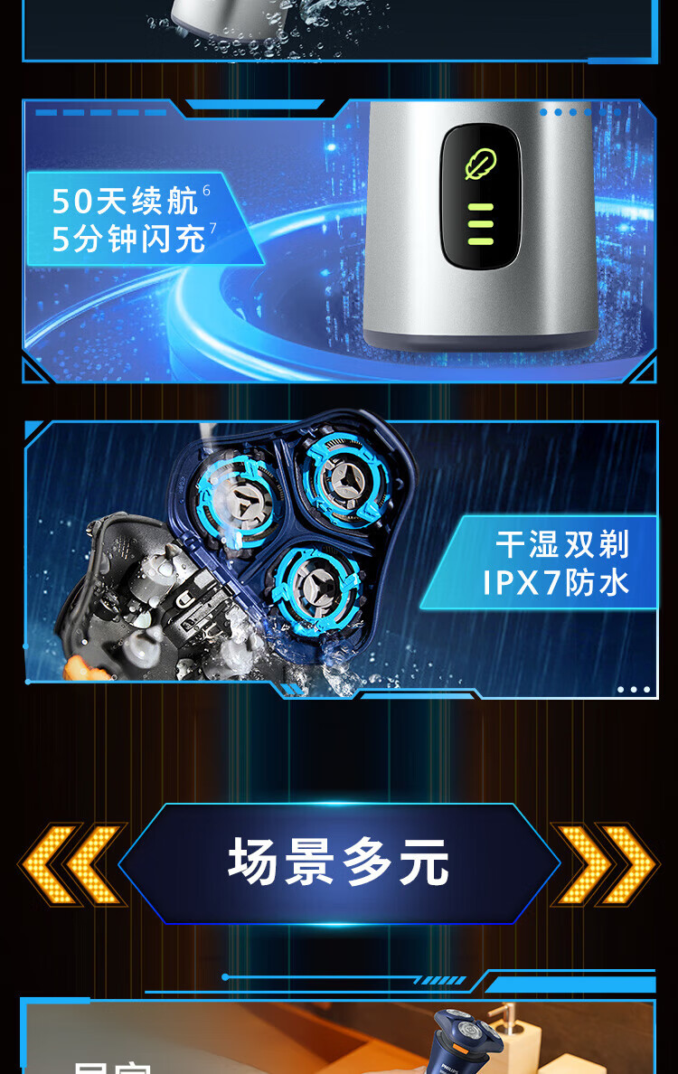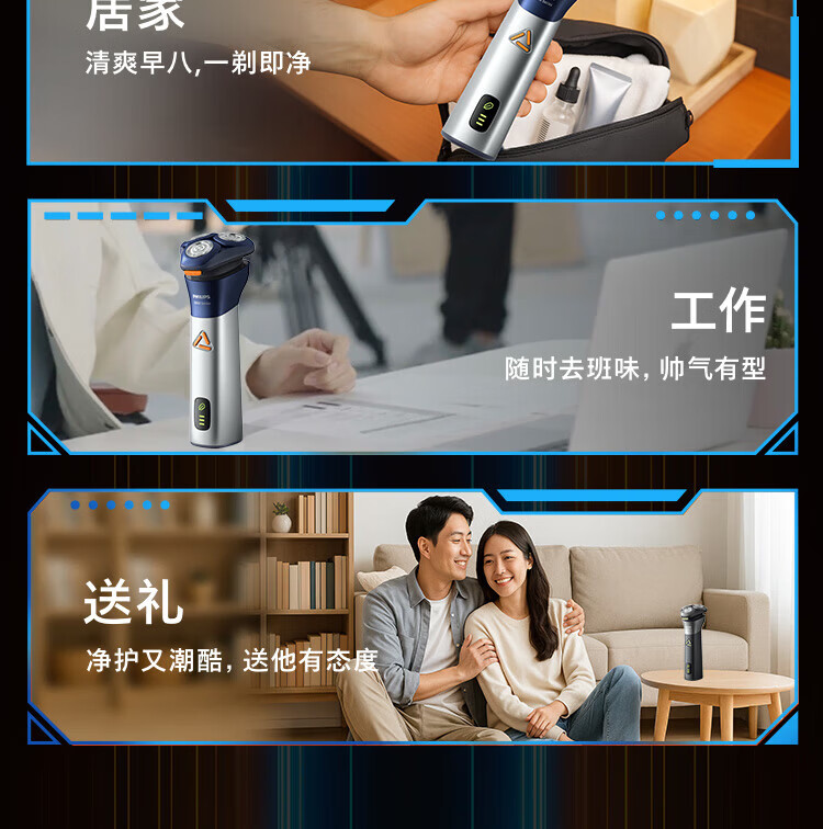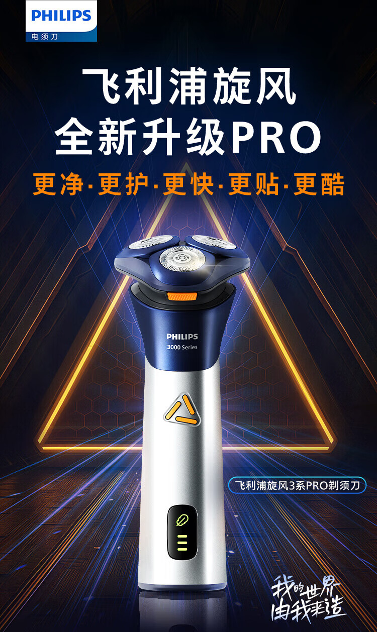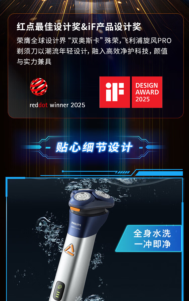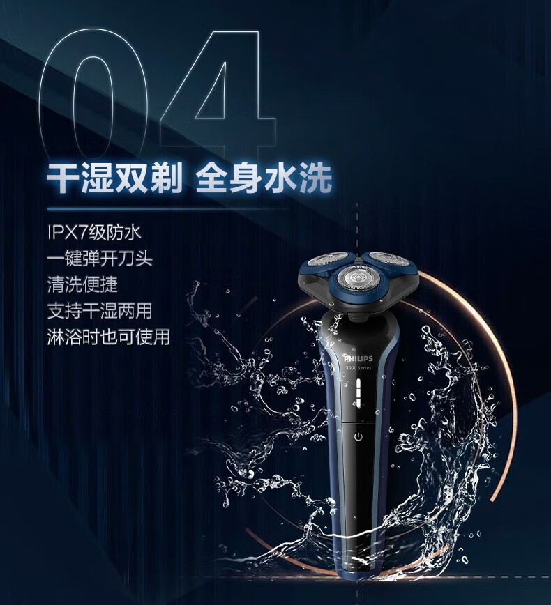 飞利浦(PHILIPS)剃须刀电动刮胡刀全身水洗刀头进口干湿双剃快充长续航全新3系送父亲男友老公新年礼物 S3608