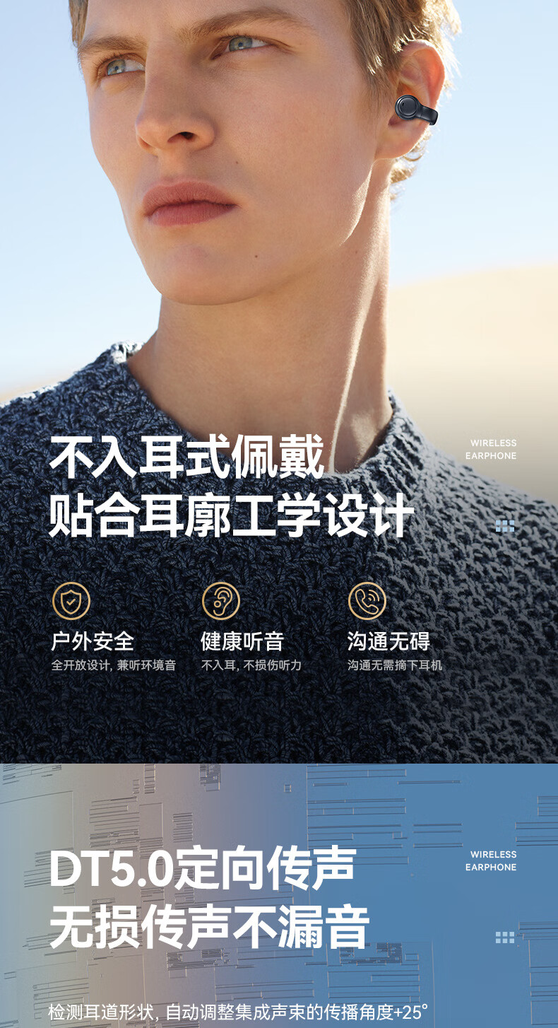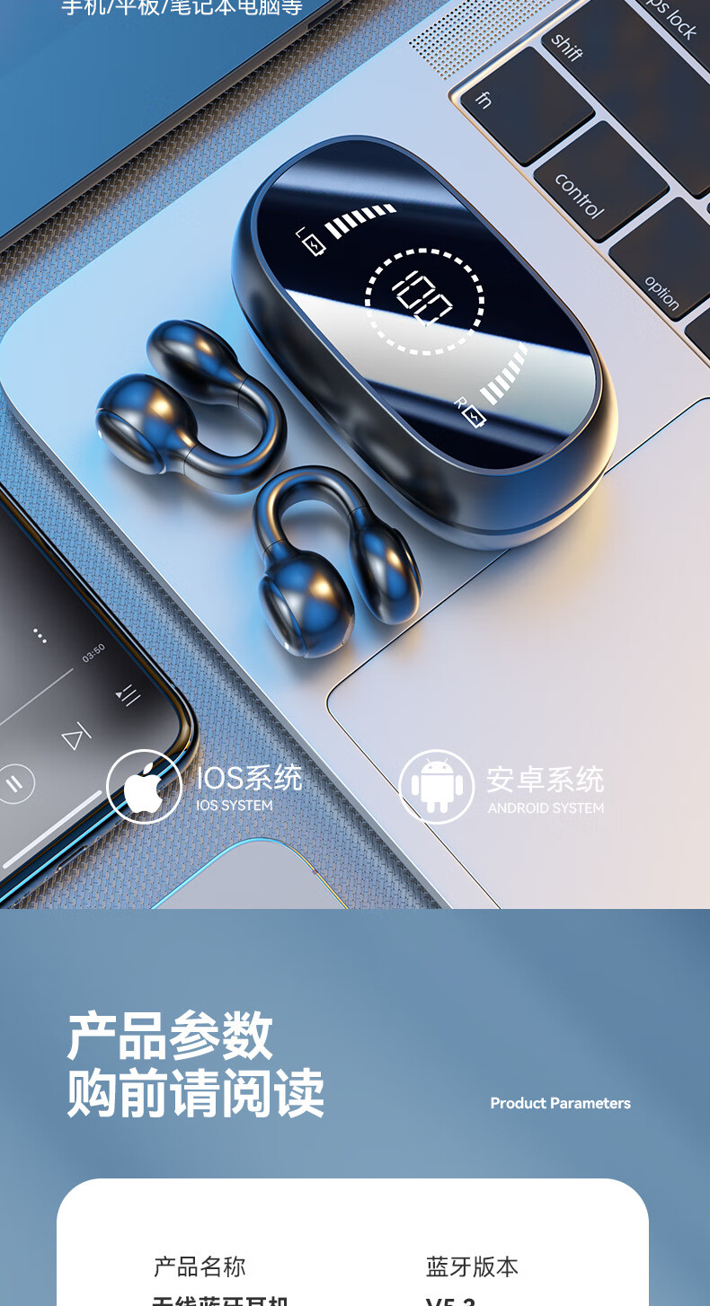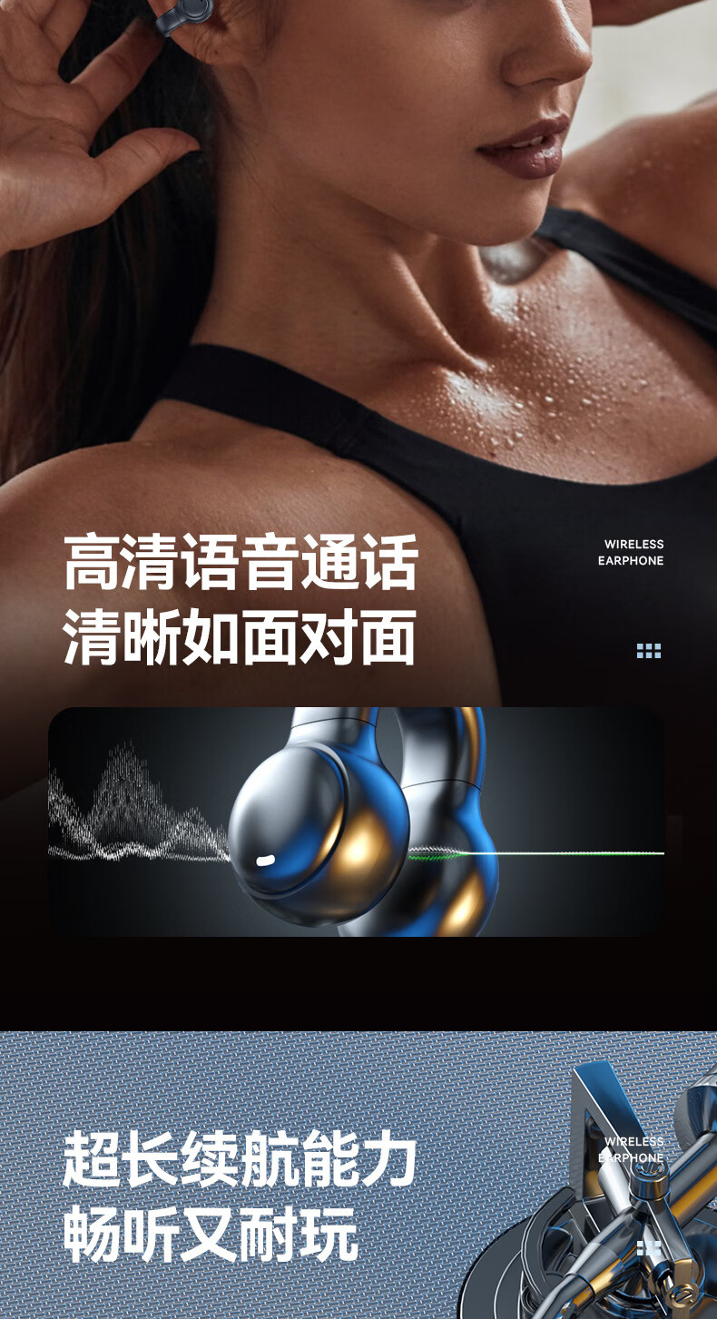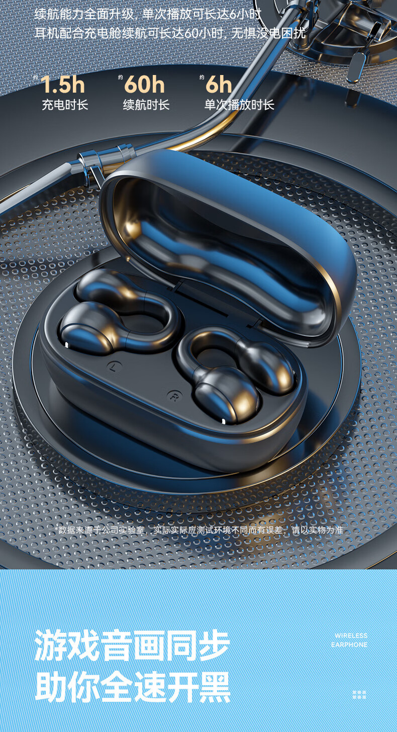 XUTING【柏林之音】蓝牙耳机真无线耳夹式不入耳超清通话降噪开车跑步运动音乐适用于安卓苹果 顶配黑【数显充电仓+升级双耳】 【1年换新+充电线+说明书】