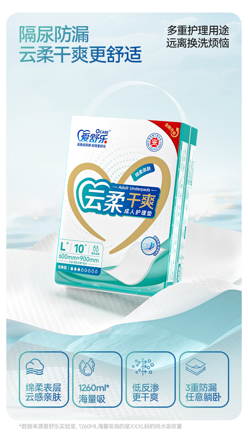 爱舒乐成人护理垫L120片(尺寸:60*90cm)云柔干爽老年人隔尿垫孕妇产褥垫