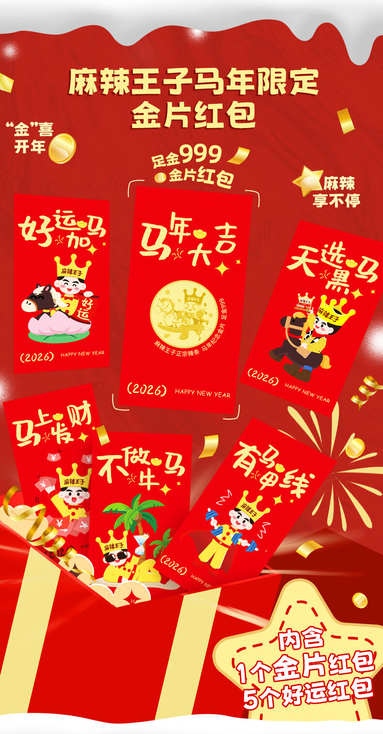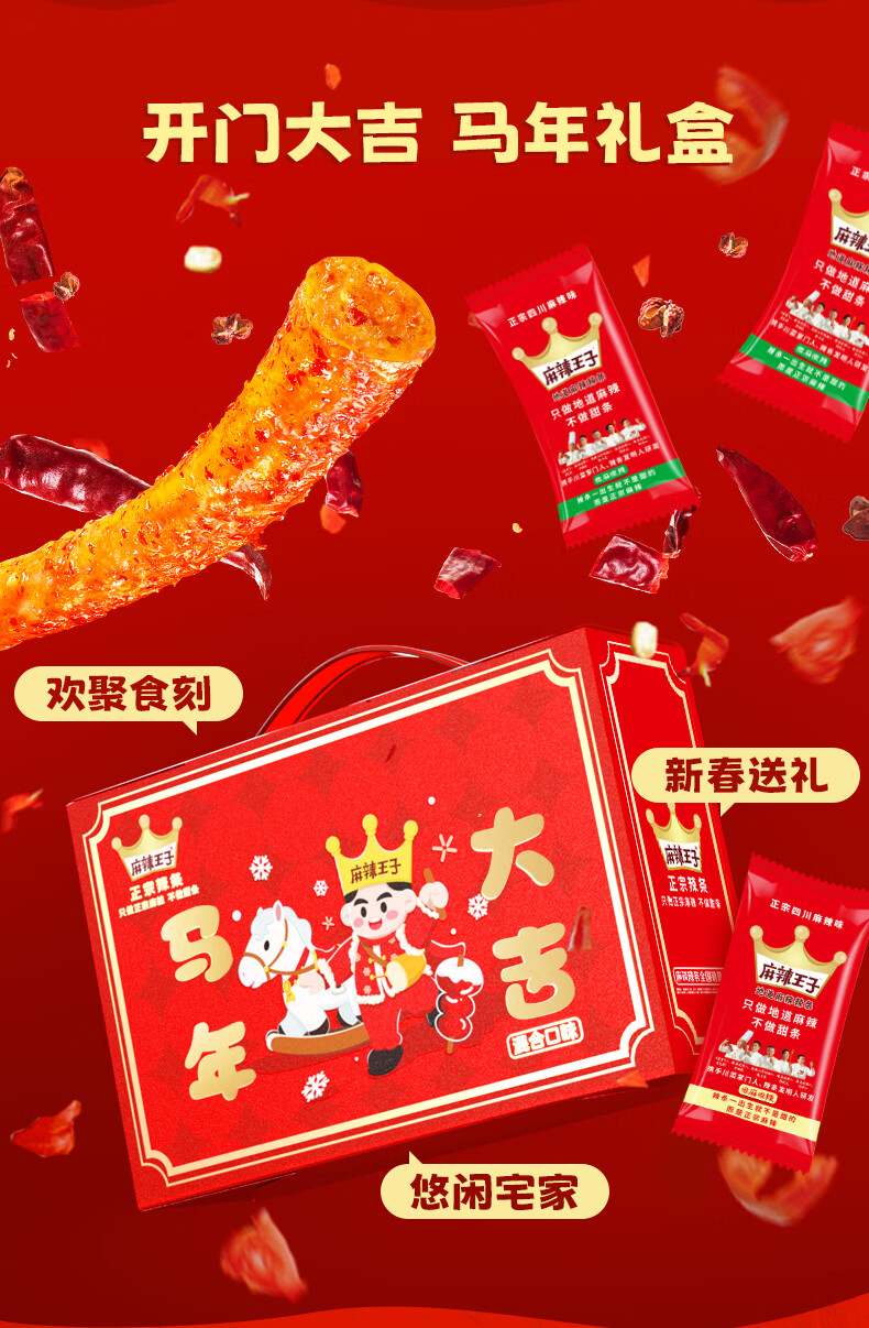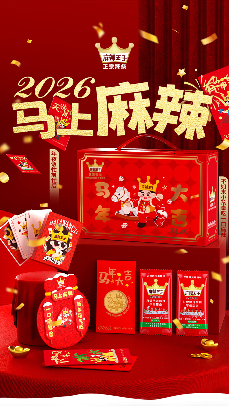 麻辣王子马年限定礼盒 微麻微辣366g+很麻很辣366g+金片红包+春联冰箱贴