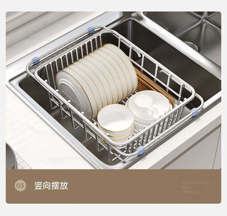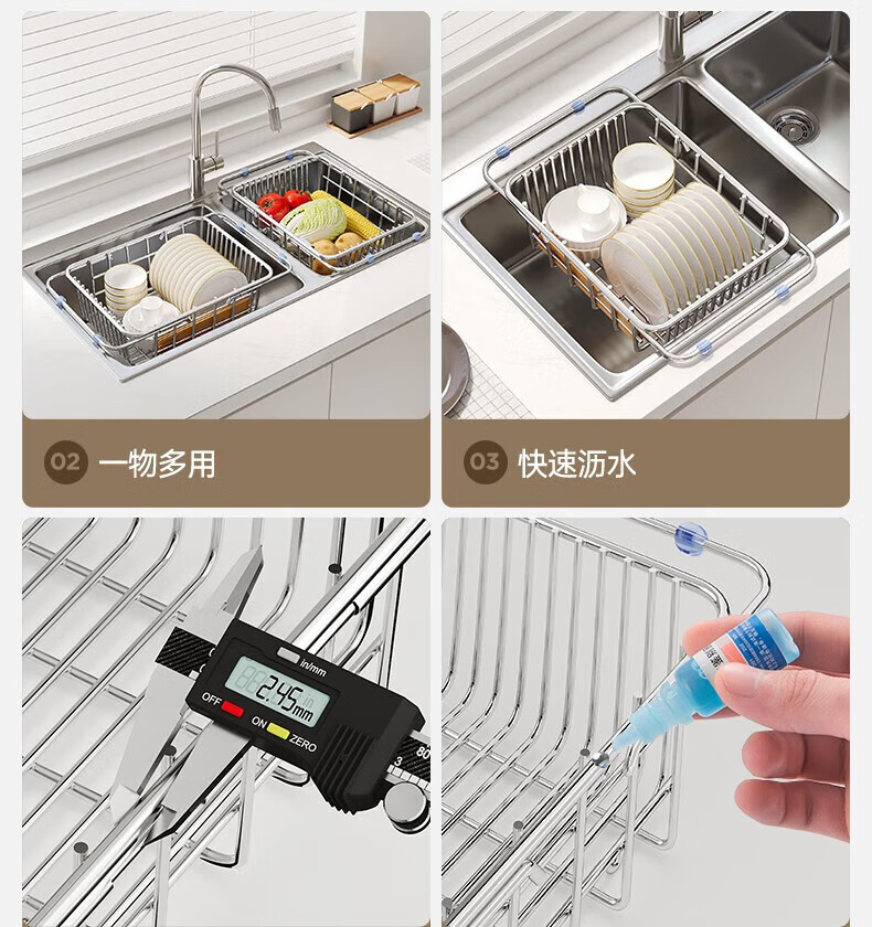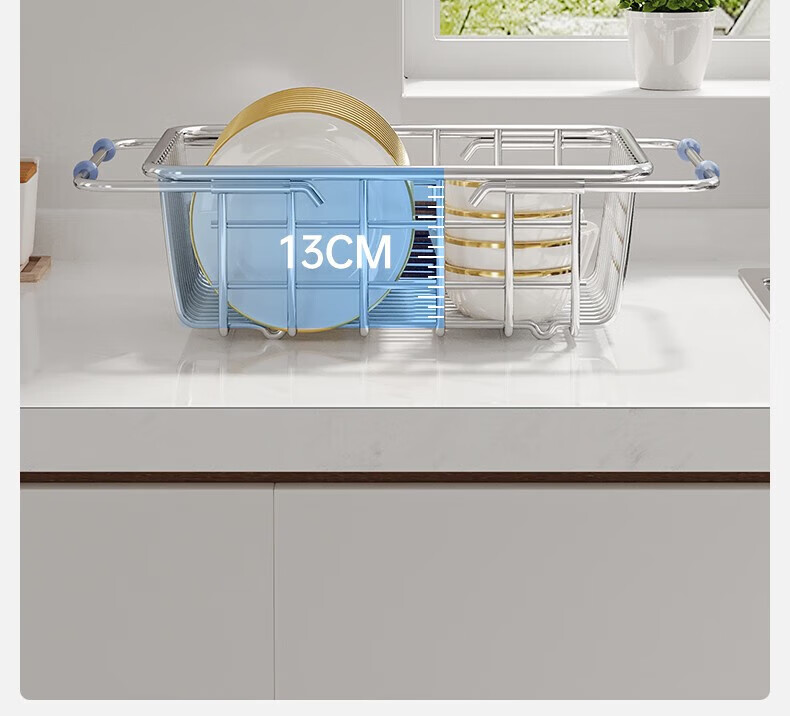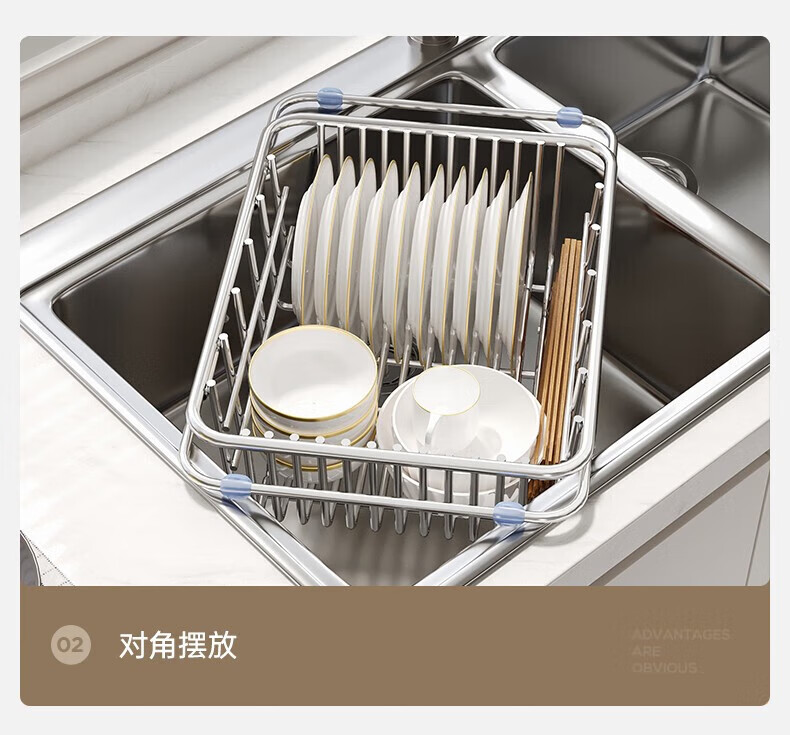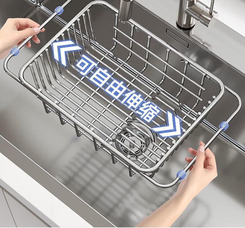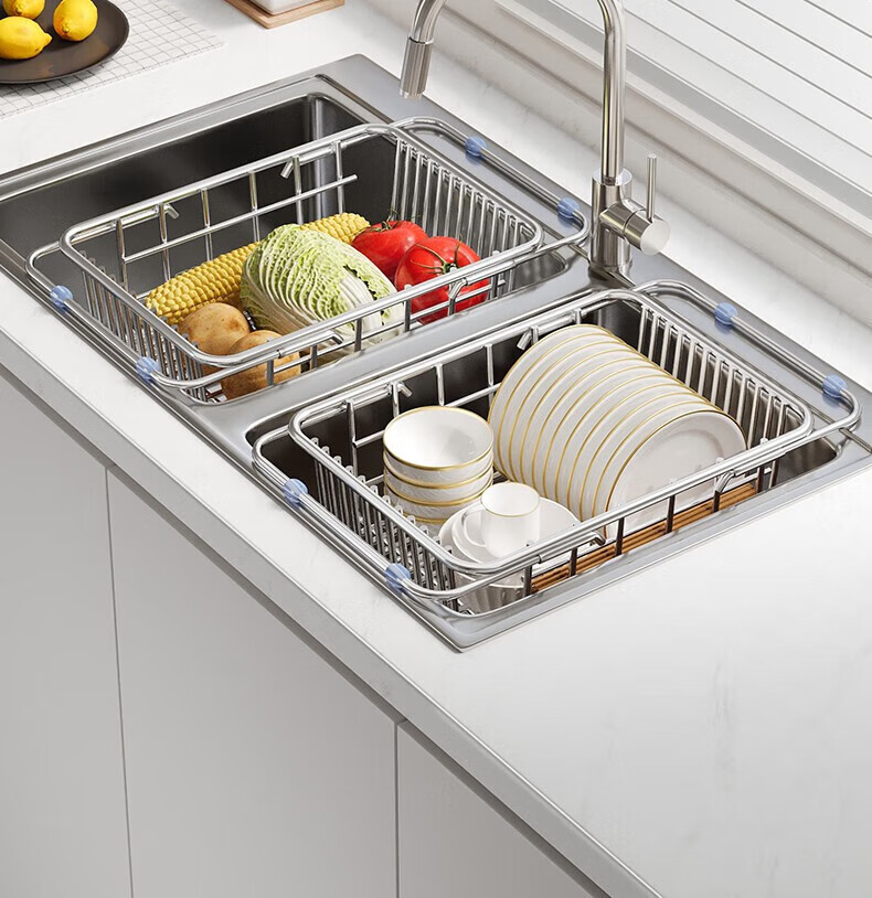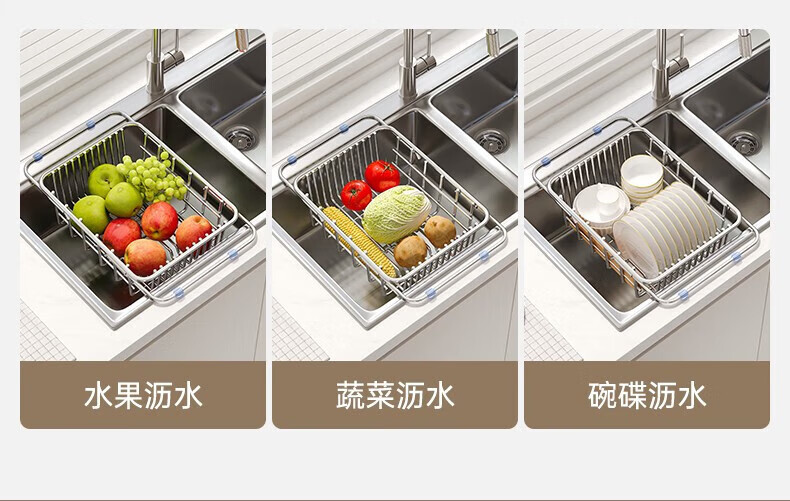 炊大皇厨房水槽置物架不锈钢水槽沥水篮可伸缩沥水碗架洗菜盆水池收纳架 A3【不锈钢伸缩沥水篮】大号-长35宽25