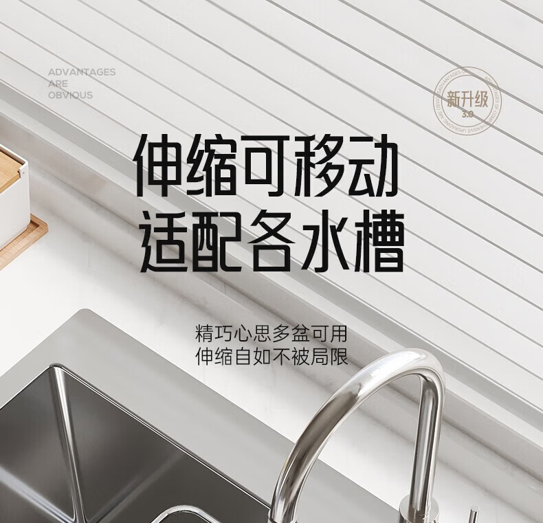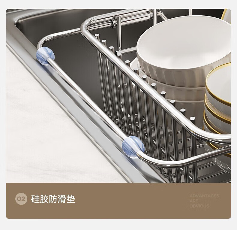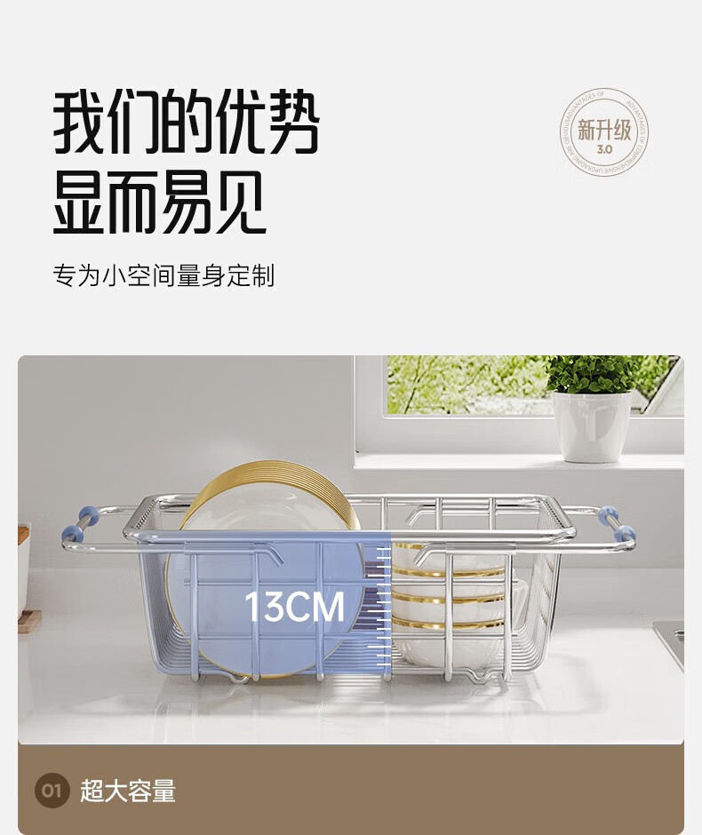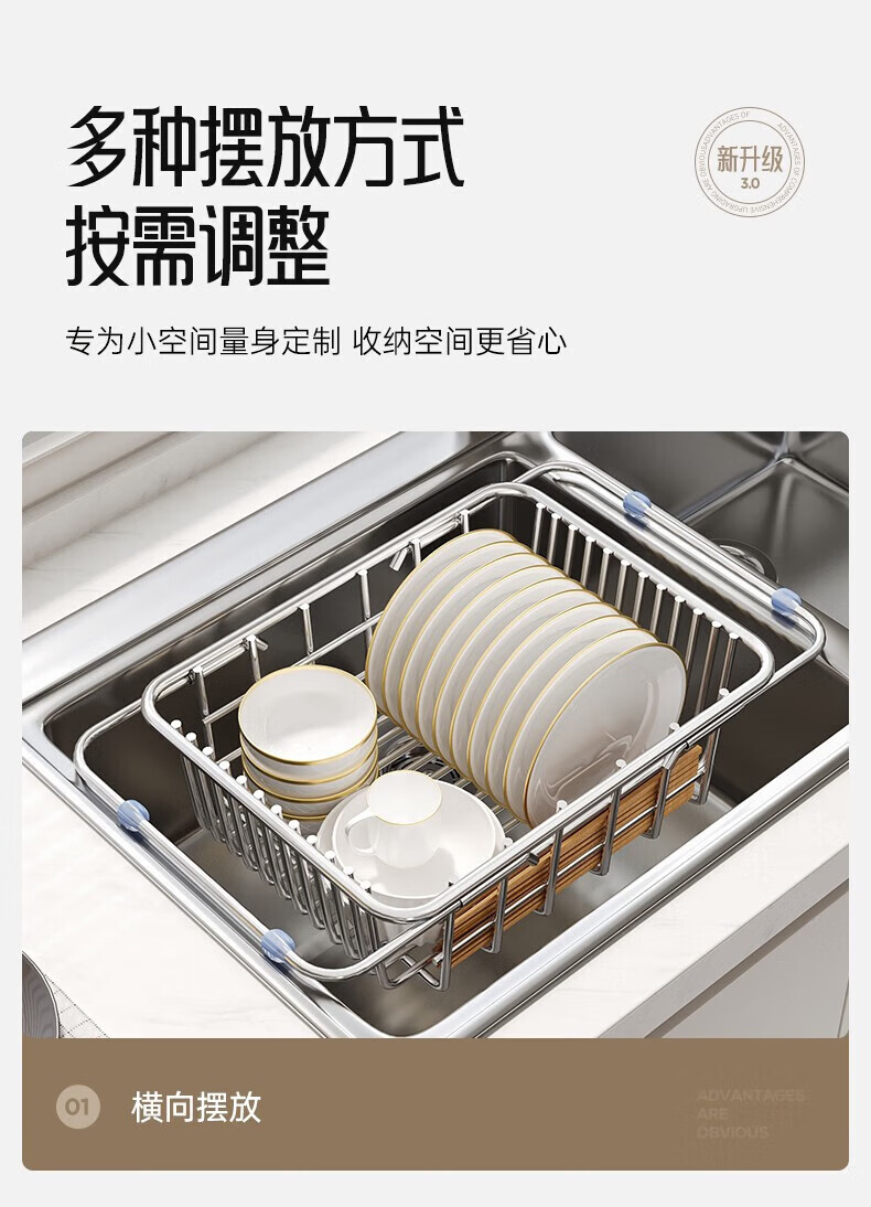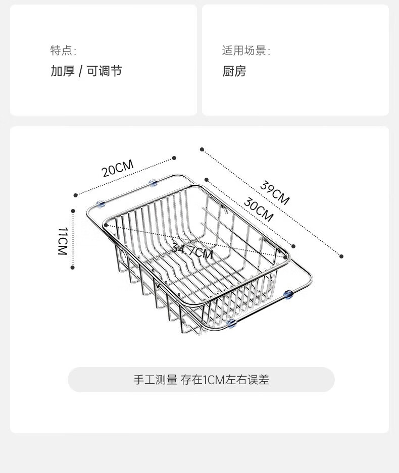 炊大皇厨房水槽置物架不锈钢水槽沥水篮可伸缩沥水碗架洗菜盆水池收纳架 A3【不锈钢伸缩沥水篮】大号-长35宽25
