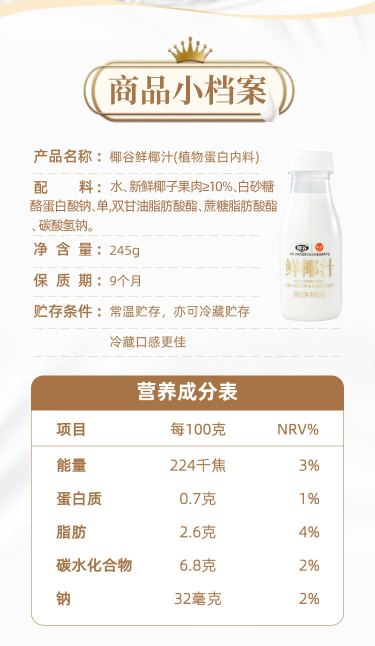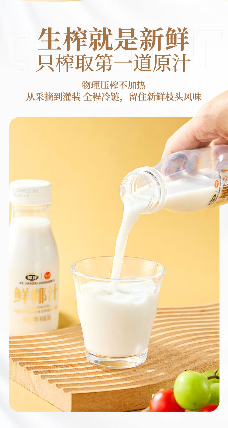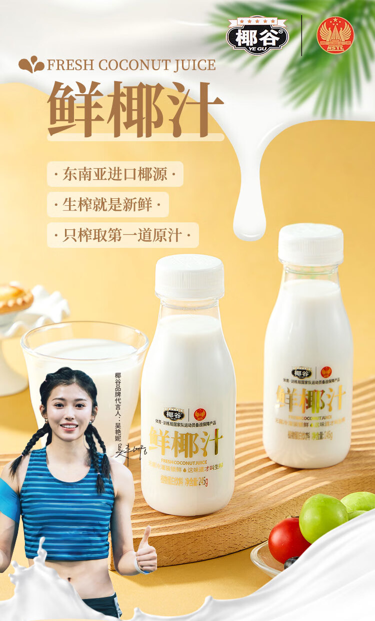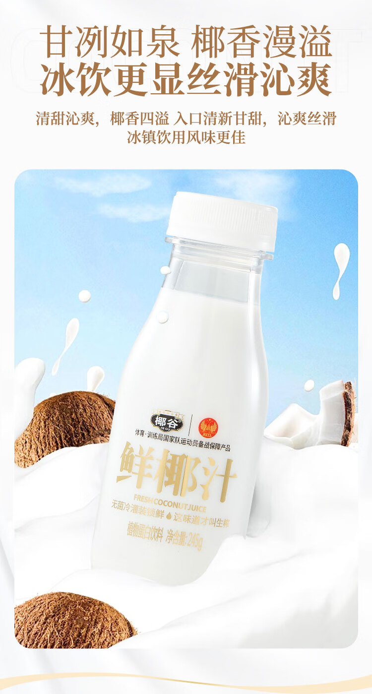 椰谷(YEGU)鲜椰汁 245g*12支装 椰子汁椰奶椰肉生榨果汁植物蛋白饮料整箱
