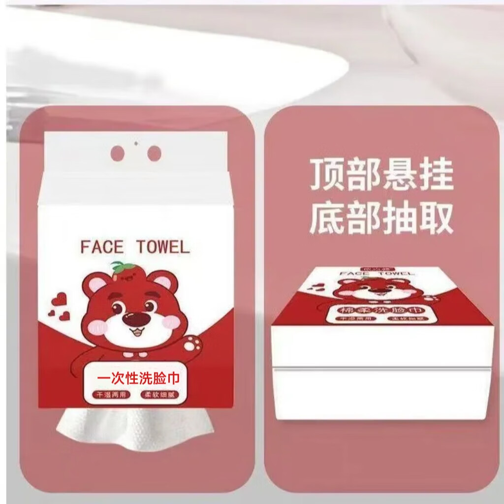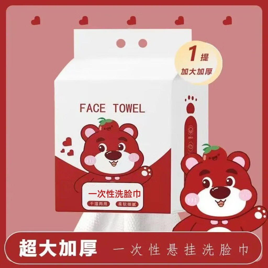 悬挂式一次性加厚洗脸巾底部抽取式洁面擦脸干湿两用 厚款 100抽 可爱熊悬挂式洗脸巾 1包