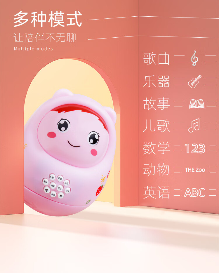 婴儿不倒翁早教机玩具婴幼儿益智儿童宝宝音乐启蒙按键故事机0-3岁宝宝早教益智启蒙幼儿抬头练习 不倒翁早教机-粉【opp袋装】充电款