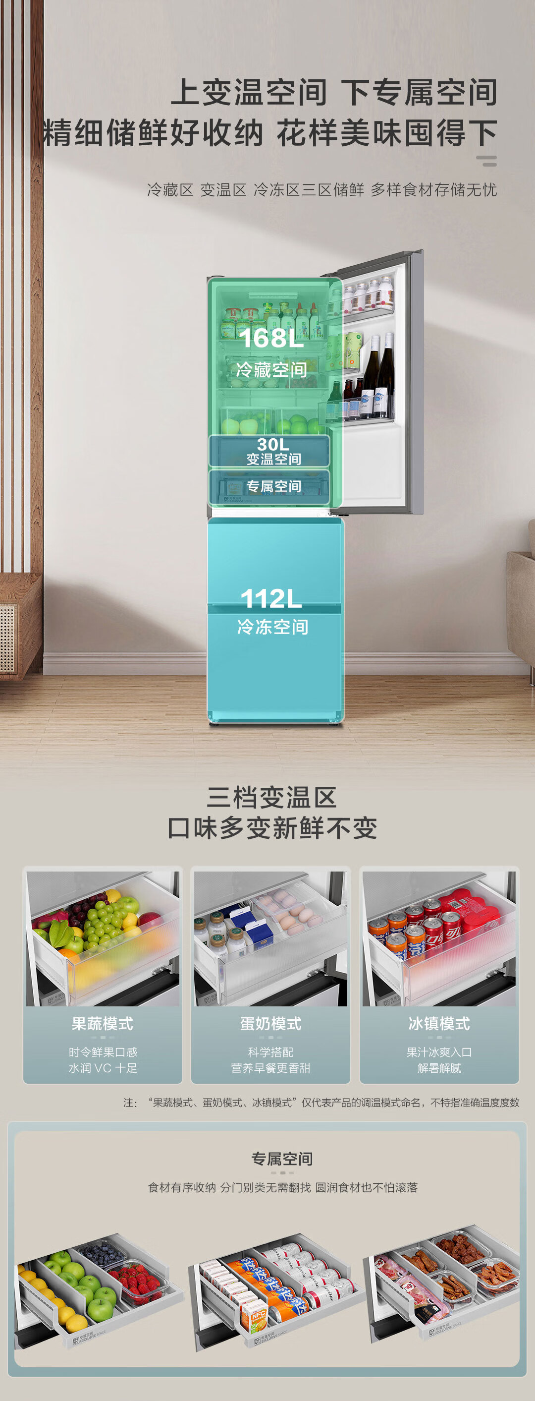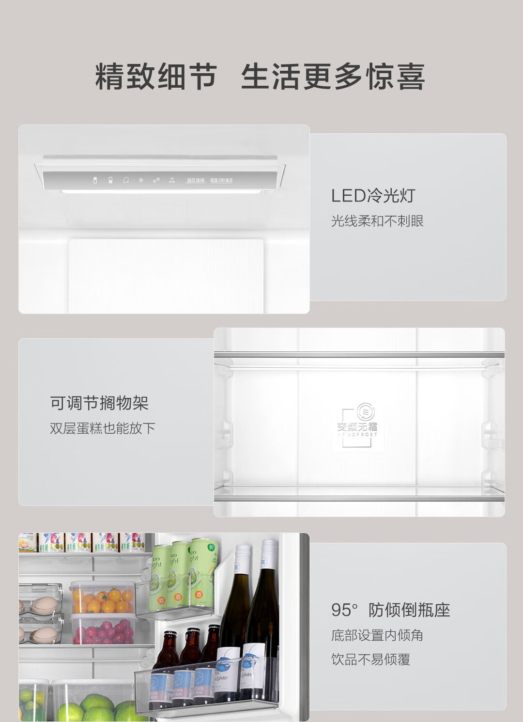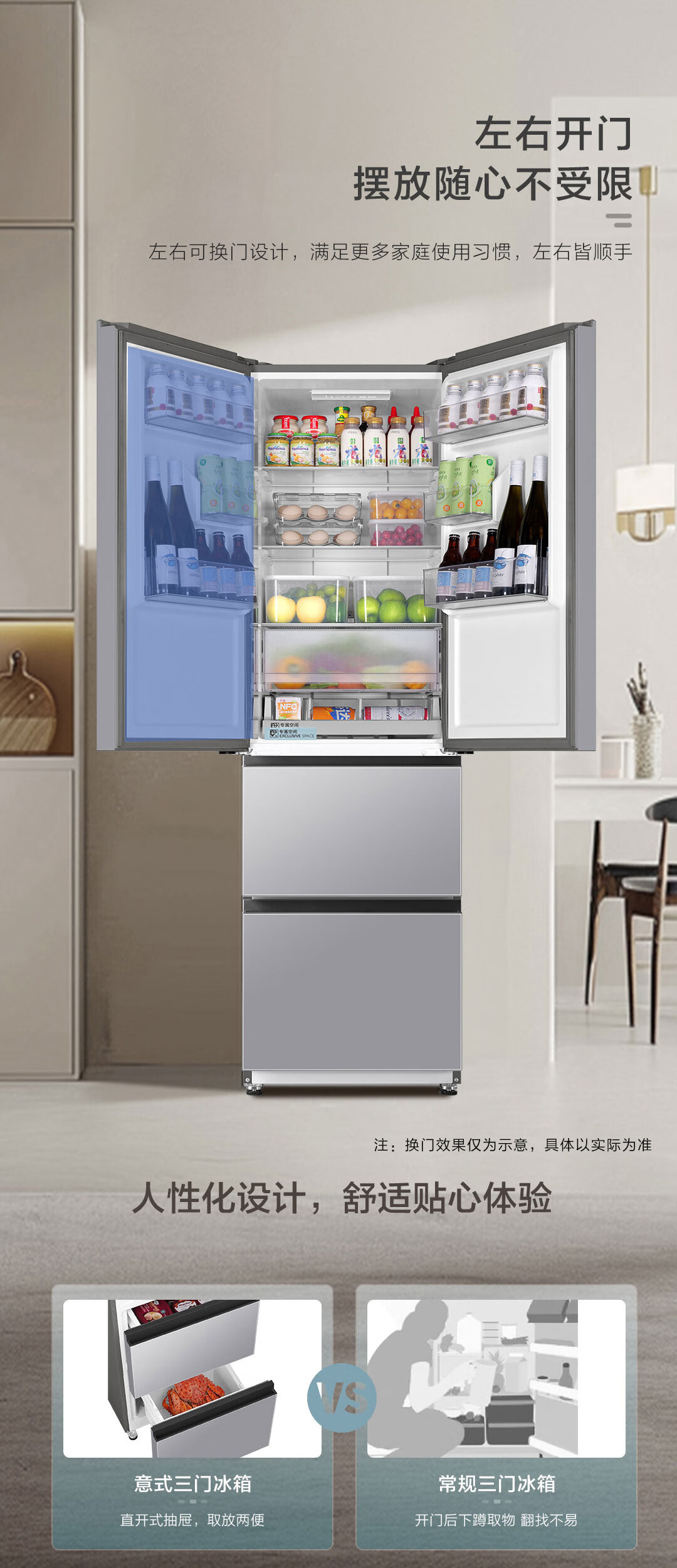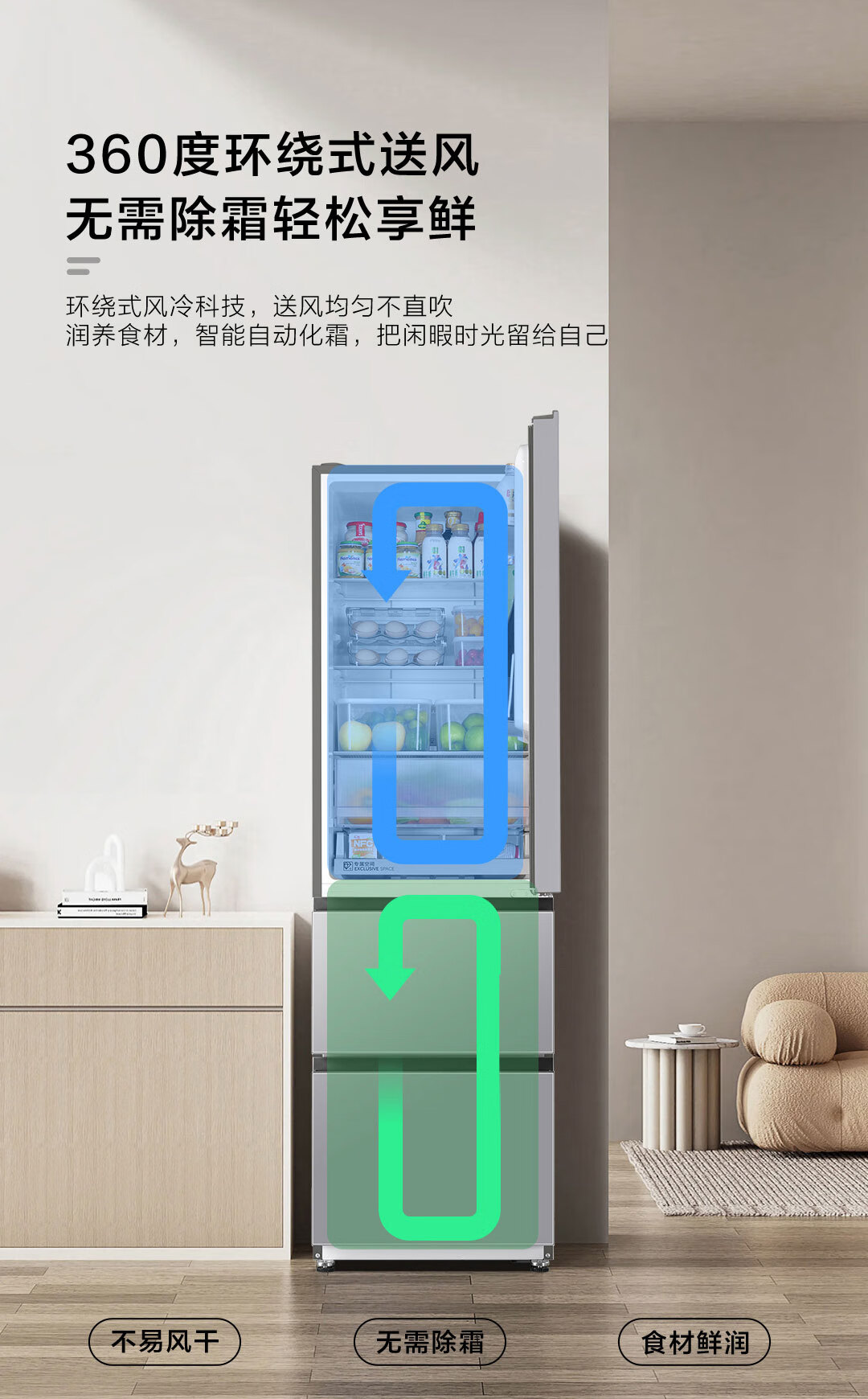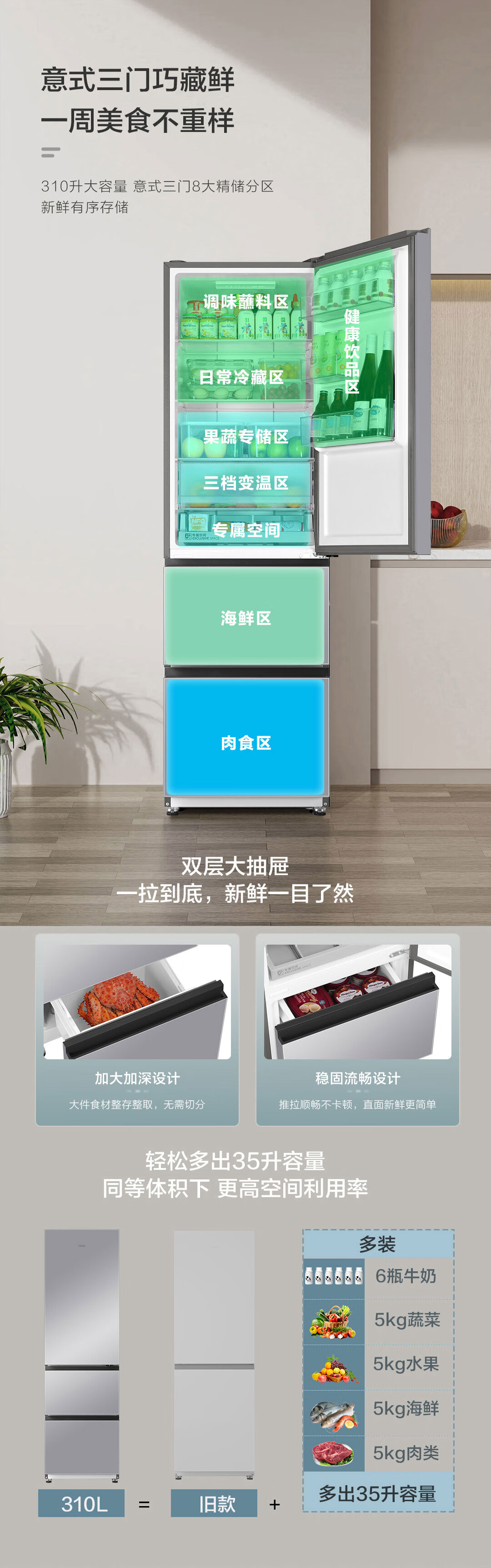 海尔(Haier)「真省电」310L三门冰箱黑金净化一级能效风冷无霜BCD-310WGHD3E7WV(银)国家补贴