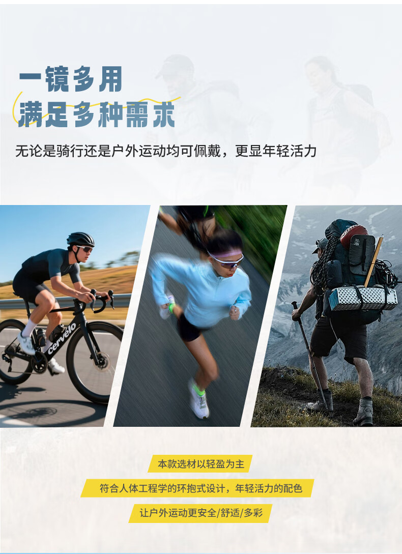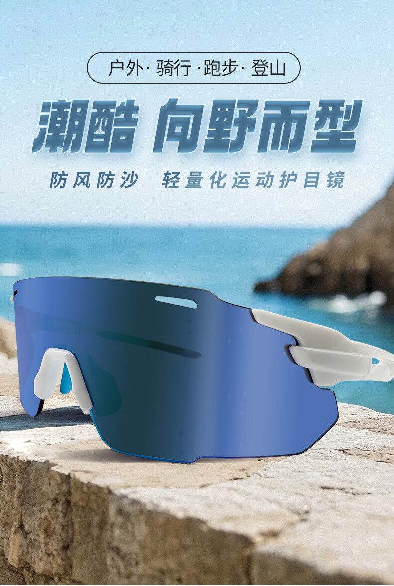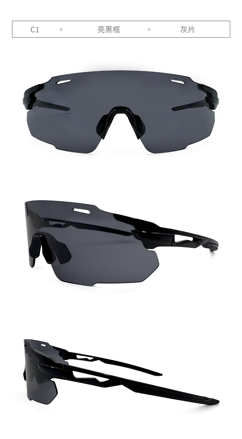 蚁途登山骑行眼镜护目镜防风沙滑雪镜可用于徒步跑步运动公路车太阳镜 C1 亮黑(灰片)
