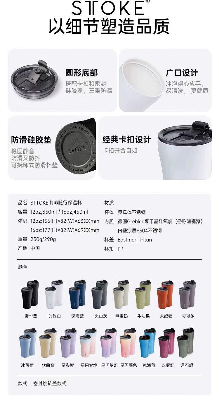 慕咖STTOKE户外系列水杯车载杯陶瓷内胆咖啡随行杯密封保温杯节日礼物 【明星钟爱】燕麦奶350ml