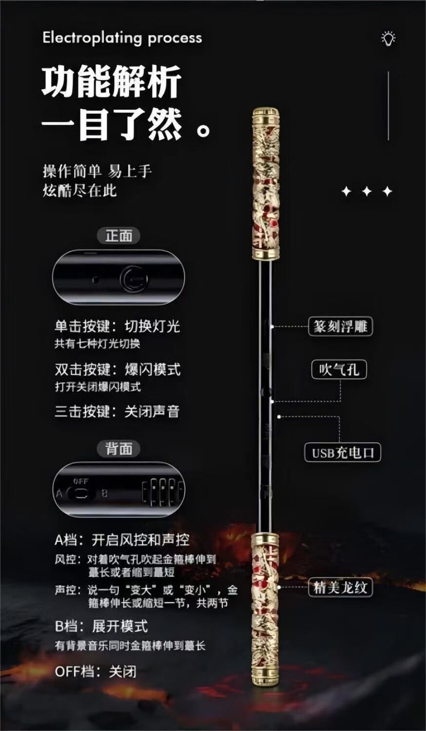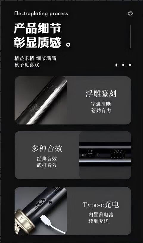 赟娅黑神话悟空周边金箍棒玩具儿童星际火花光剑战刃刀男孩生日礼物 礼盒装【金箍棒】如意三件套