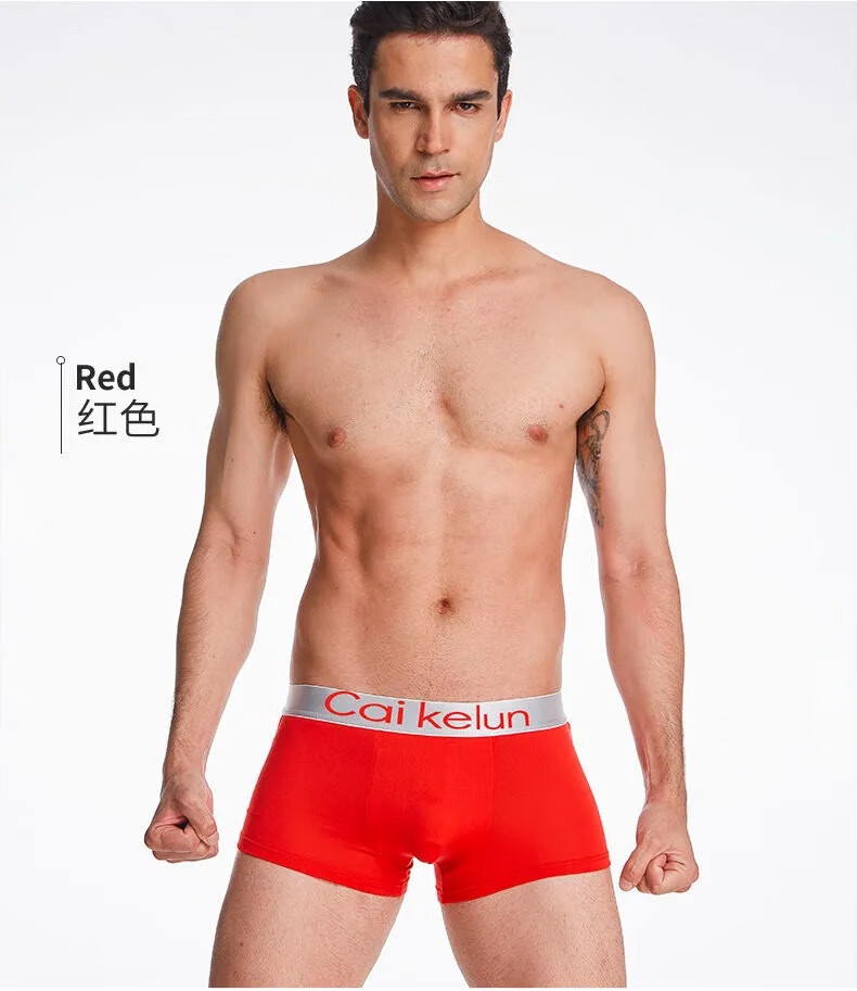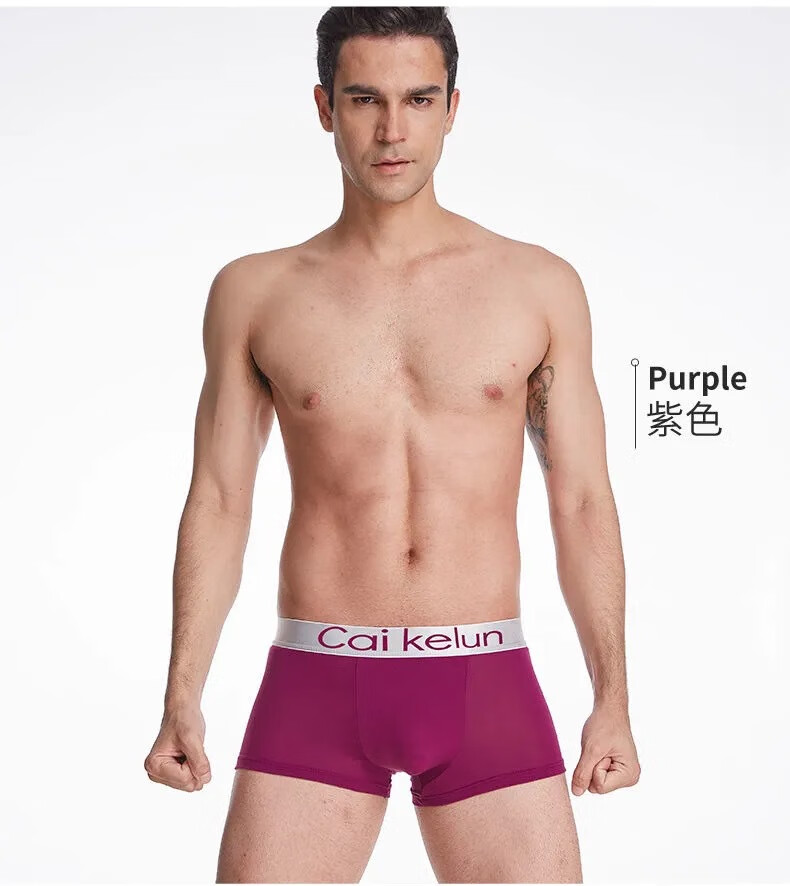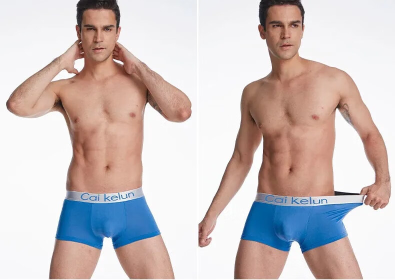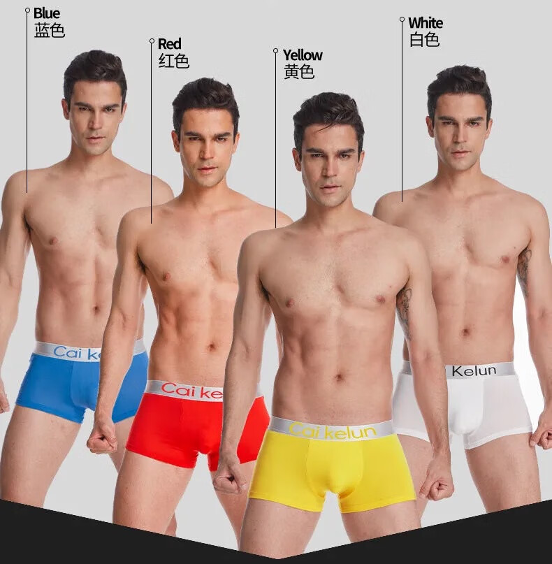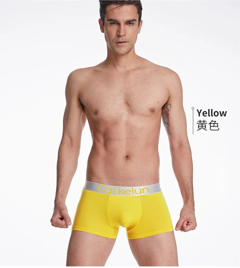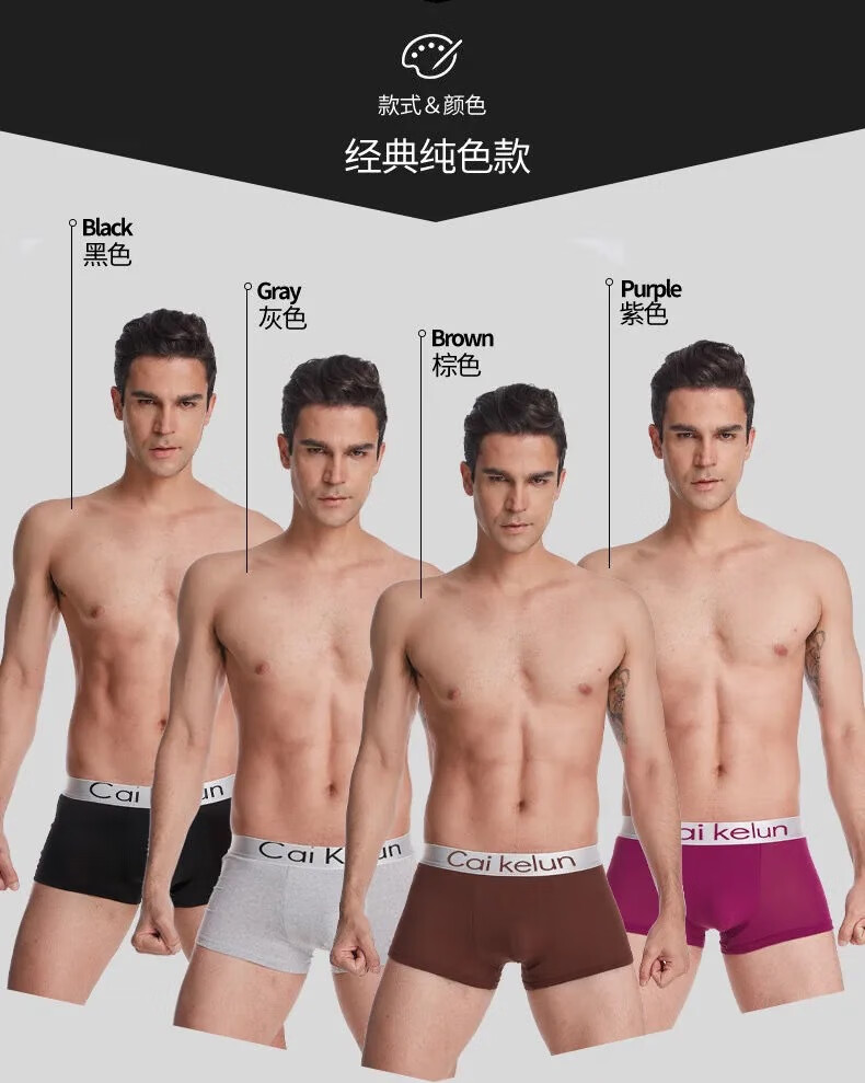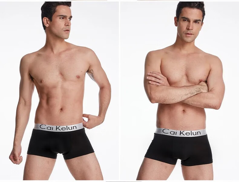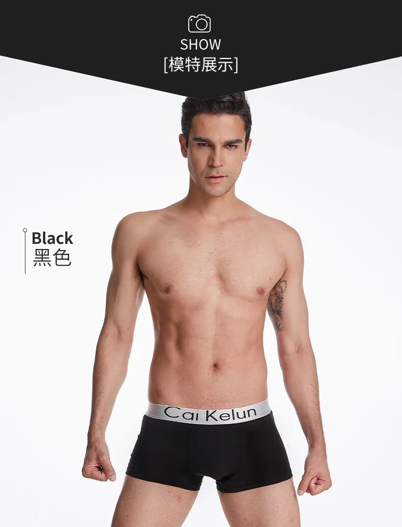 【精选优选】男士内裤男平角裤性感男裤头透气男生四角底裤衩潮青 黑一条装 M (80-100斤)