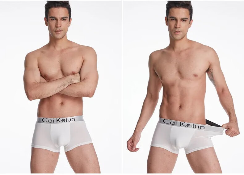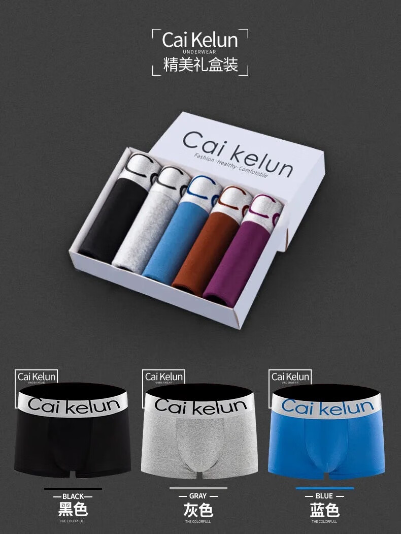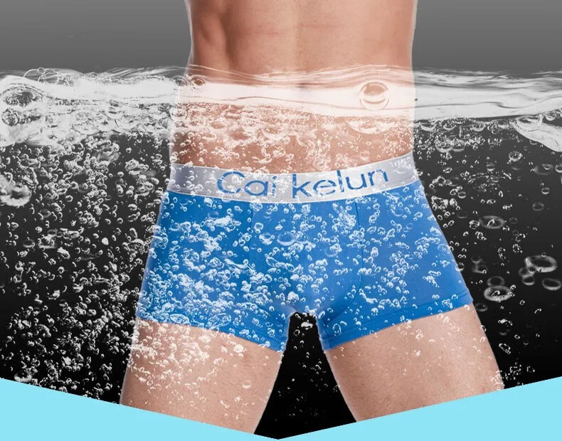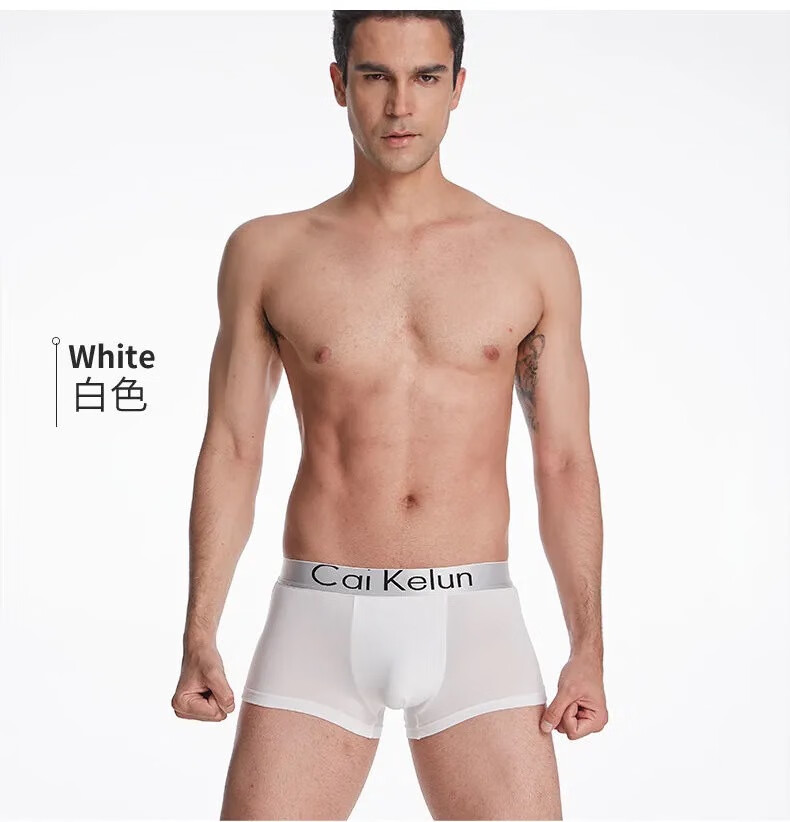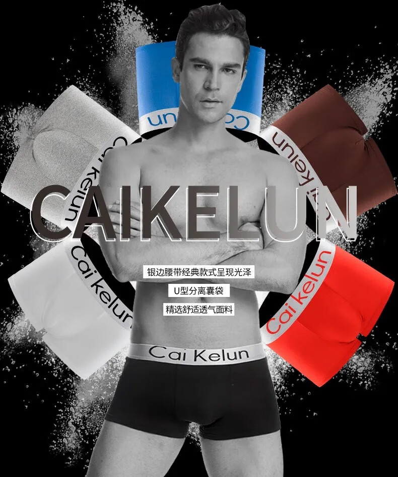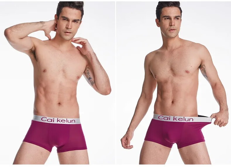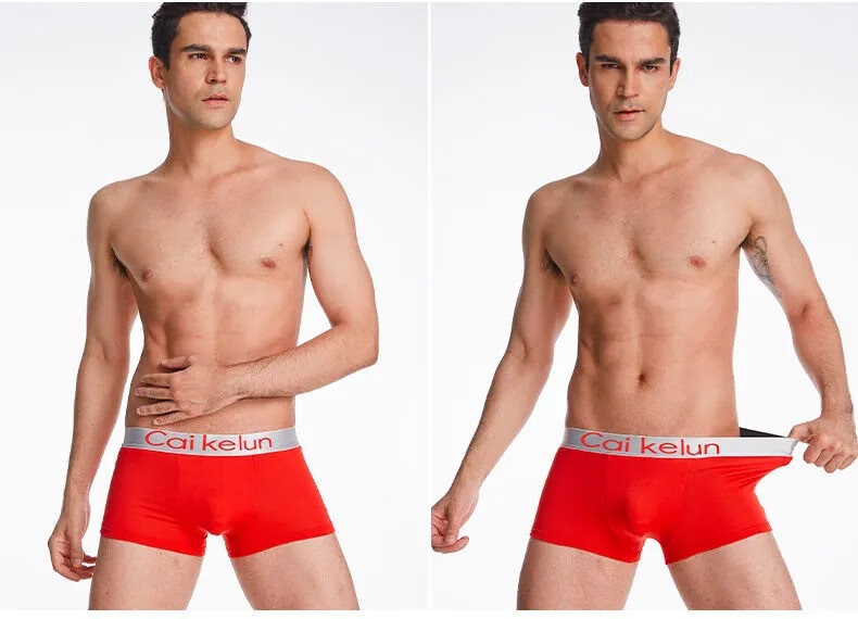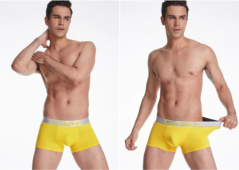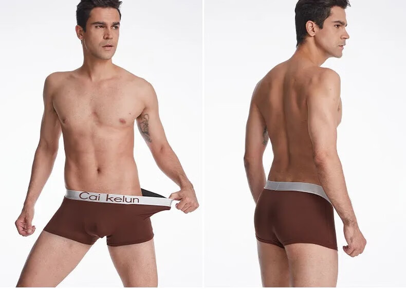 【精选优选】男士内裤男平角裤性感男裤头透气男生四角底裤衩潮青 黑一条装 M (80-100斤)
