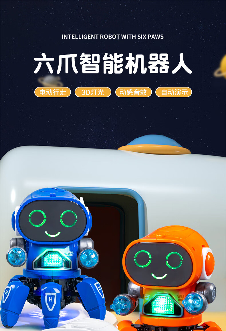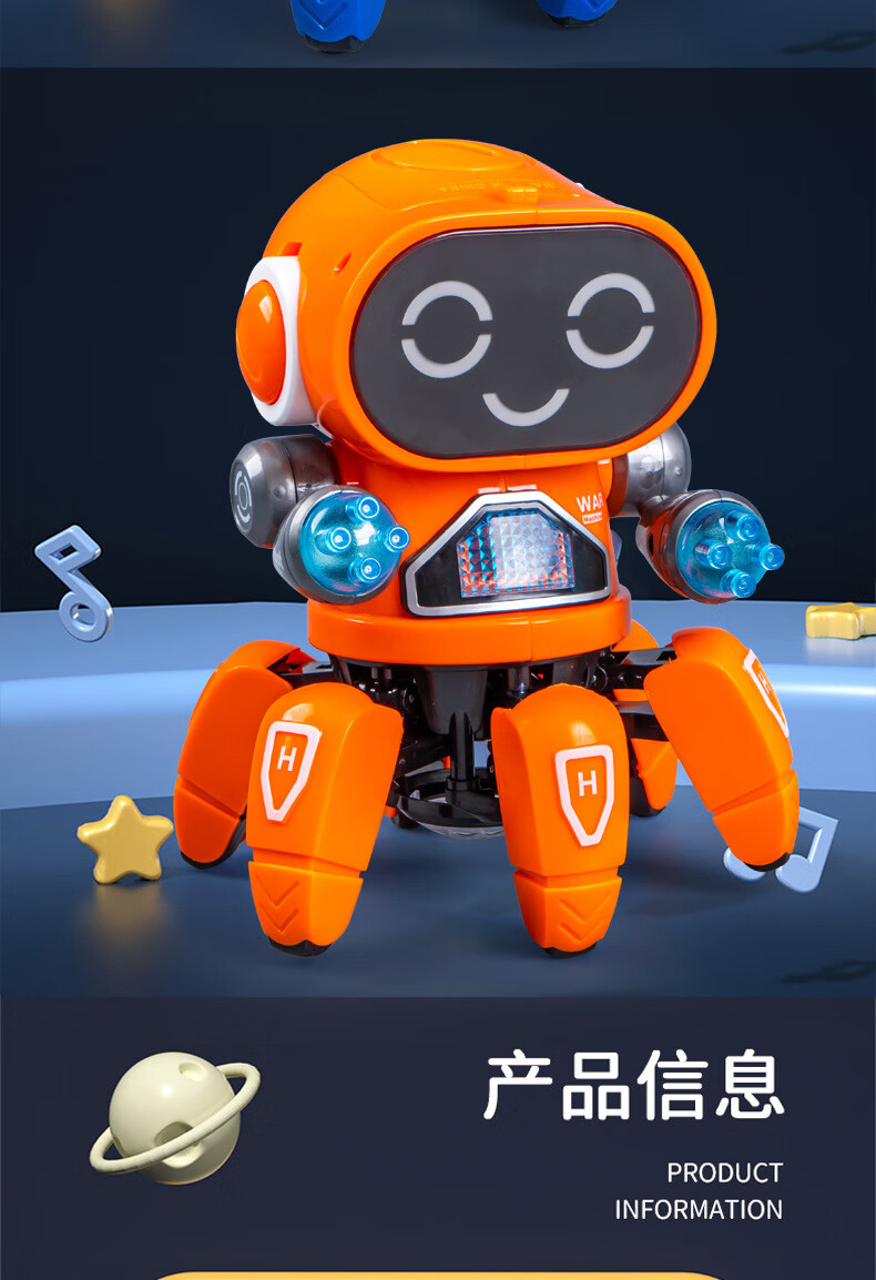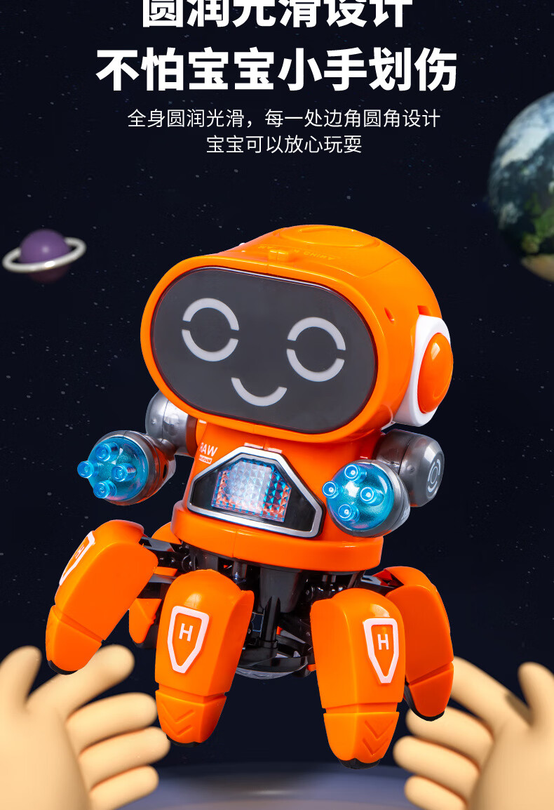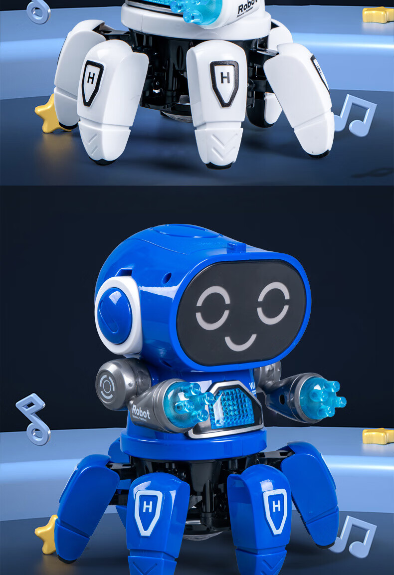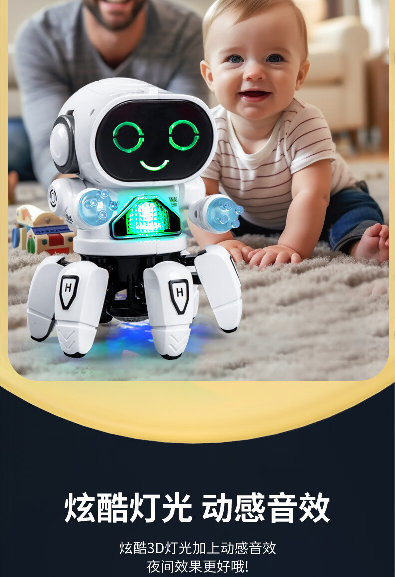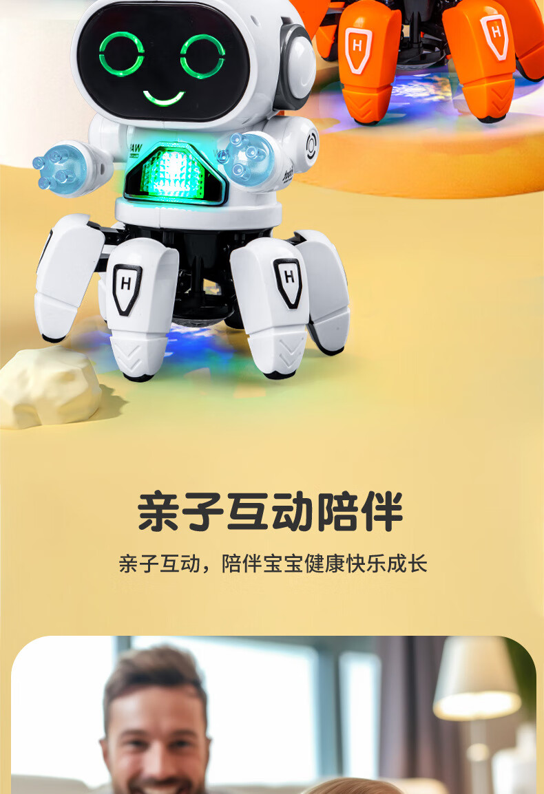六爪智能机器人会唱歌跳舞网红电动灯光音效亲子互动陪伴玩具 "RJ229109【白色】六爪鱼跳舞机器人"
