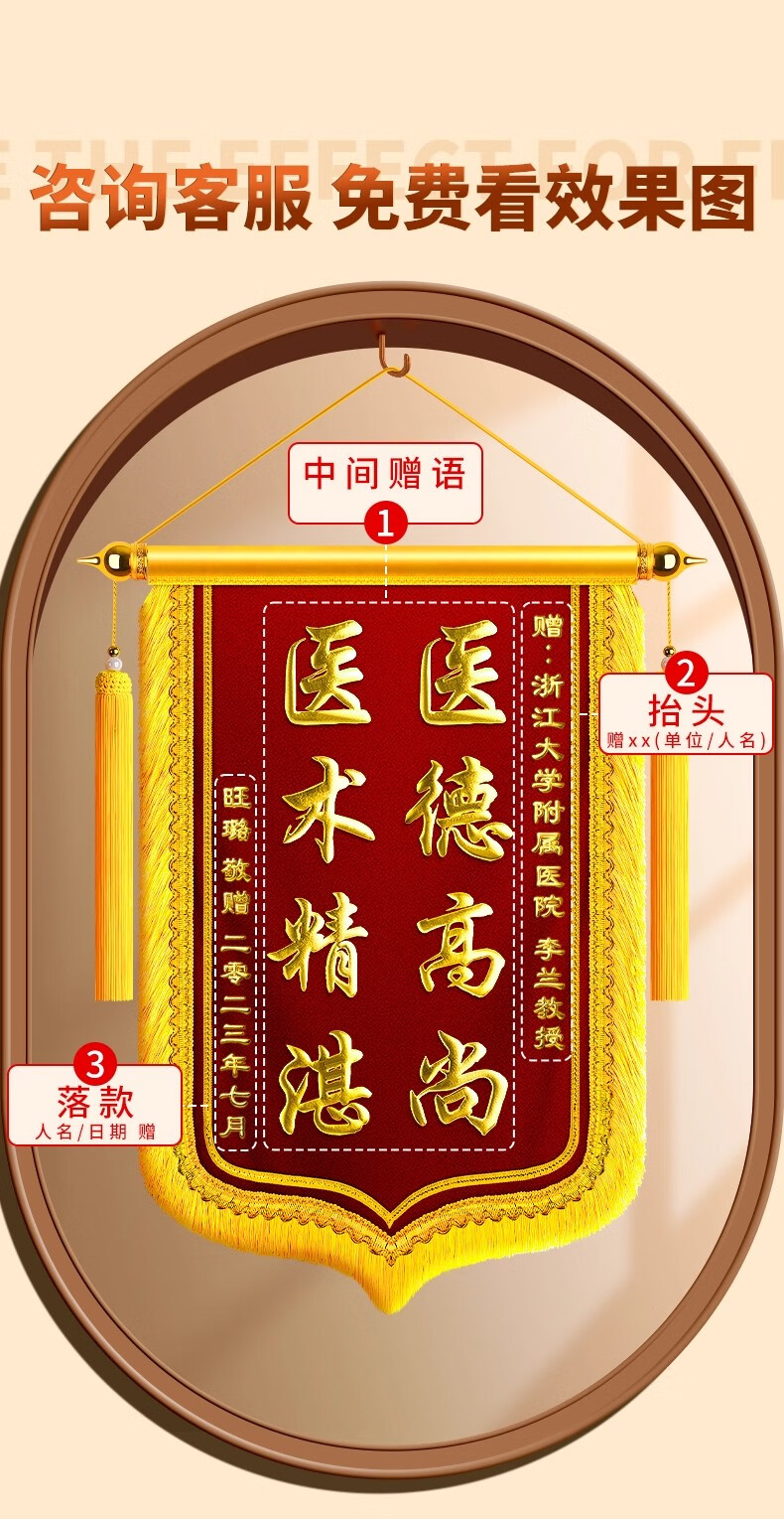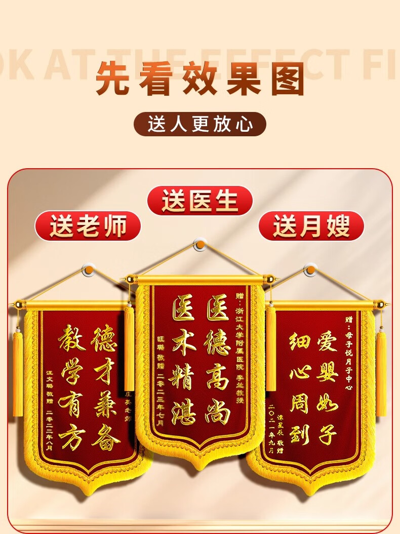 营奥锦旗定制锦旗刺绣定做感谢医生医院医护人员送老师送月嫂物业装修公司教练民警养生馆仙家锦旗 60*90豪华大龙须送锦旗袋【小巧紧凑】 刺绣款【匠心品质最高礼仪】