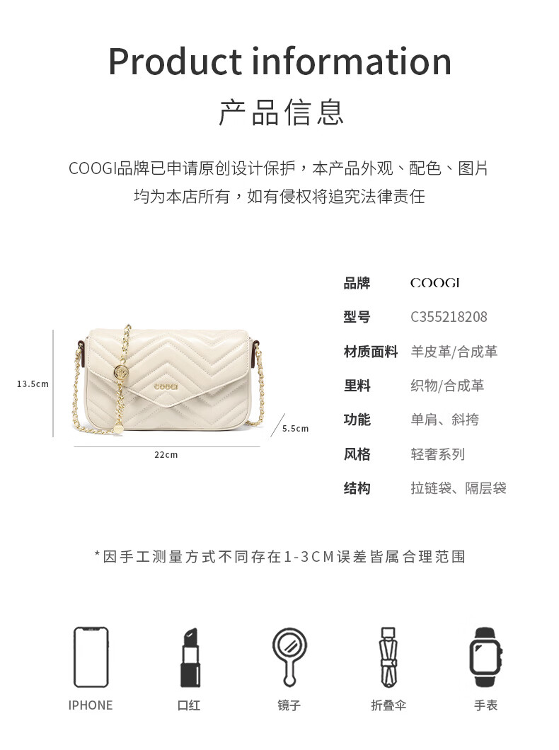COOGI包包女包奢侈品牌2025包女斜挎包女生日礼物送女友老婆 黄色 22*5.5*13.5