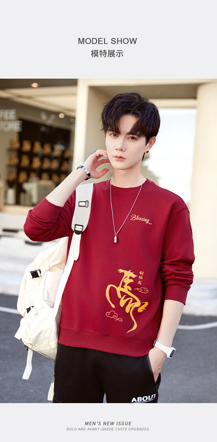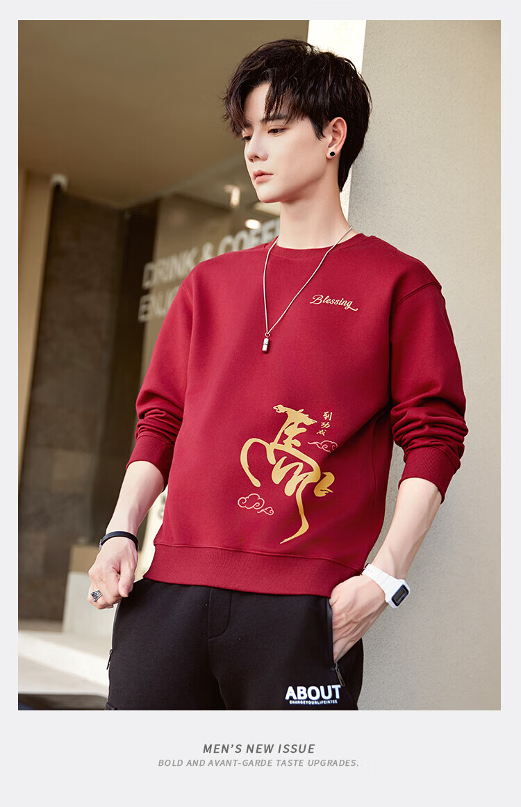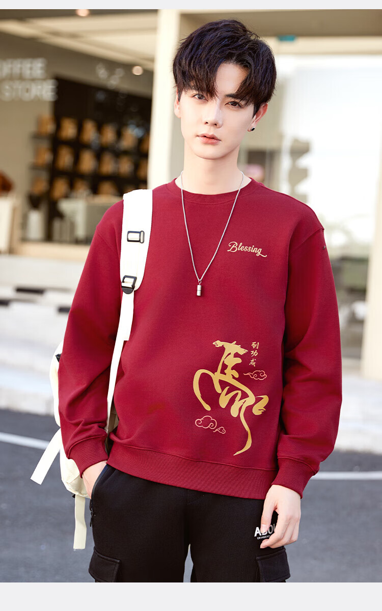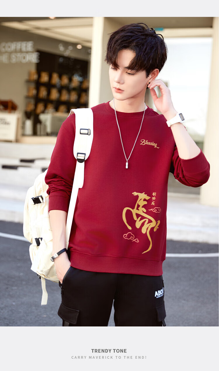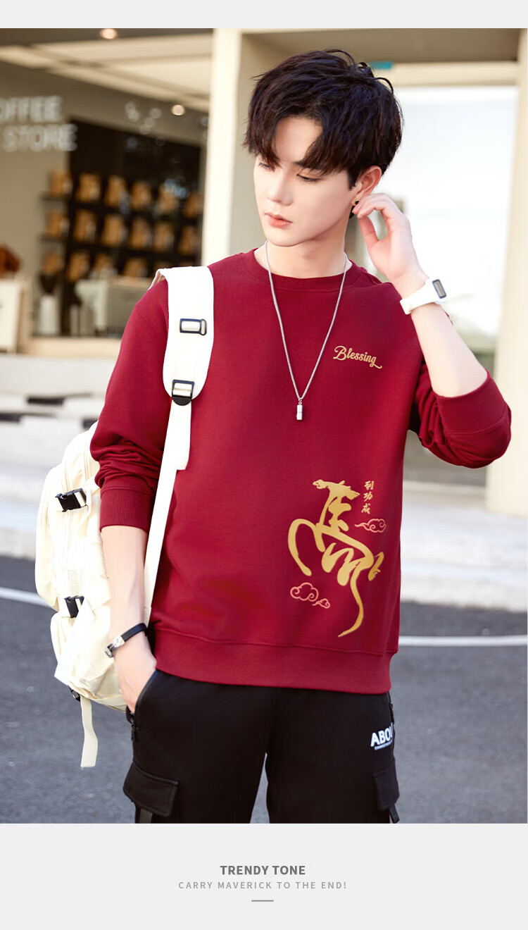 TEEK马年本命年纯棉圆领男士卫衣外套2026新年国潮酒红色拜年贺岁衣服 【常规款】YW2891酒红色 L