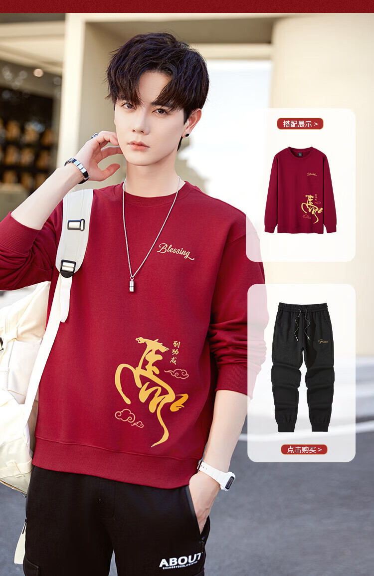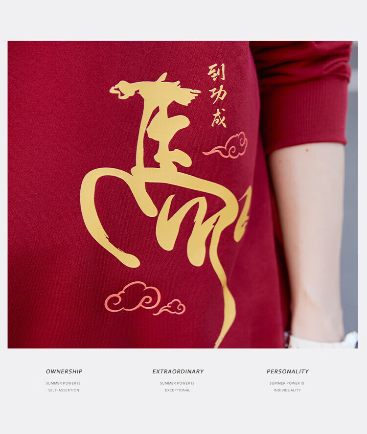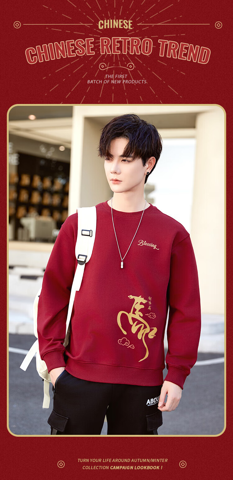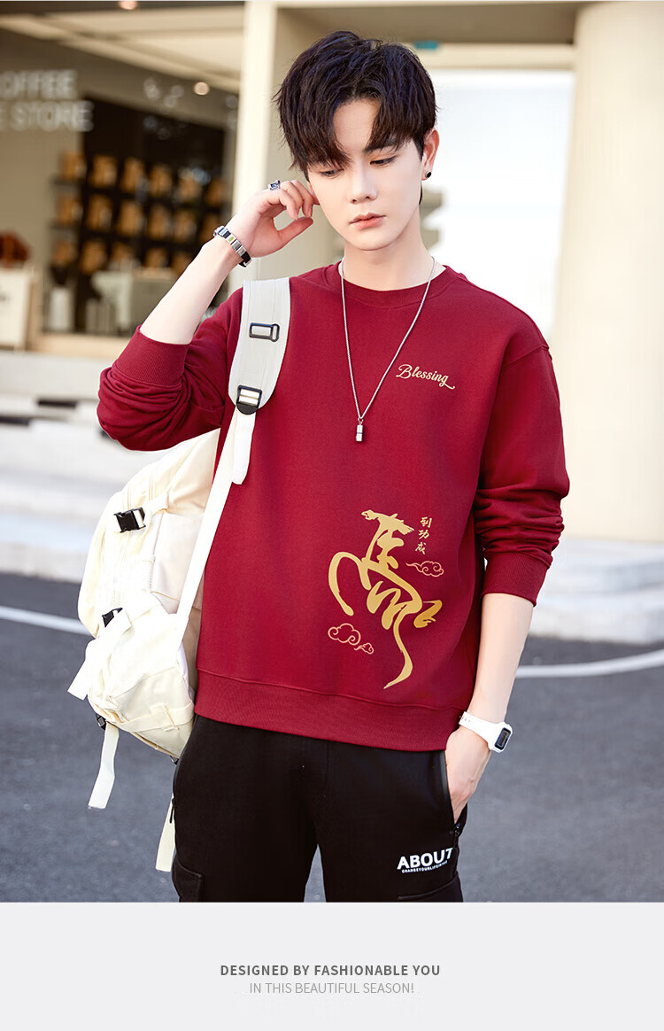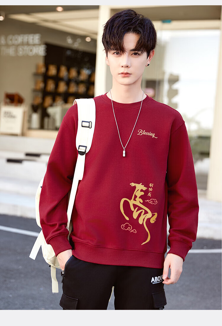 TEEK马年本命年纯棉圆领男士卫衣外套2026新年国潮酒红色拜年贺岁衣服 【常规款】YW2891酒红色 L