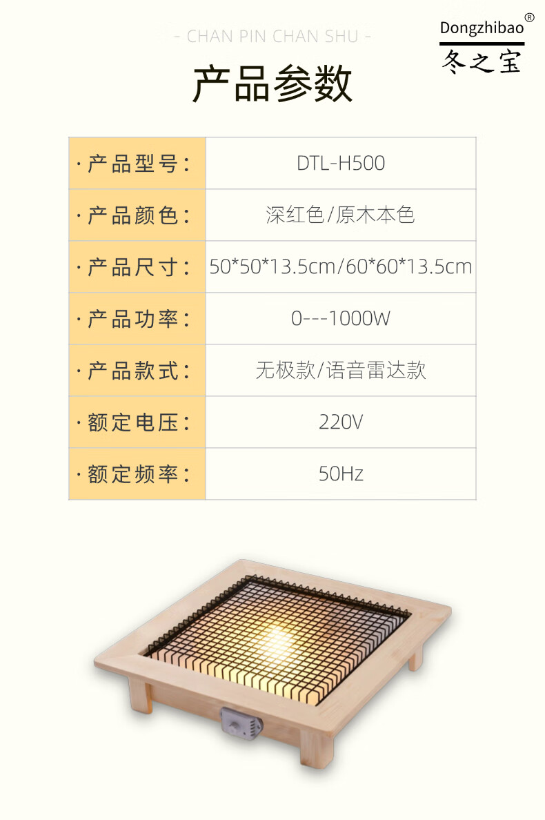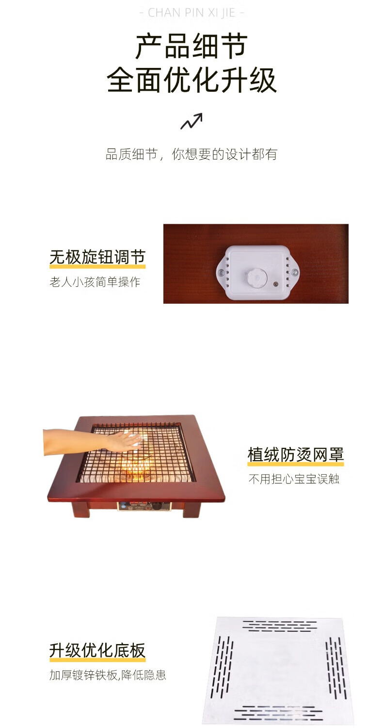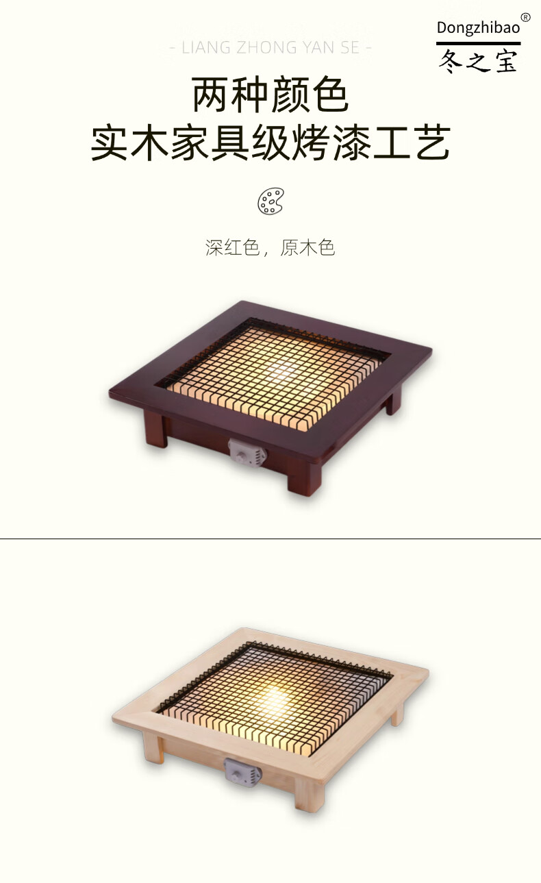 DONGZHIBAO【加厚镀锌底板】实木烤火盆家用取暖器桌下暖脚烤火炉实木电火盆电暖脚器旋钮基础款 基础款【60*60*13.5cm】原木色